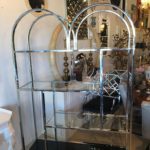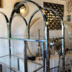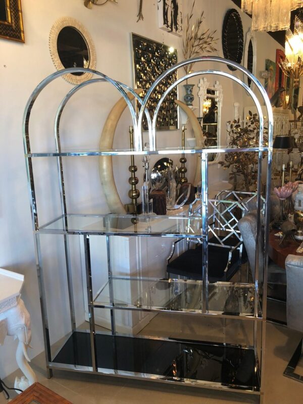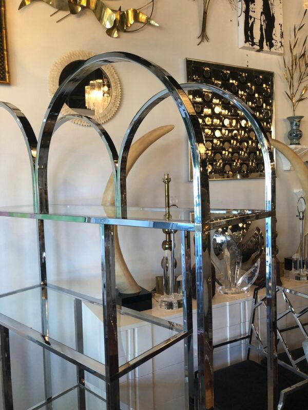 Vintage Chrome and Brass Etagere Arched Glass Display Shelf Shelves