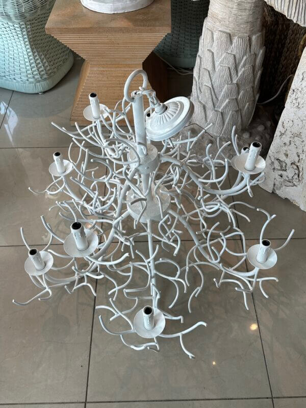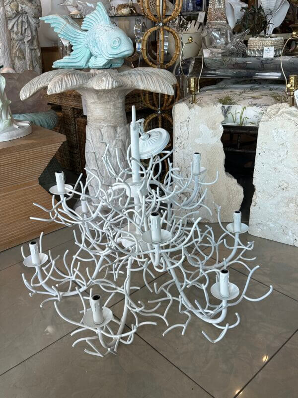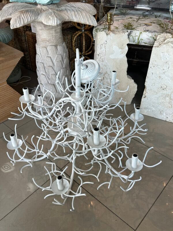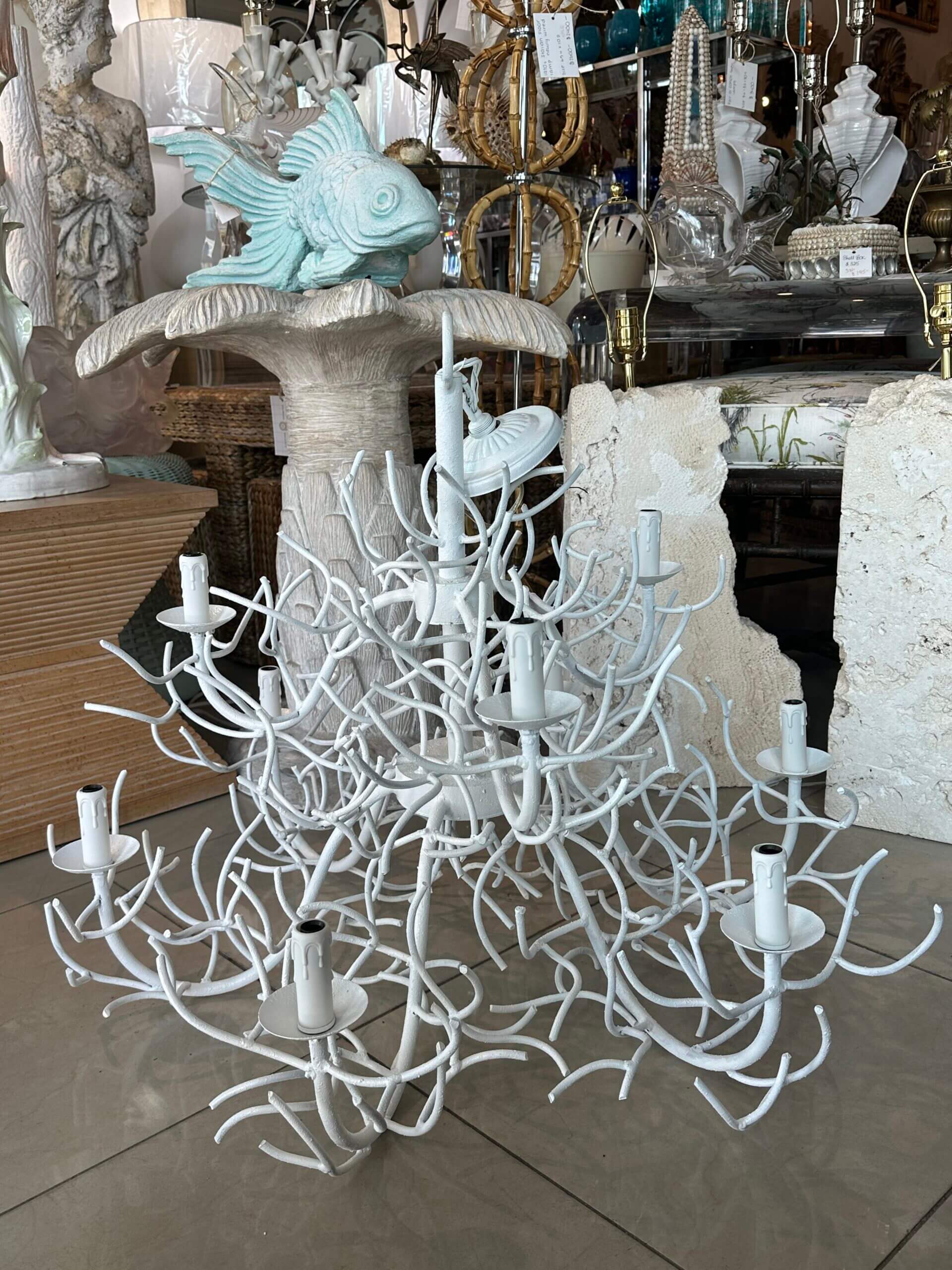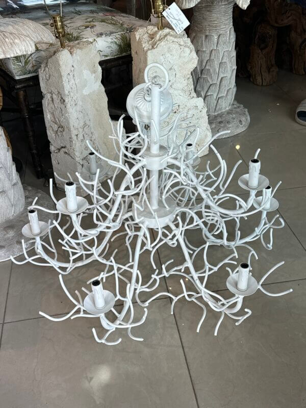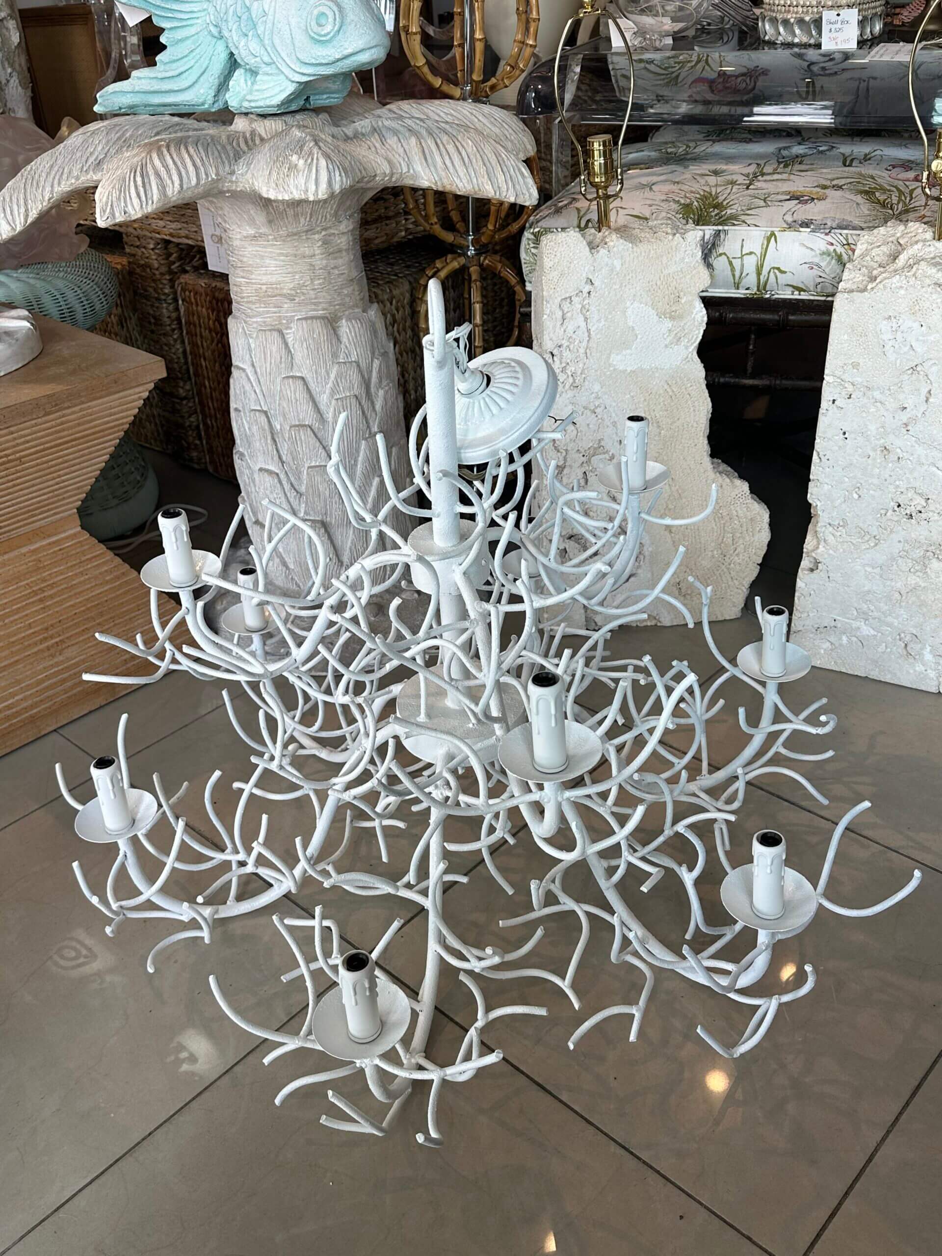 Vintage Palm Beach White Metal Iron Faux Coral 9 Light Chandelier Two Tier