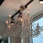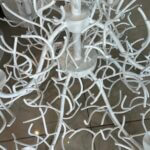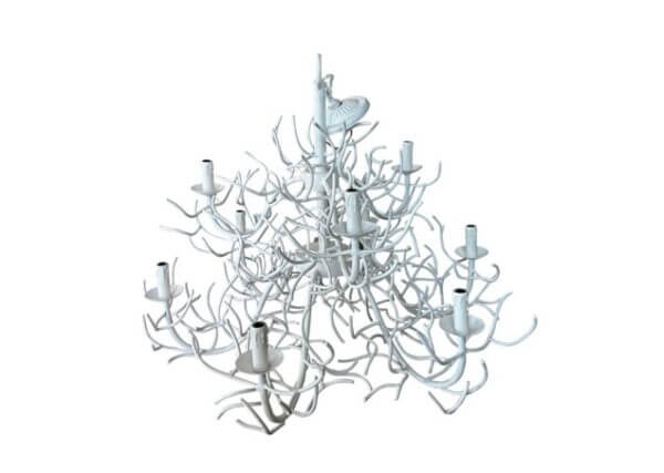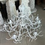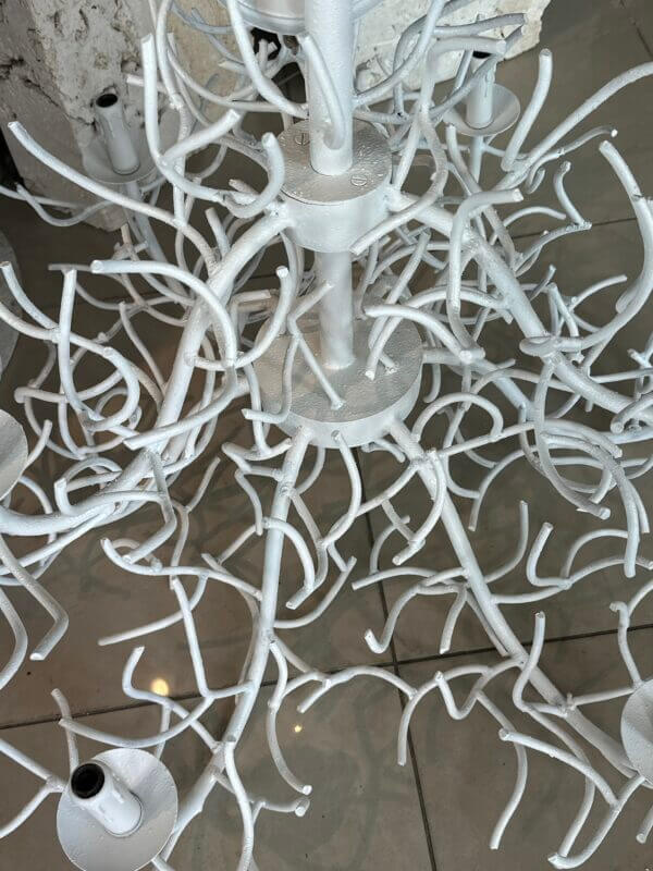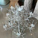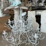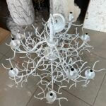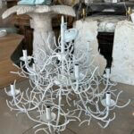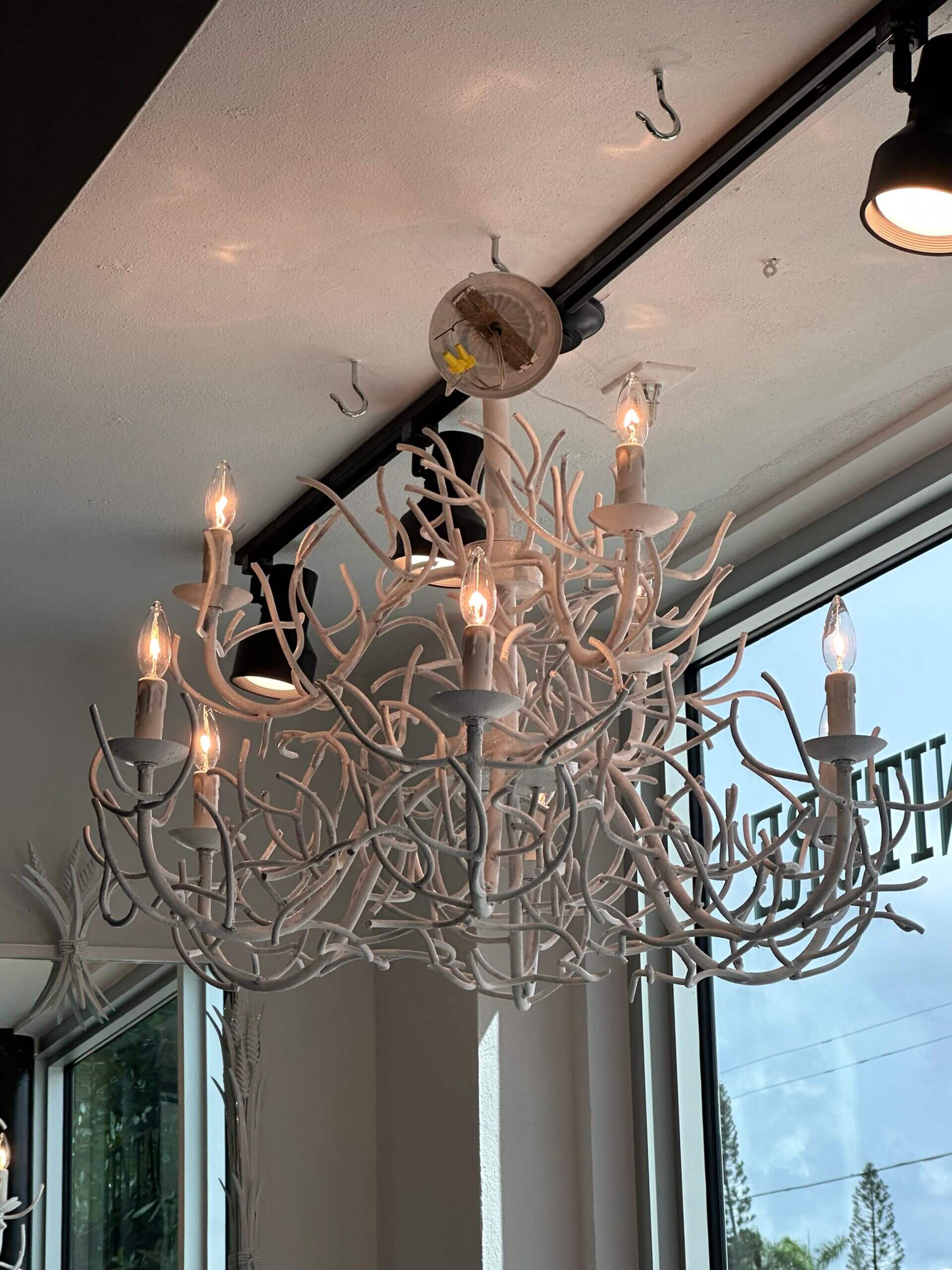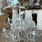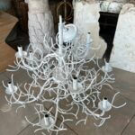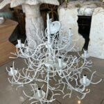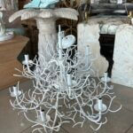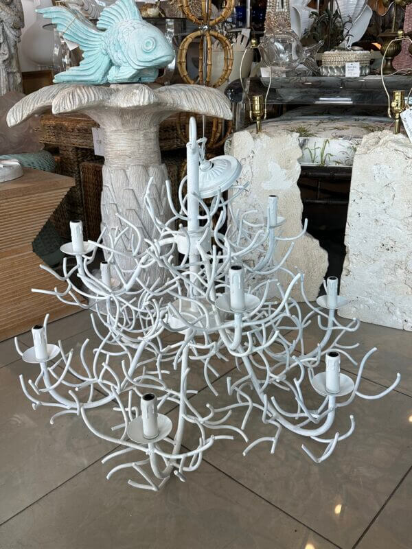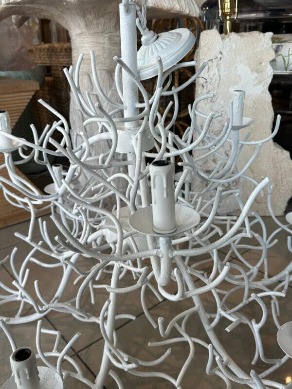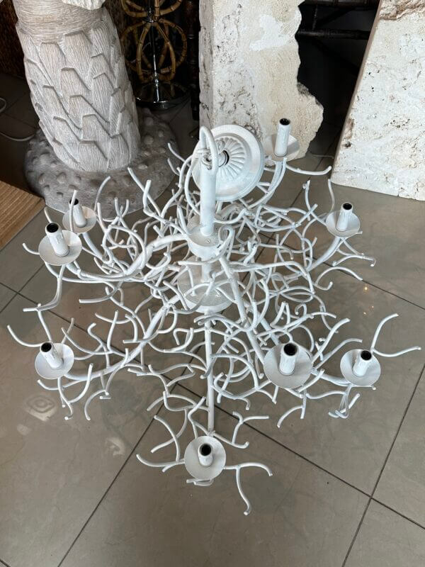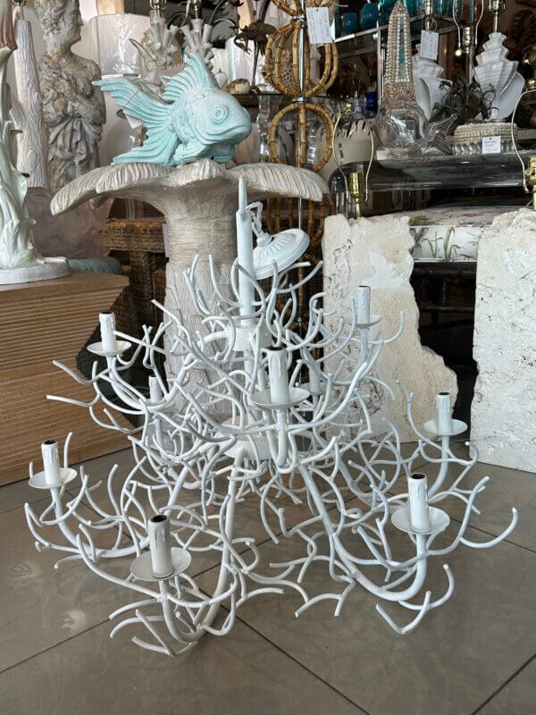 Vintage Palm Beach White Metal Iron Faux Coral 9 Light Chandelier Two Tier