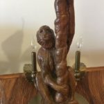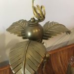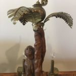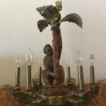 Vintage Monkey and brass palm frond leaf leaves tree chandelier with 6 lights. Great tropical Palm Beach piece. Does not have ceiling canopy but will include brass chain. Dimensions 24 H x 24 D