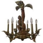 Monkey & Brass Palm Frond Leaf Tree 6 Light Chandelier Tropical Palm Beach