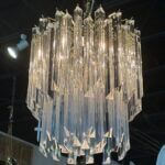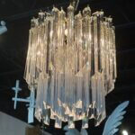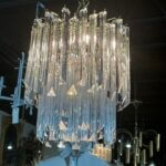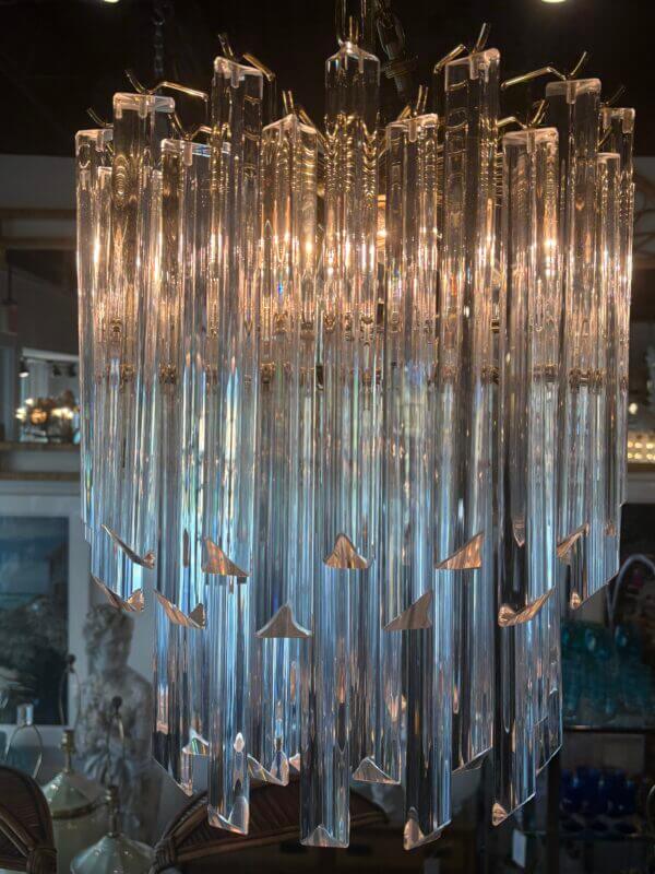 Vintage Italian Murano Camer Trilobi Venini Glass Chandelier 5 Lights