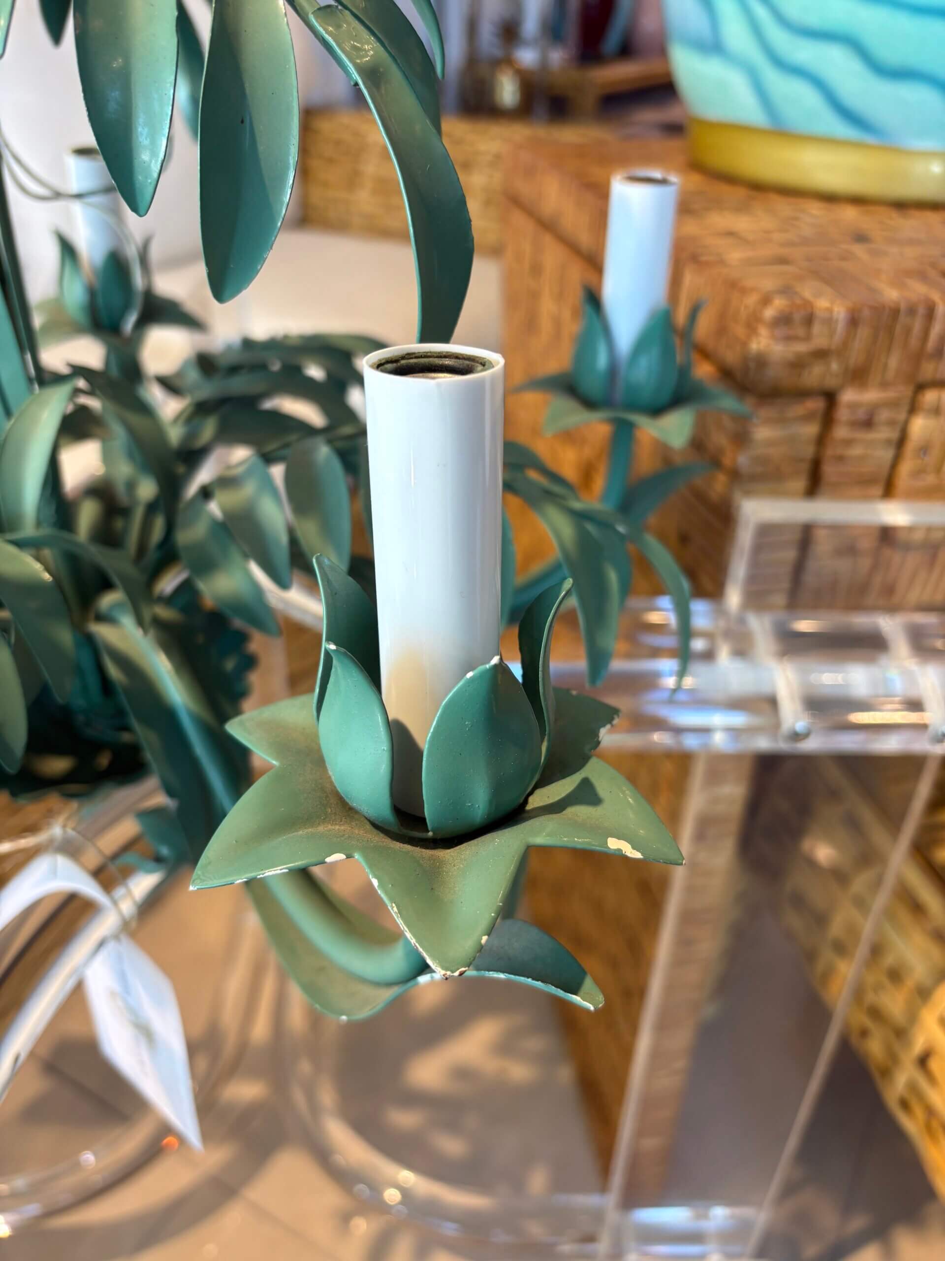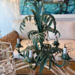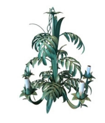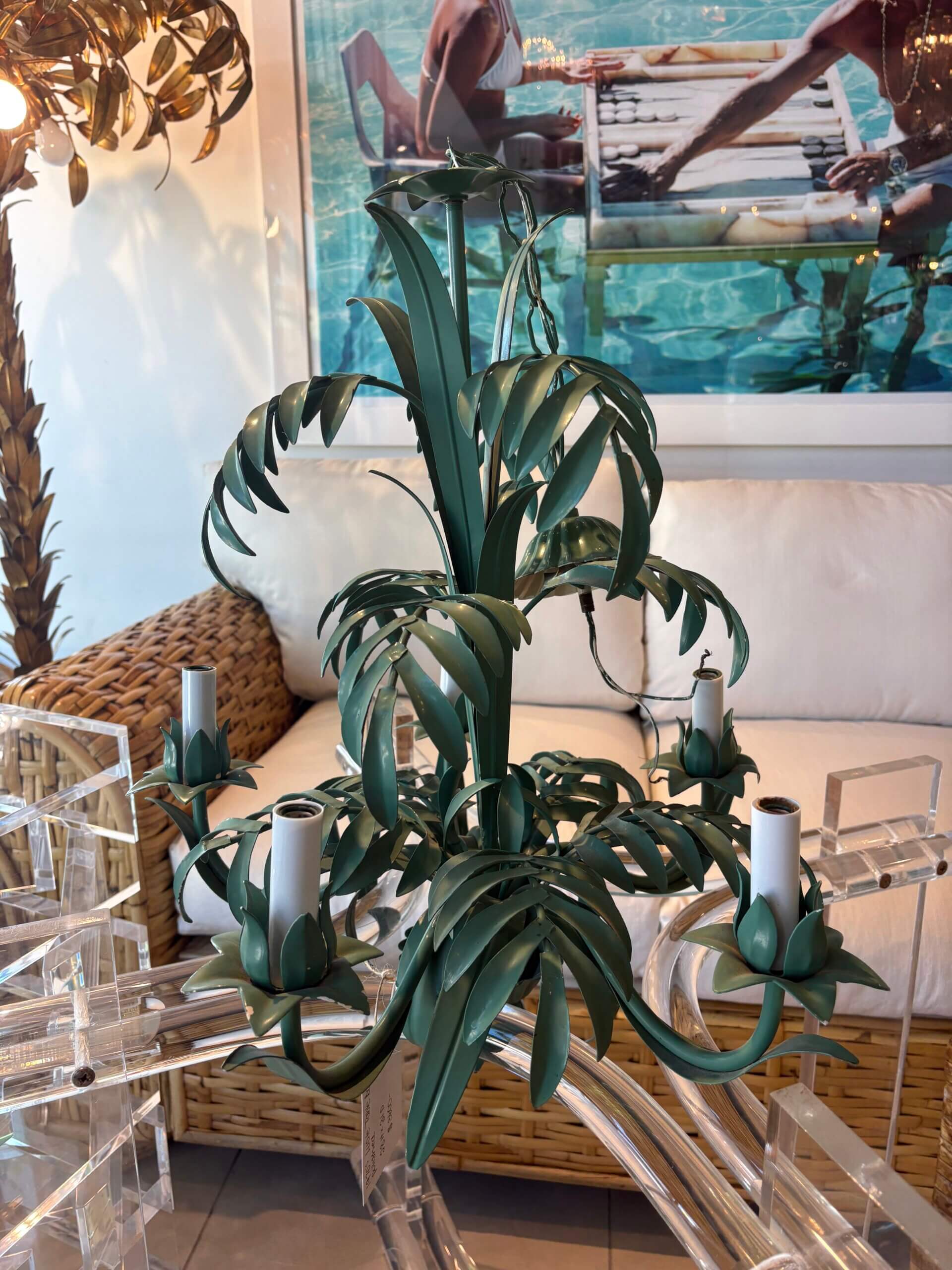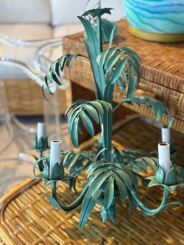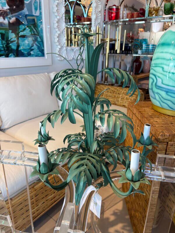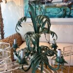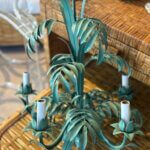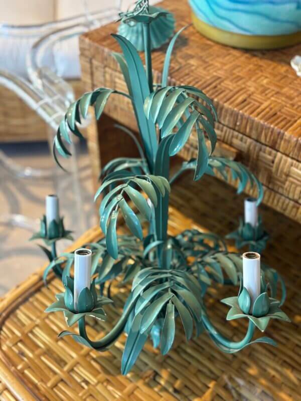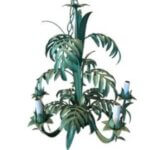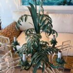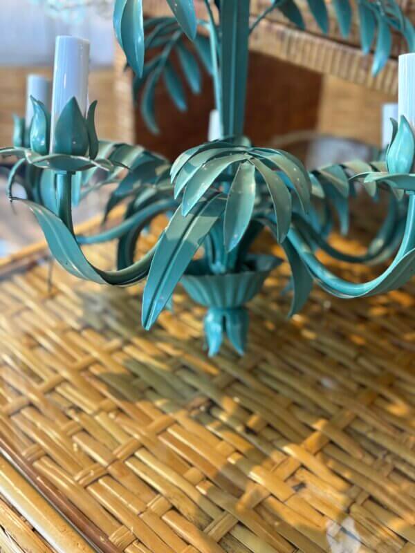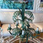 Tags: 5 light, chandelier, Coastal, green, leaf, leaves, Metal, Palm Beach, Palm Tree, Tole, tropical, Vintage