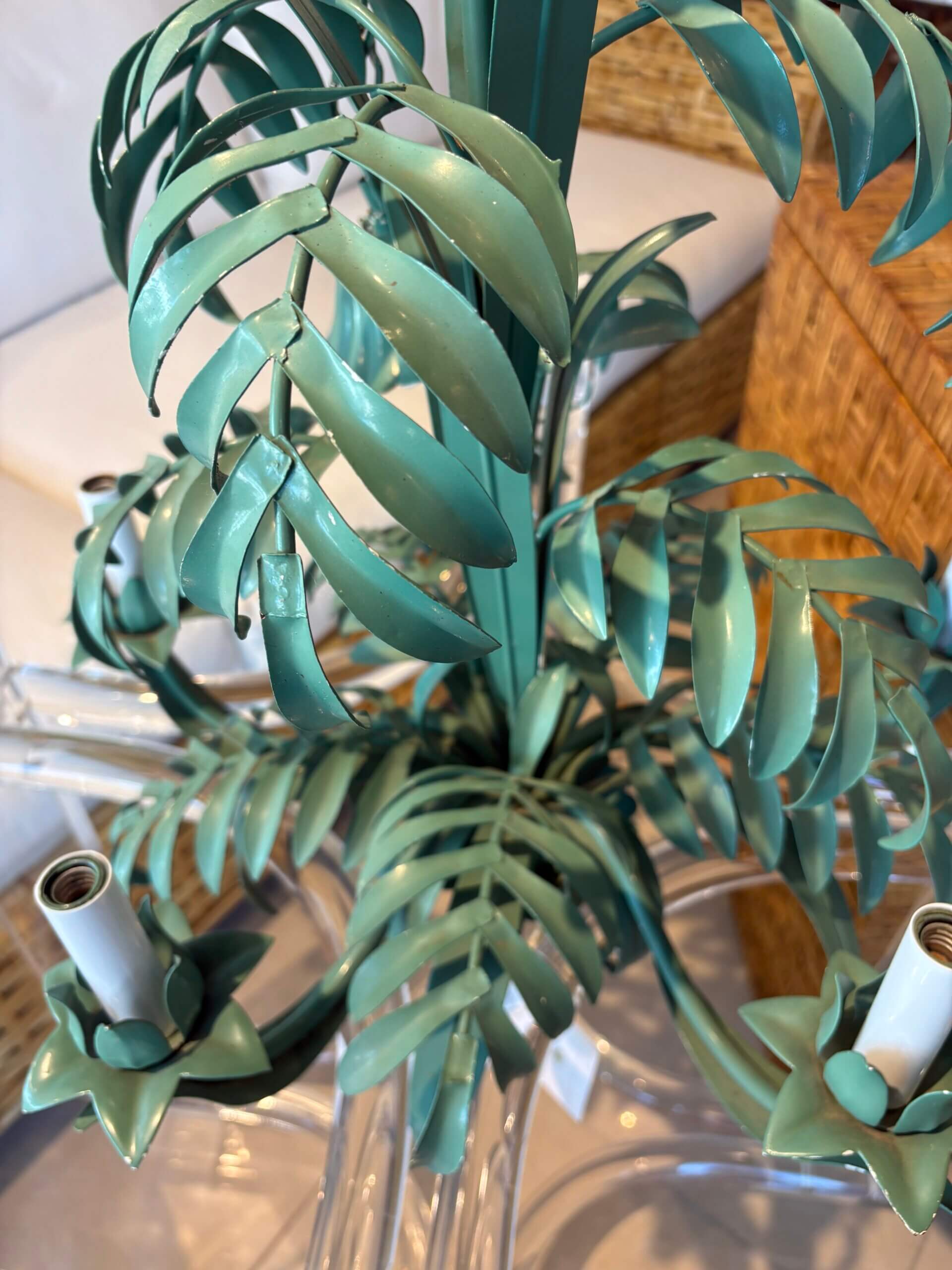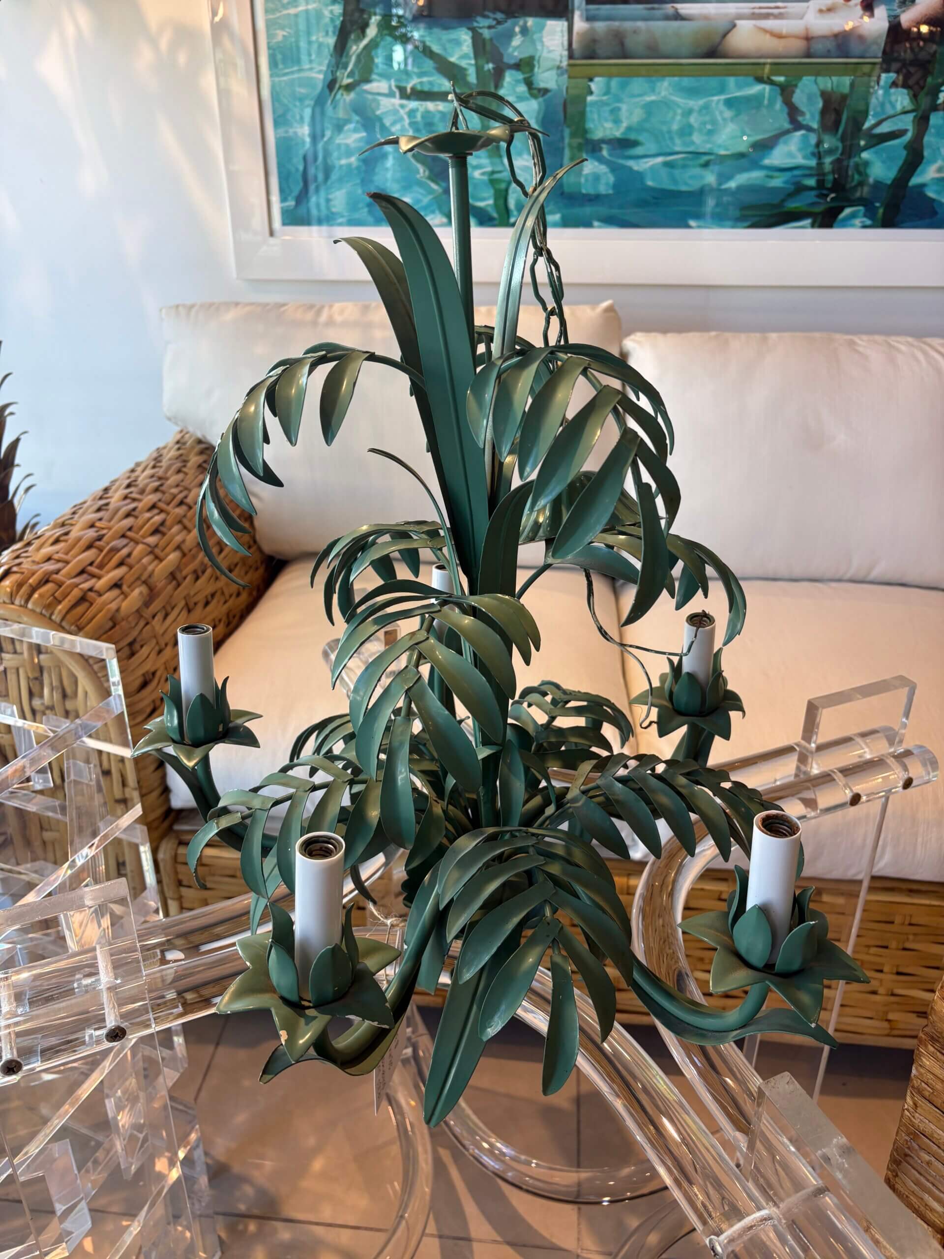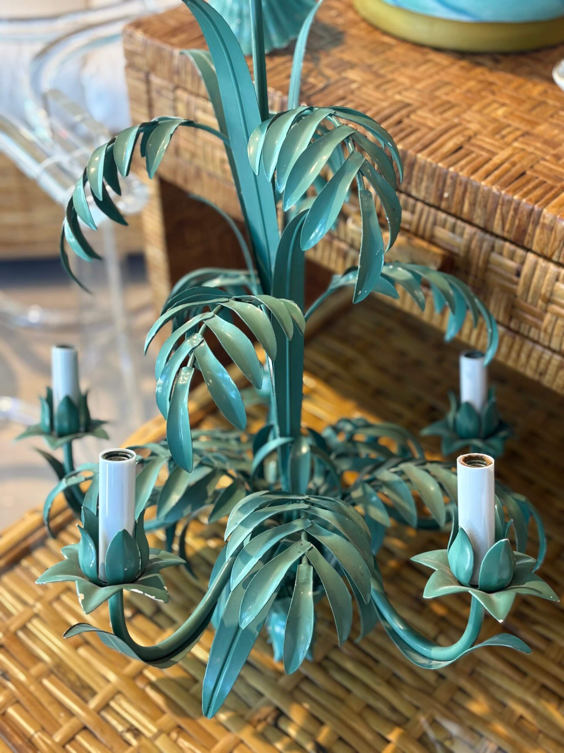 Vintage Tropical Green Metal Tole Palm Beach Leaf Tree Chandelier 5 Light Coastal