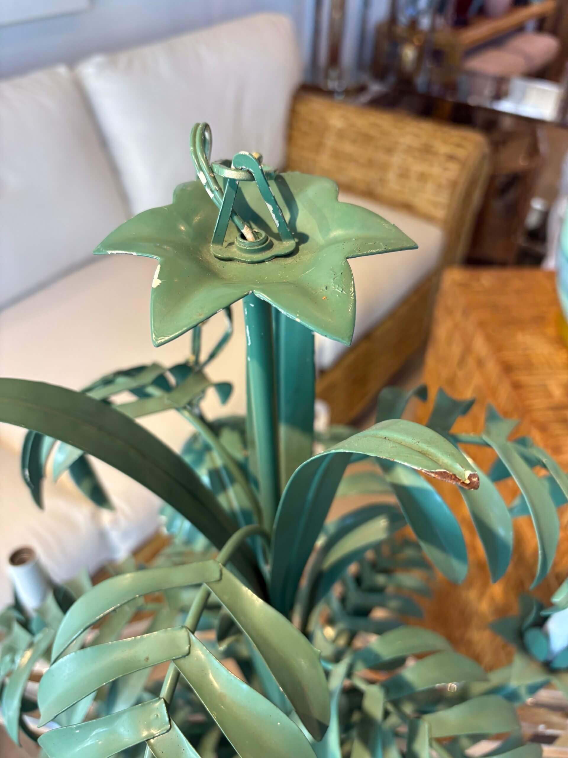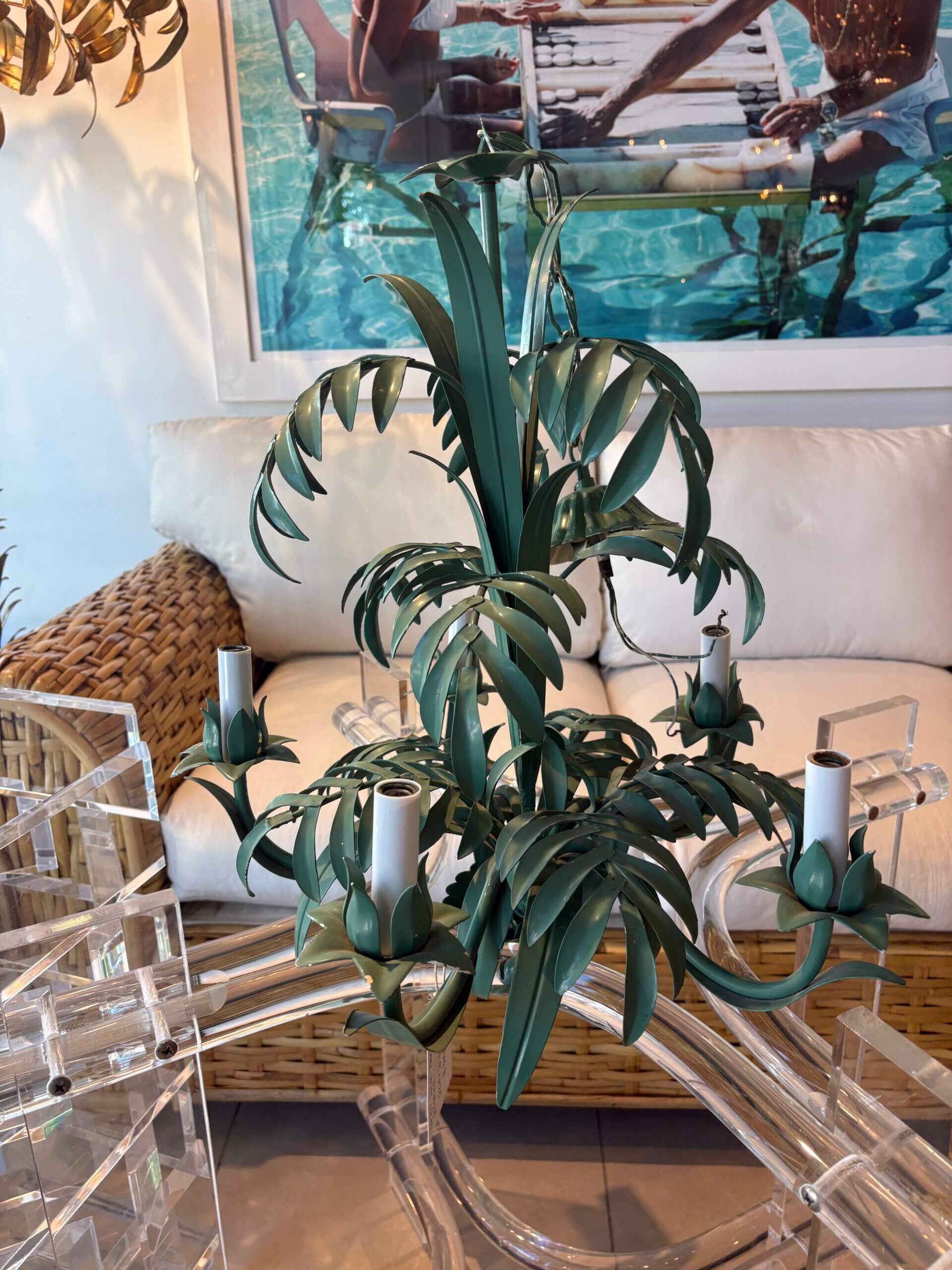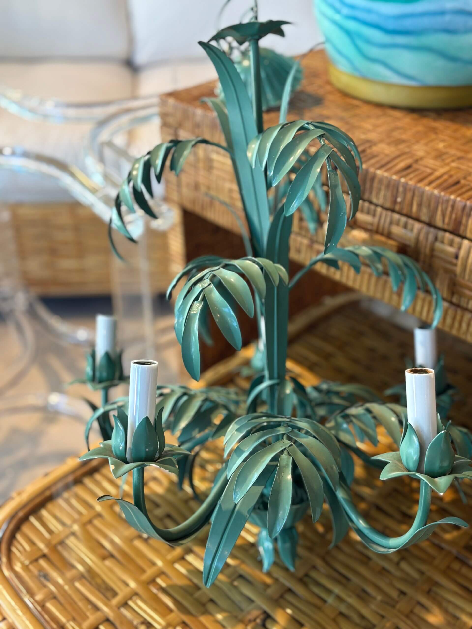 Vintage Tropical Green Metal Tole Palm Beach Leaf Tree Chandelier 5 Light Coastal