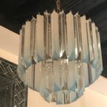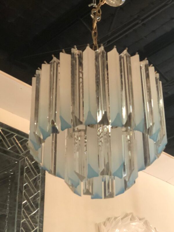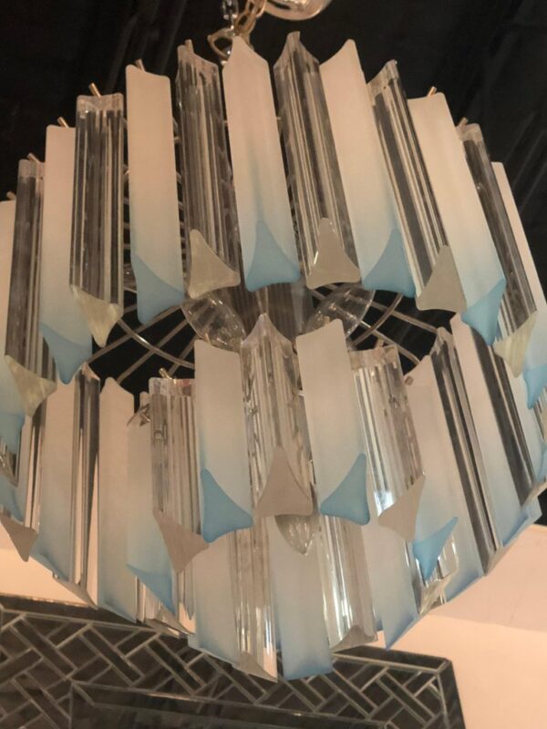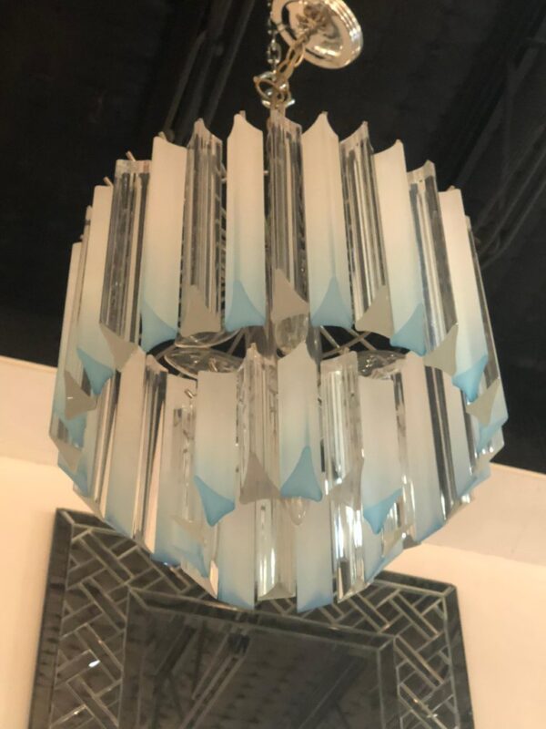 Vintage Light Blue Aqua Lucite Two-Tier Chrome Chandelier