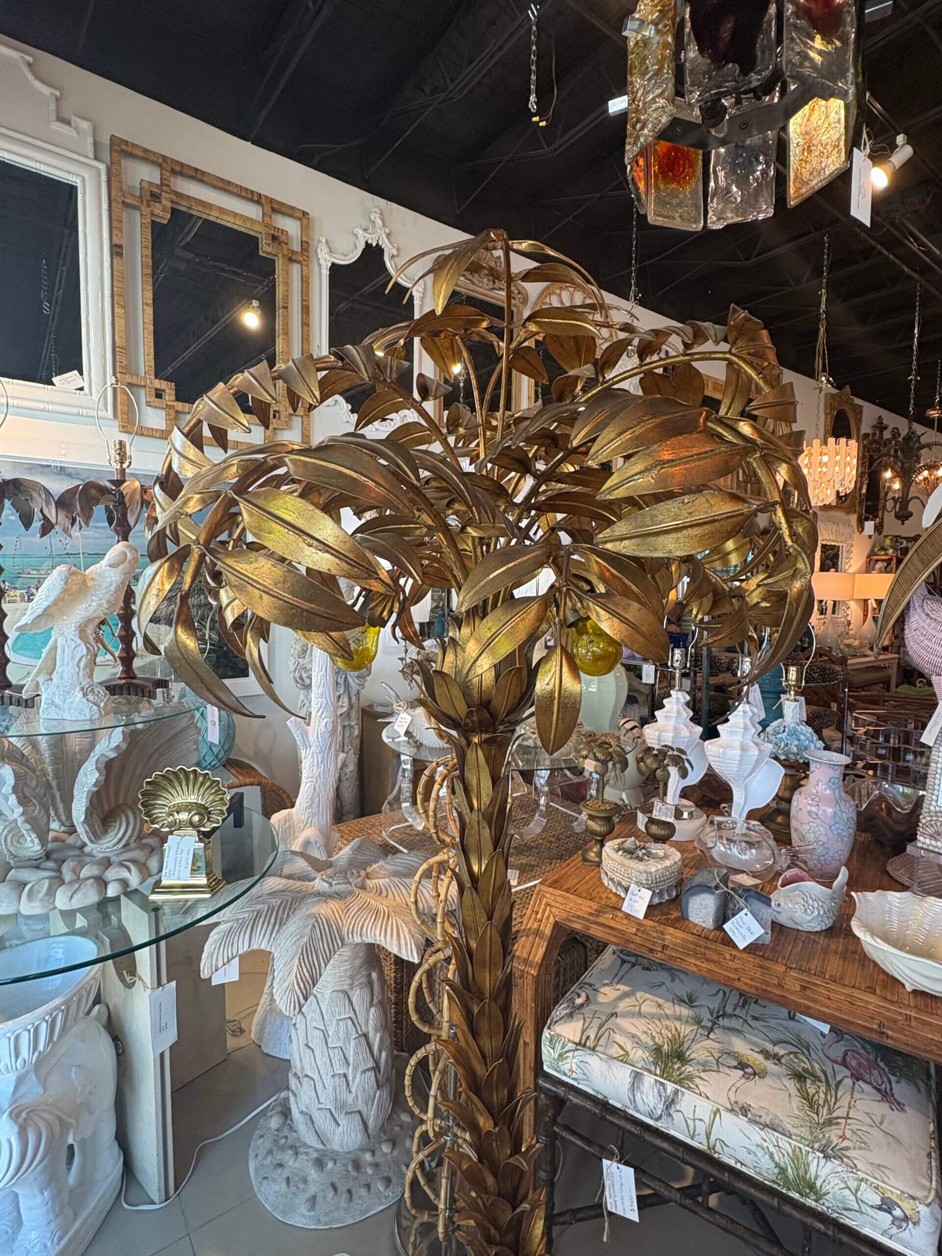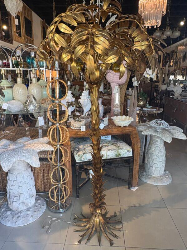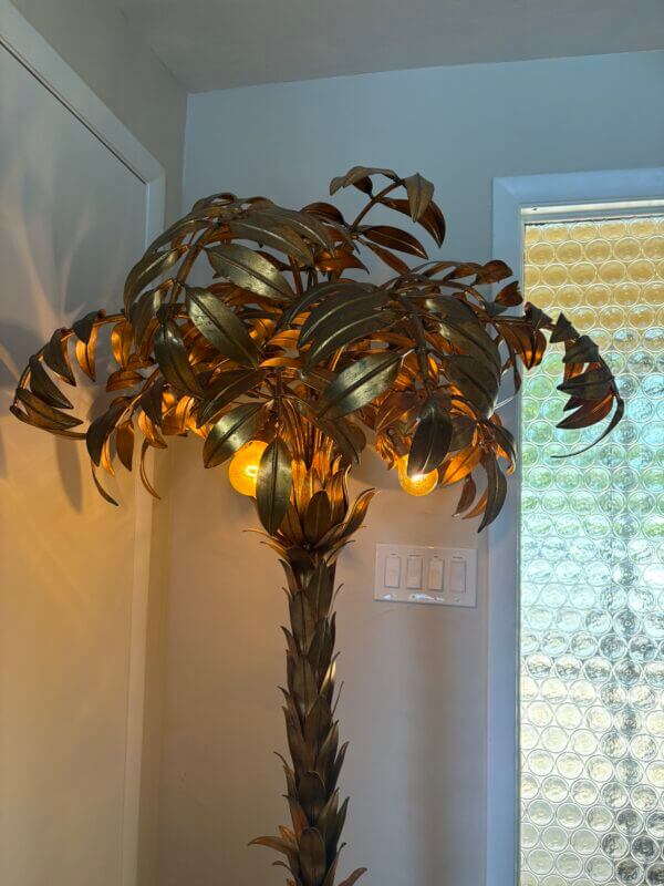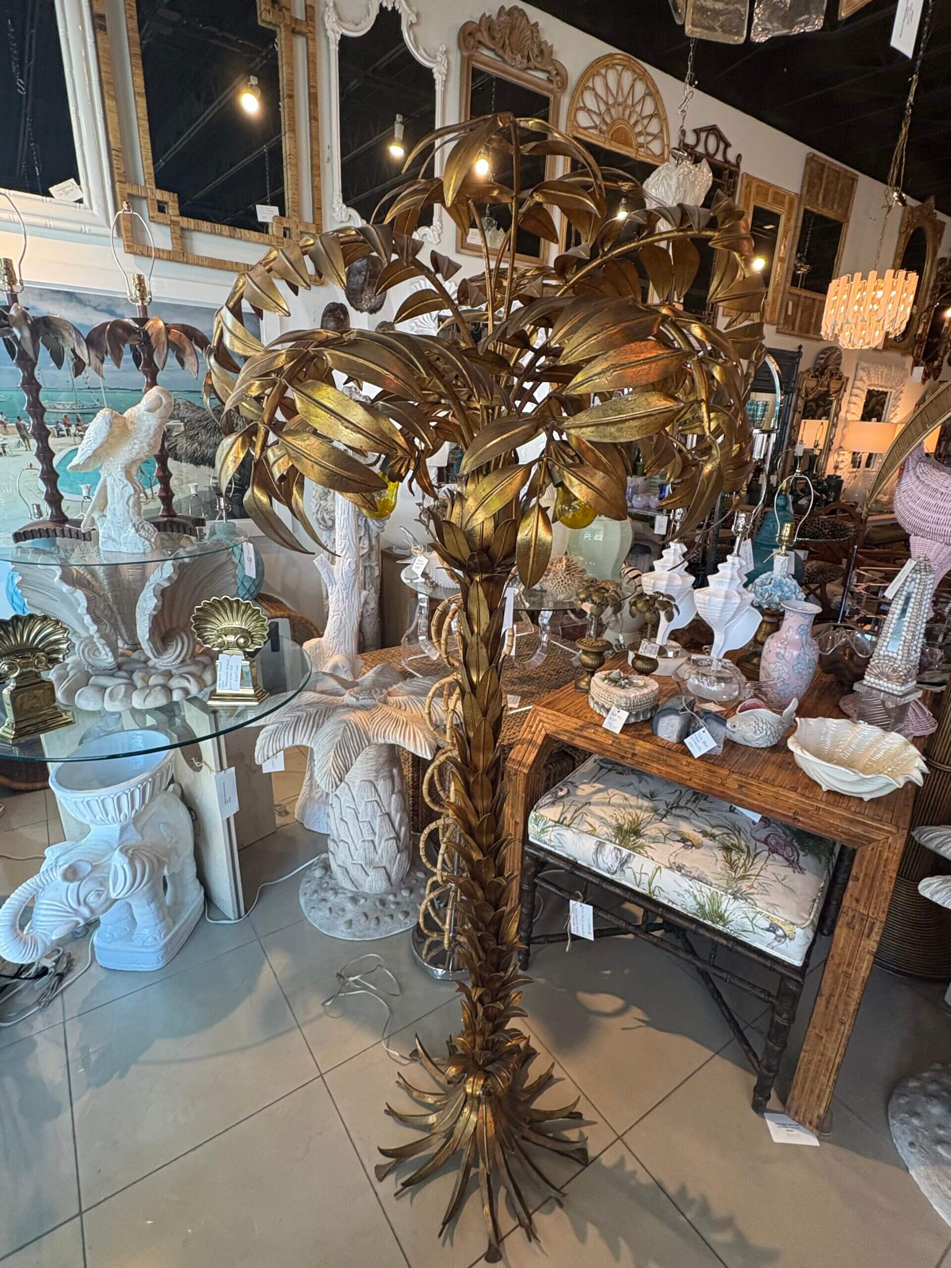 Vintage Large 1970s Hans Kogl Gold Gilt Metal Palm Tree Floor Lamp Newly Wired