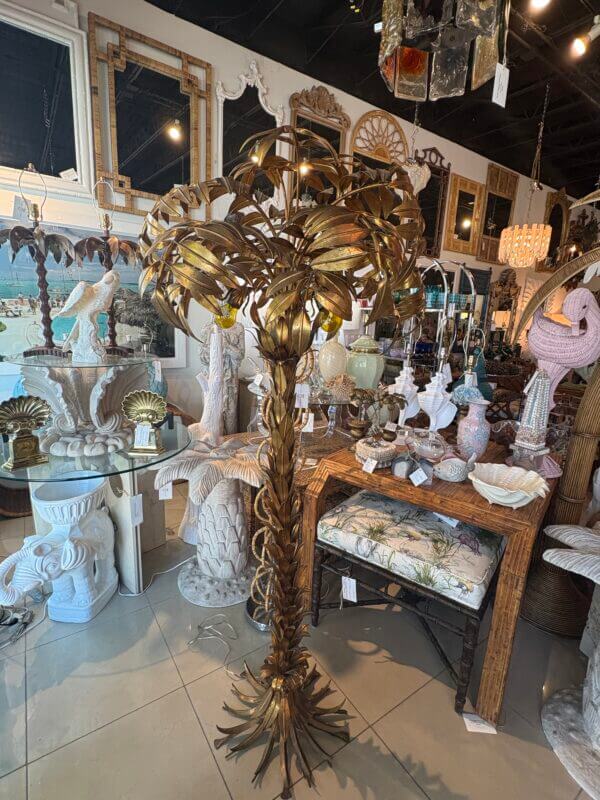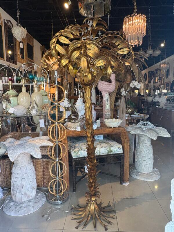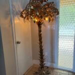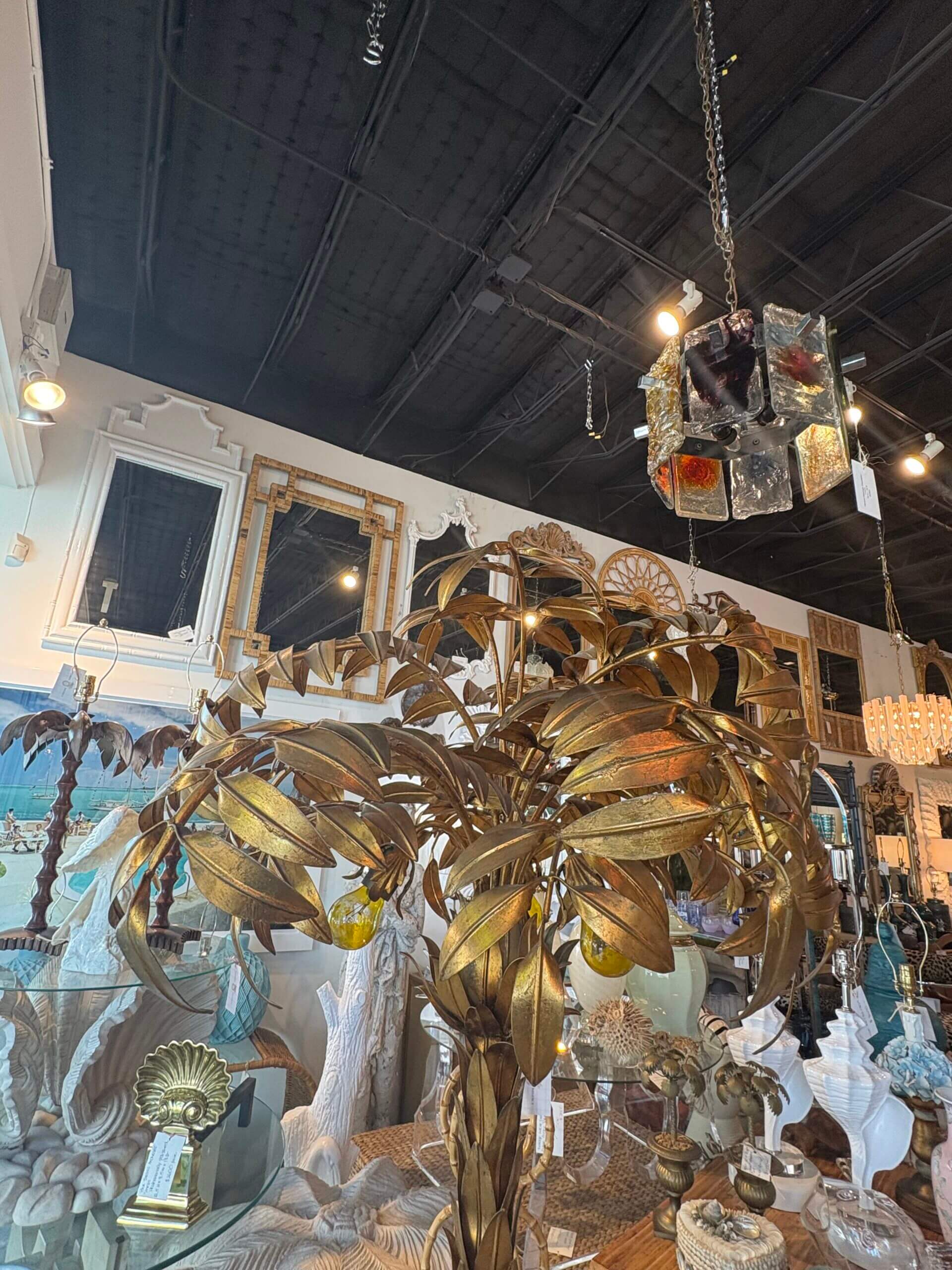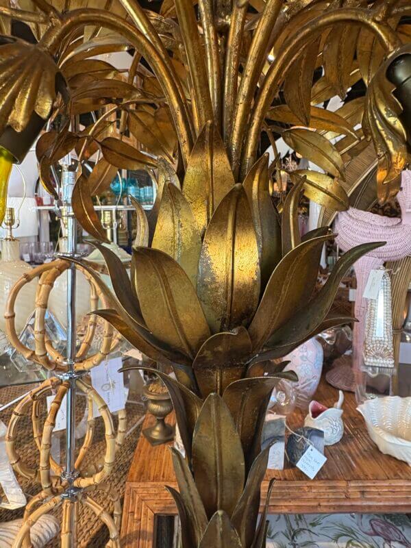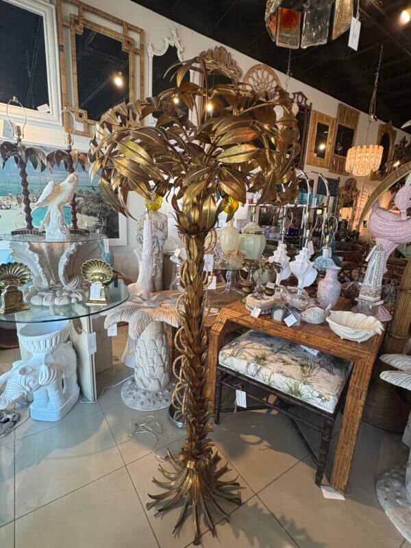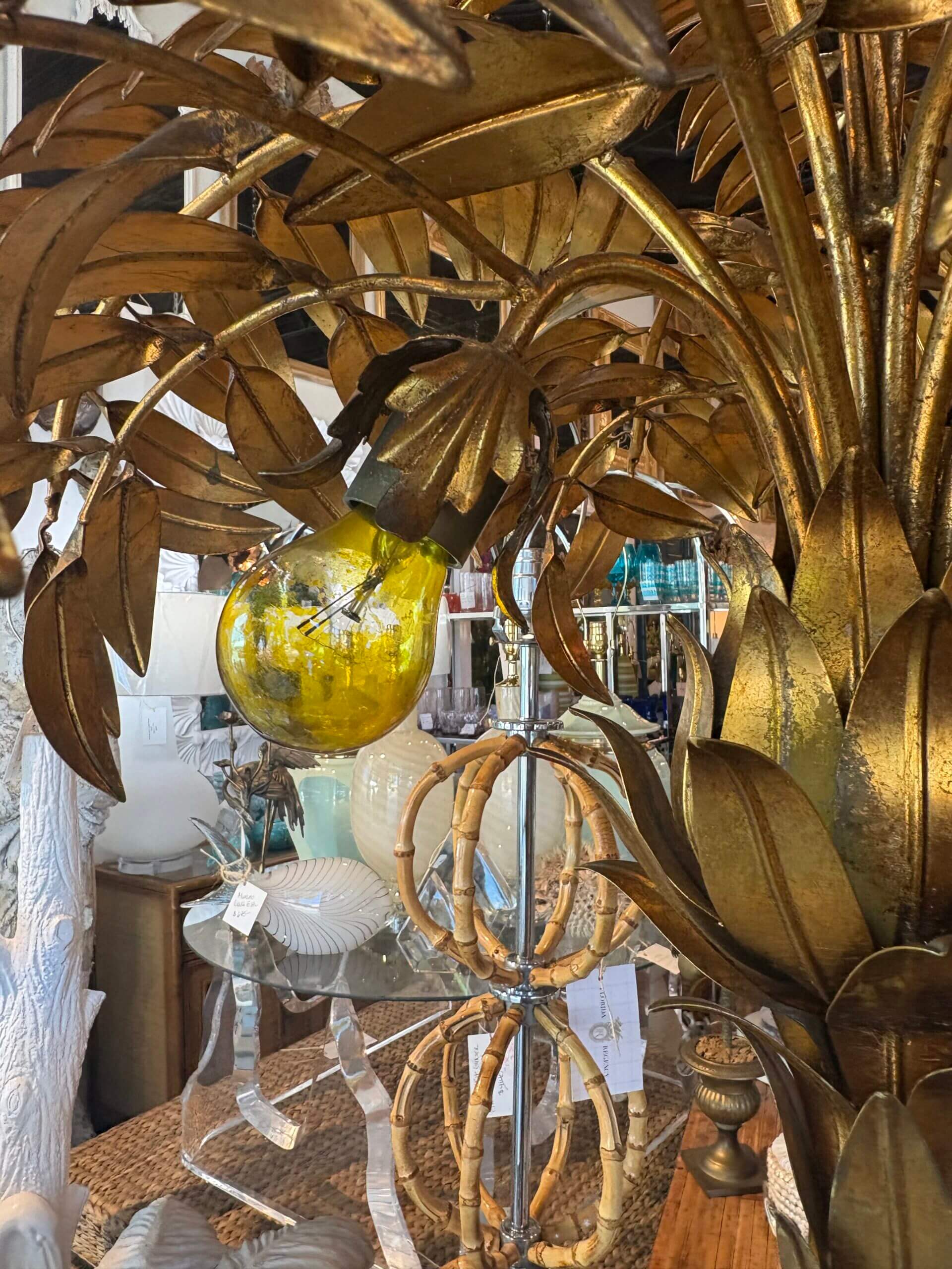 Vintage Large 1970s Hans Kogl Gold Gilt Metal Palm Tree Floor Lamp Newly Wired