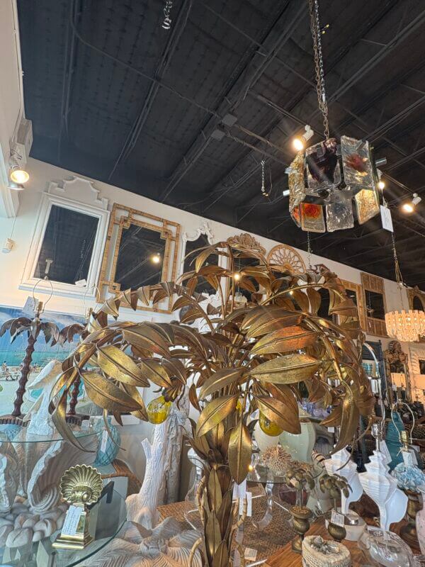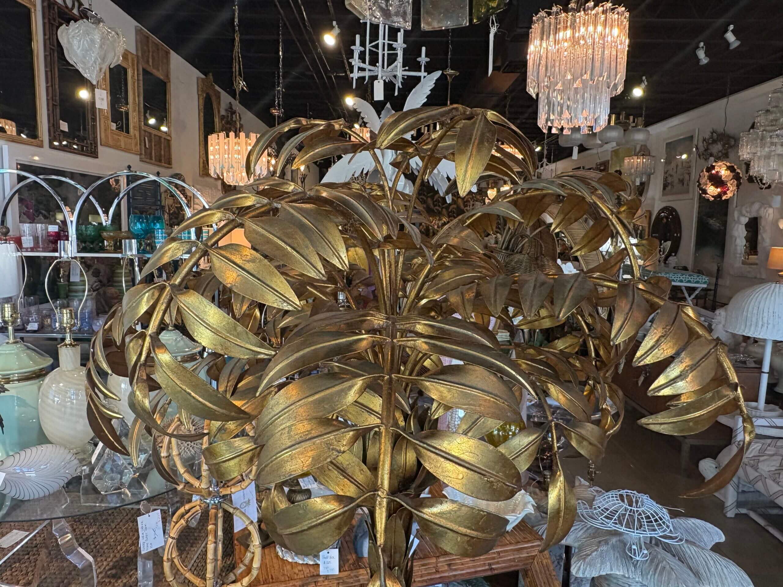 Monkey & Brass Palm Frond Leaf Tree 6 Light Chandelier Tropical Palm Beach