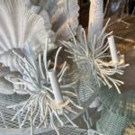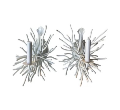 Vintage Pair Palm Beach Coral Metal Tole Wall Sconces Lights Newly Wired White
