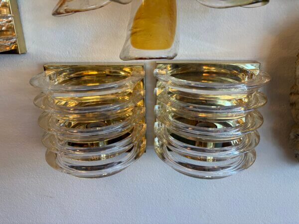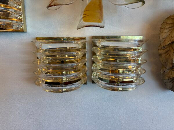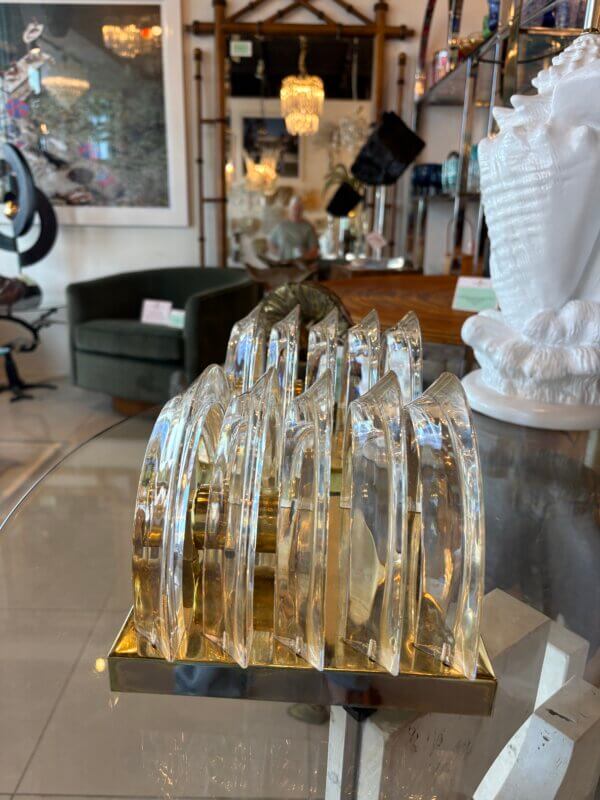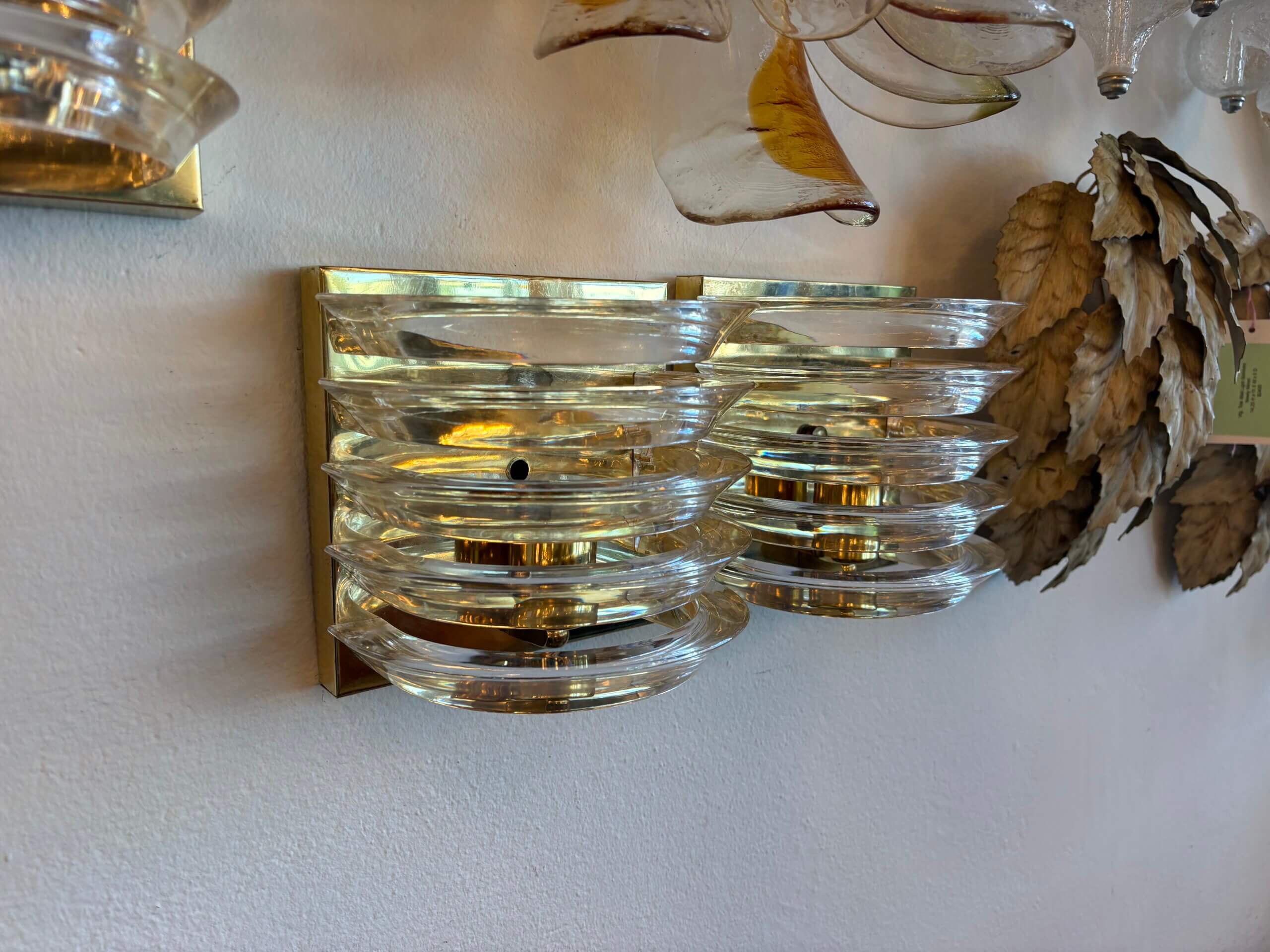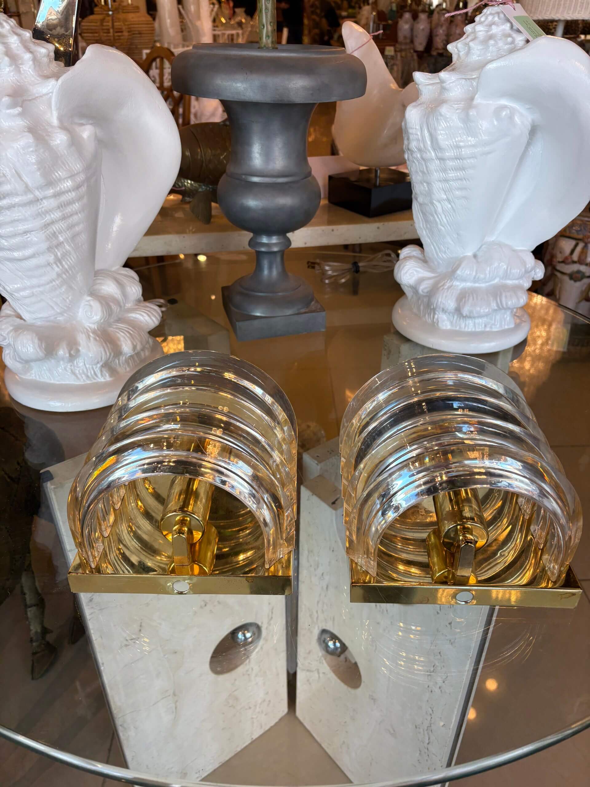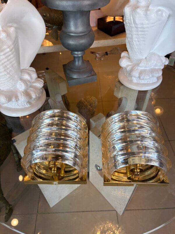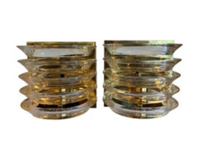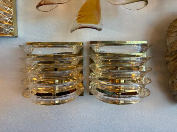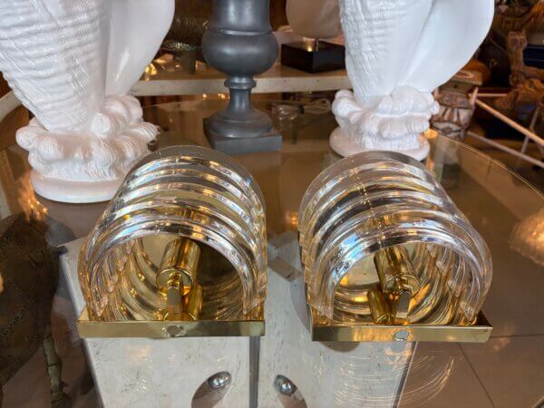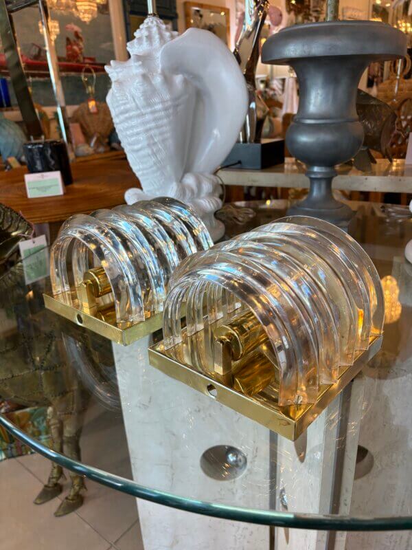 Vintage Pair Art Deco Wall Light Sconces Lucite Ribbon & Brass
