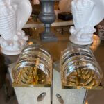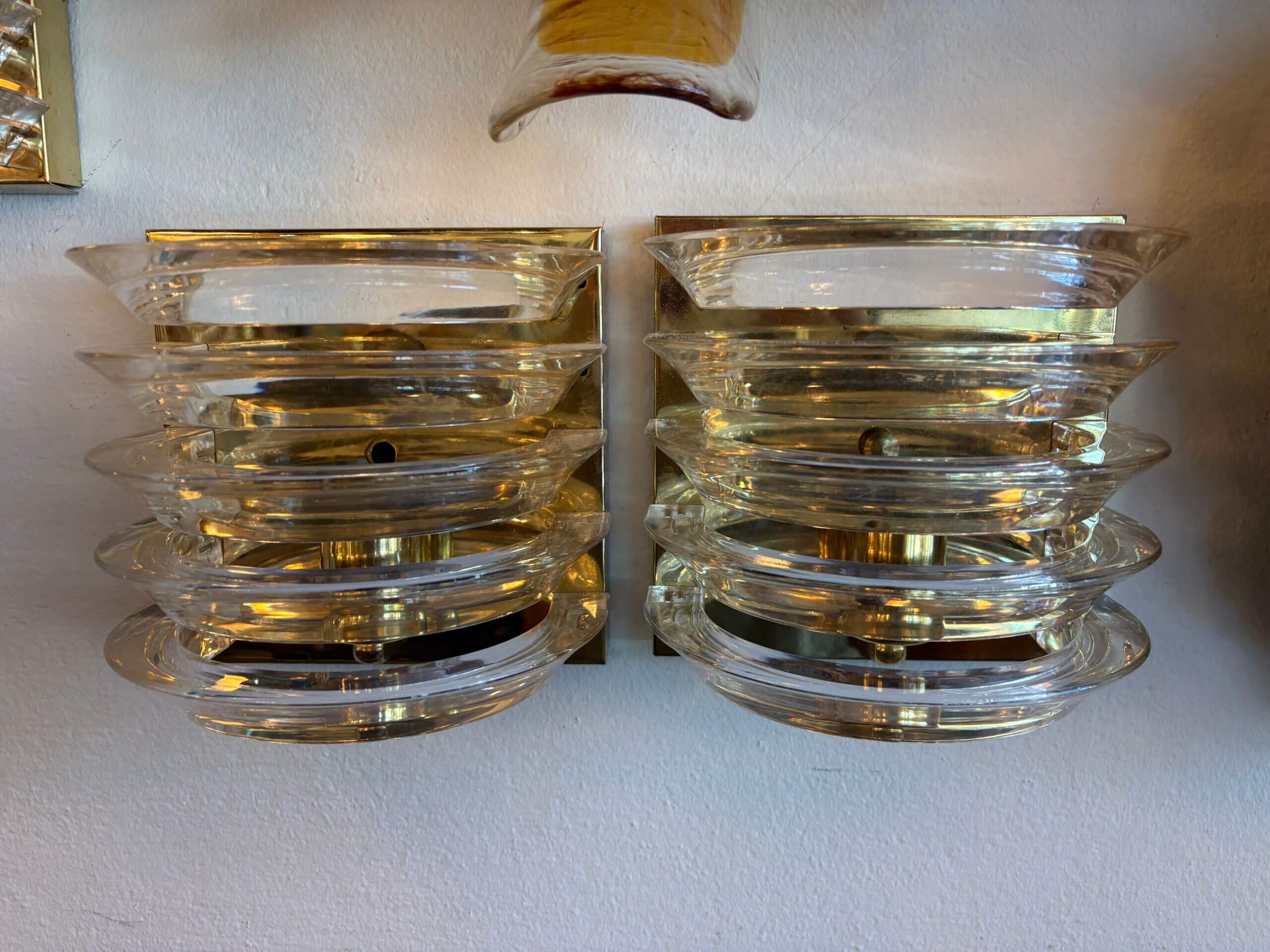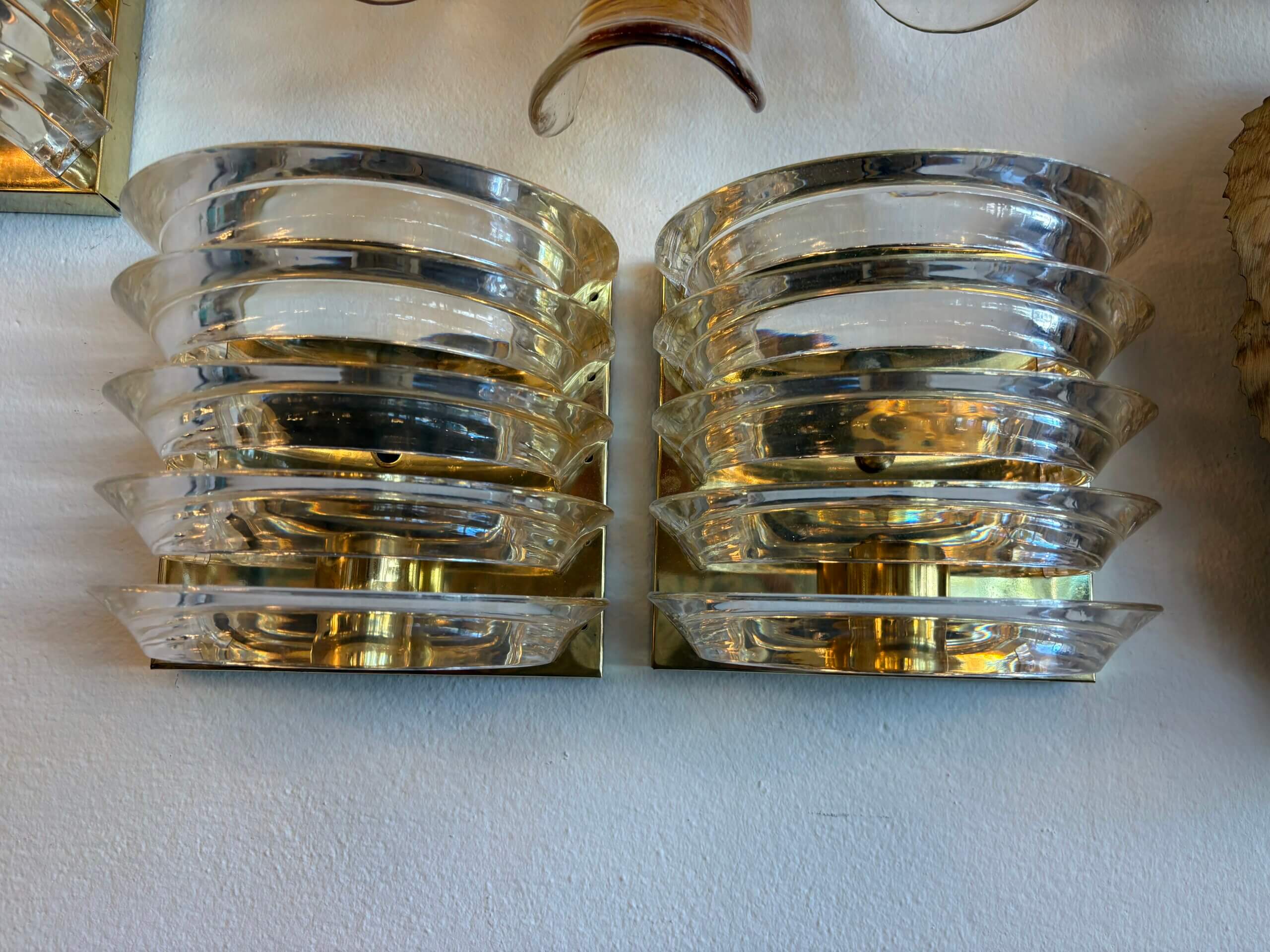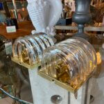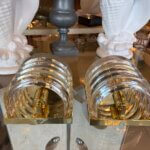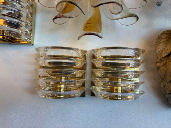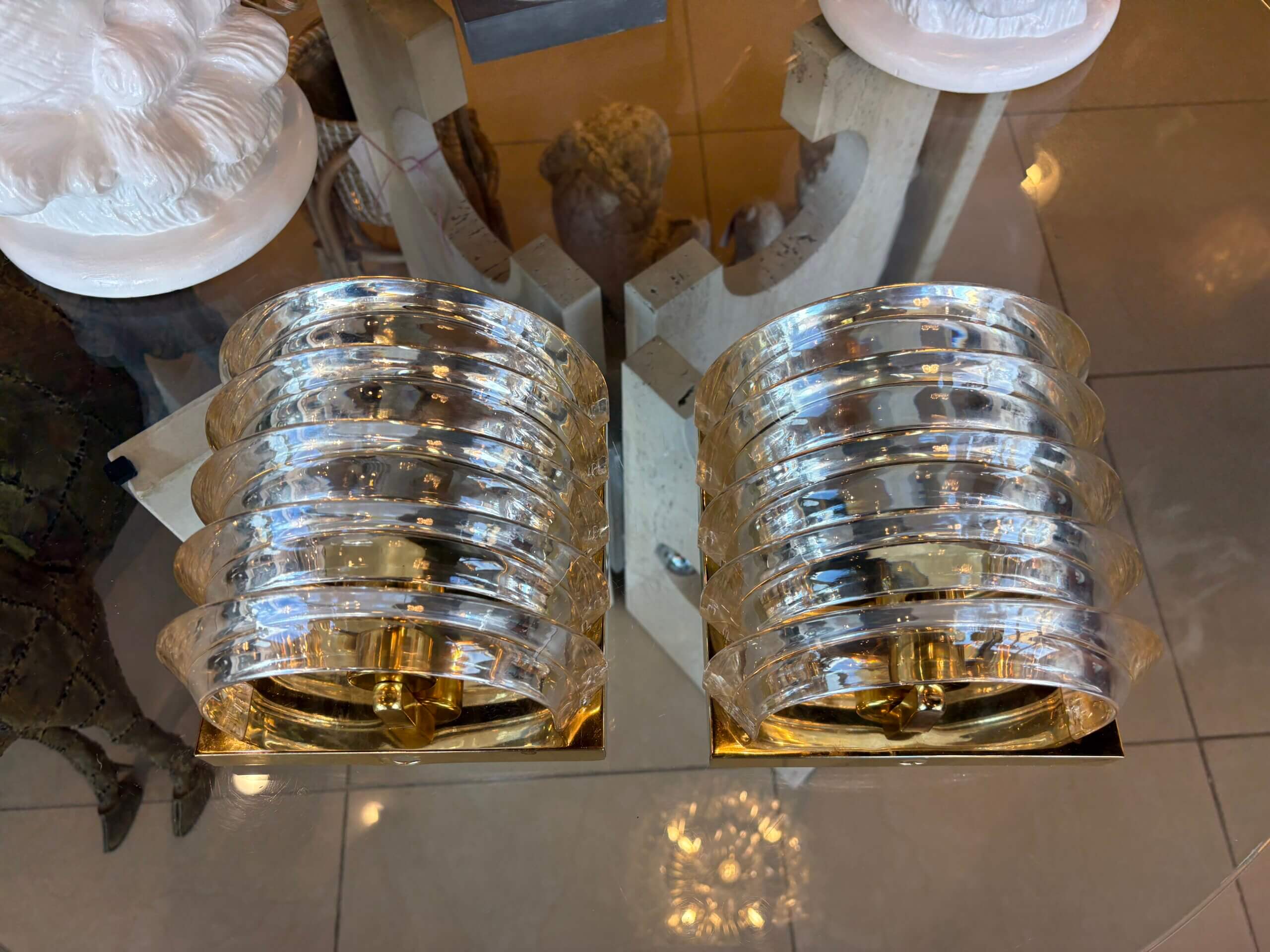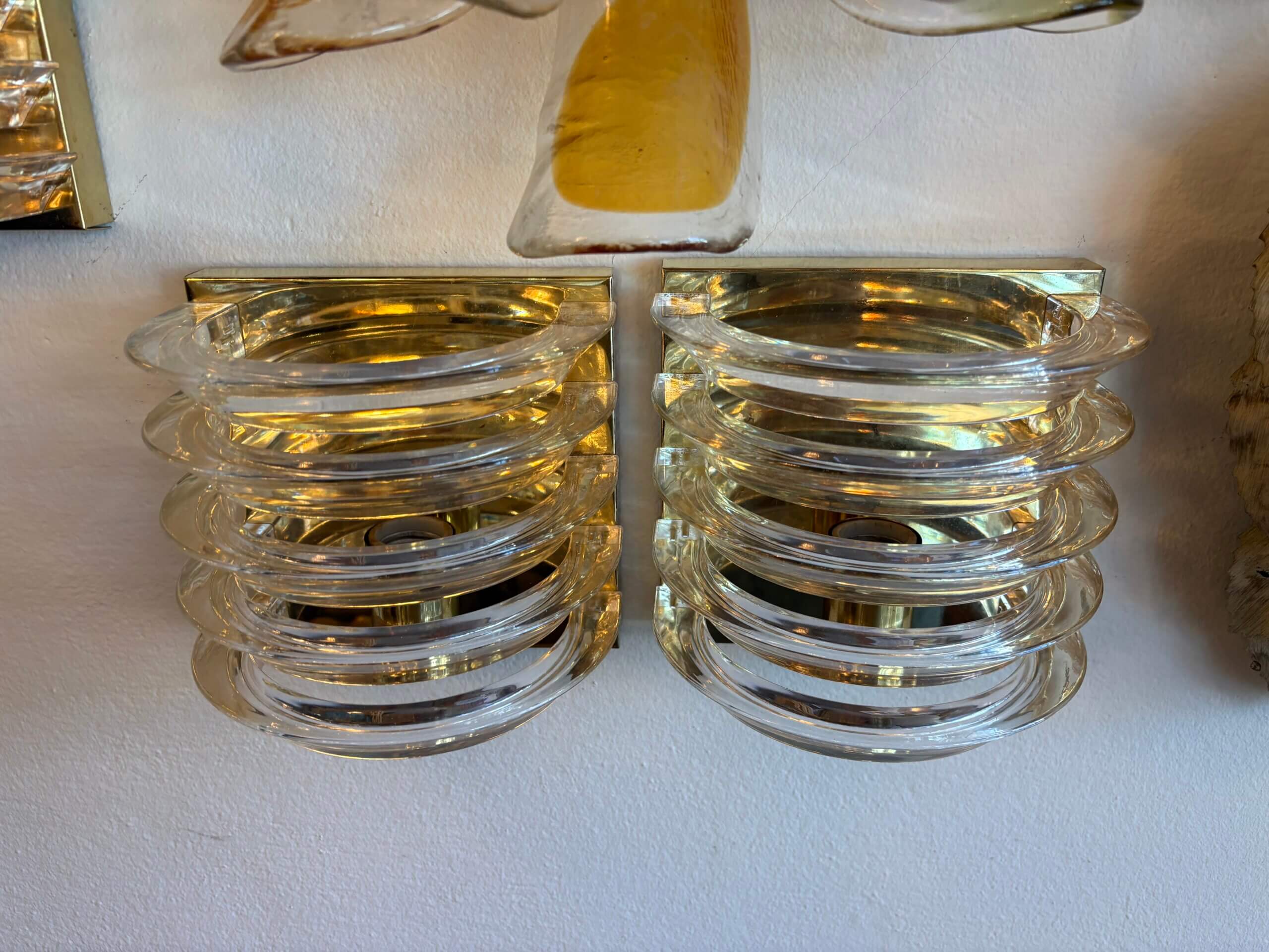 Vintage Pair Art Deco Wall Light Sconces Lucite Ribbon & Brass