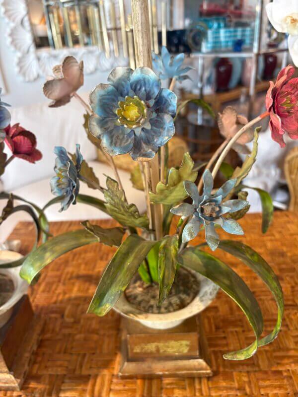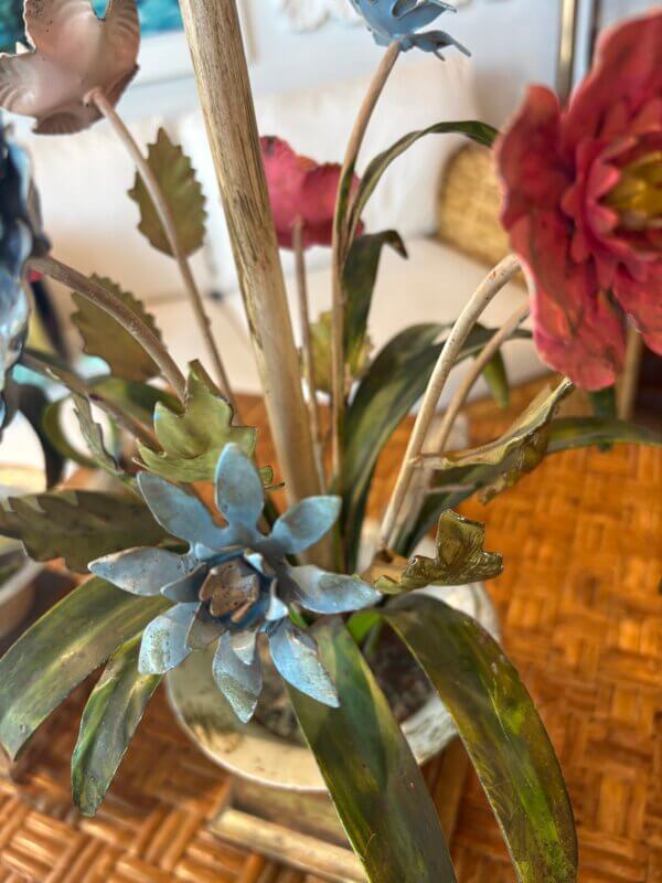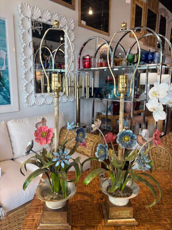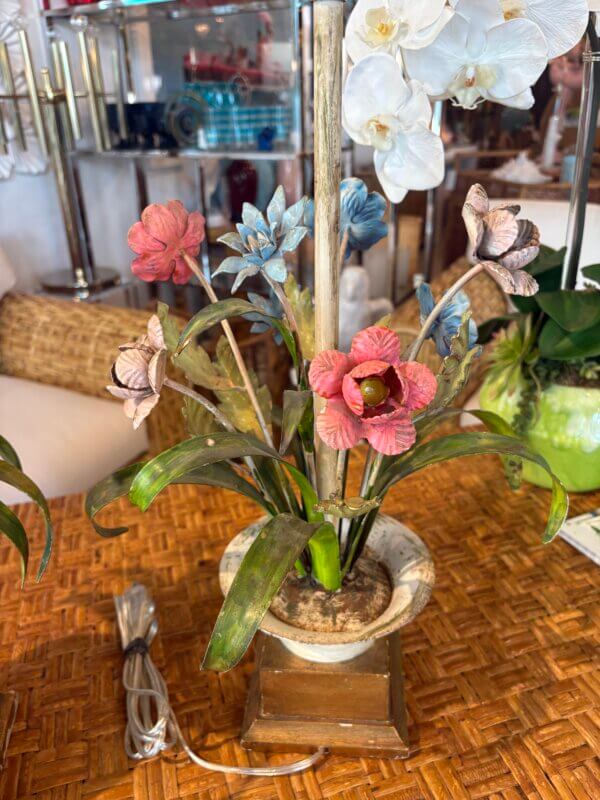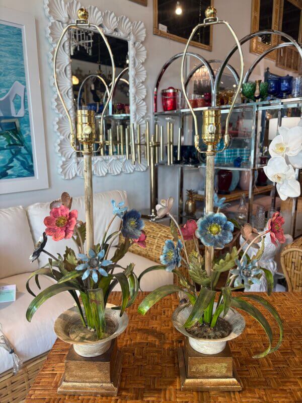 Italian Chippy Paint Patina Tole Metal Urn Floral Flower Table Lamps New Wiring