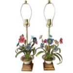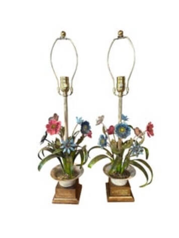 Tags: floral, flowers, Italian, Metal, pair, table lamps, tole lamps, urn, Vintage