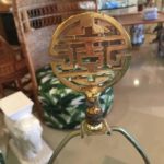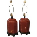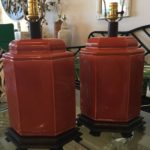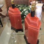 Pair of Table Lamps Vintage Orange Oriental Brass Ceramic Chinoiserie