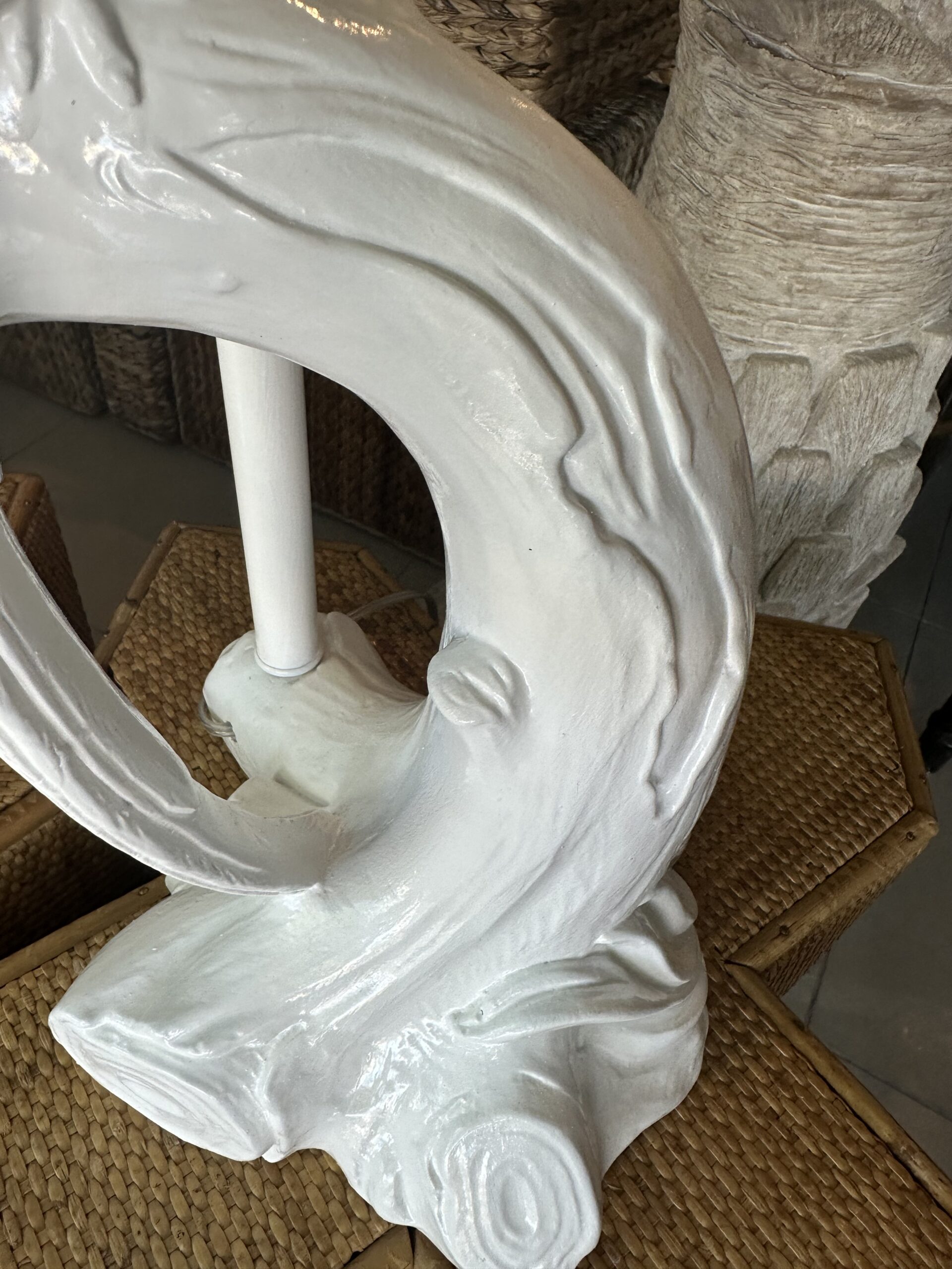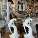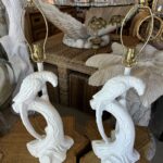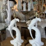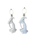 Vintage Pair of Plaster White Tropical Parrot Bird Table Lamps Restored