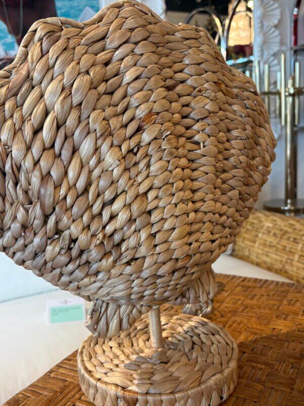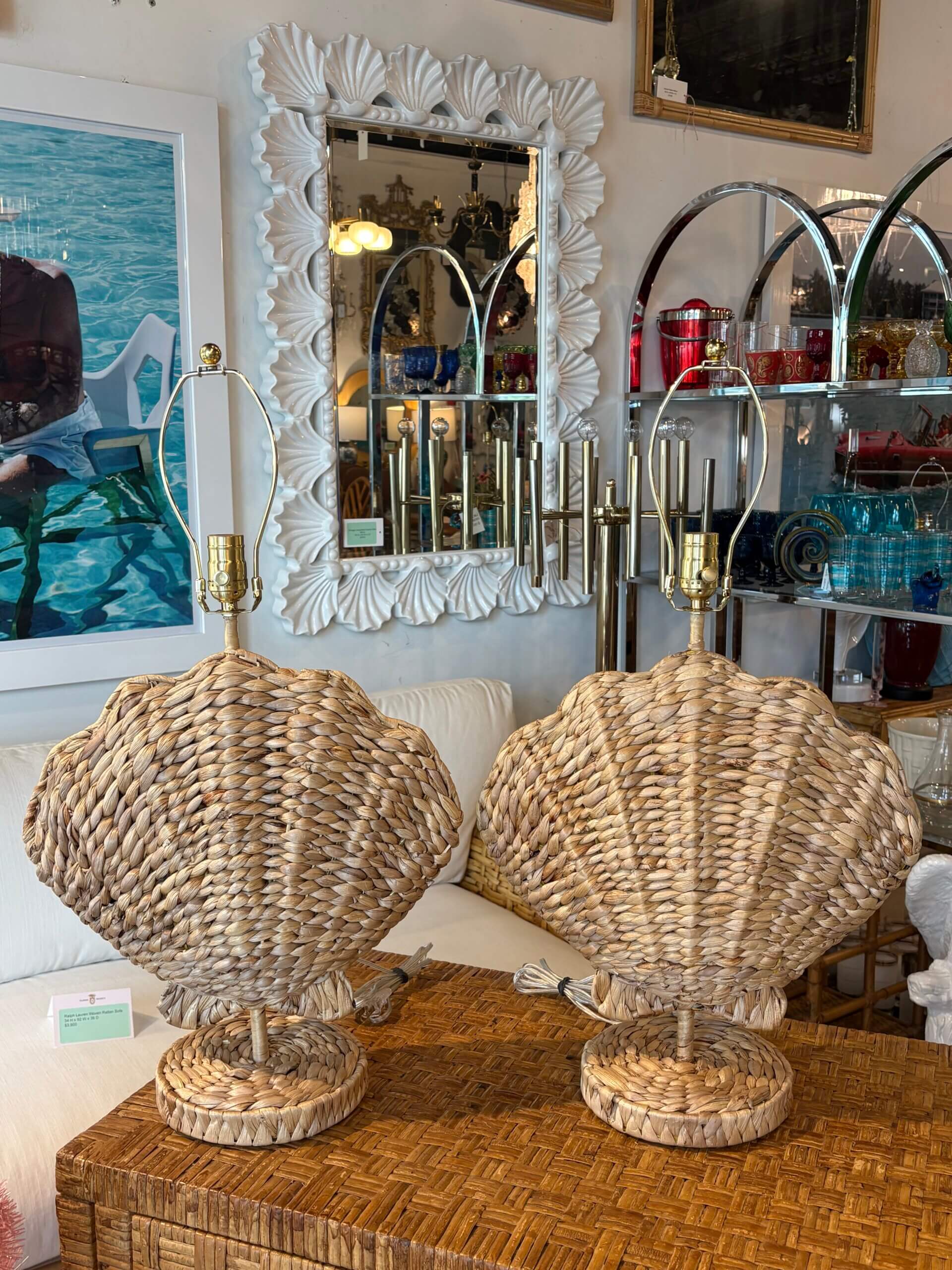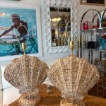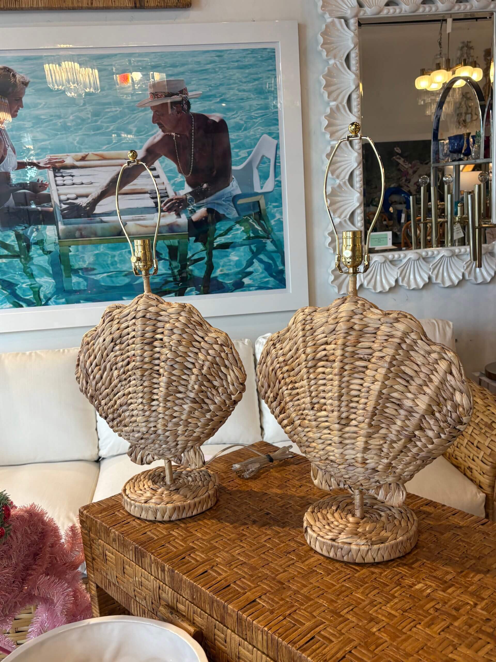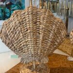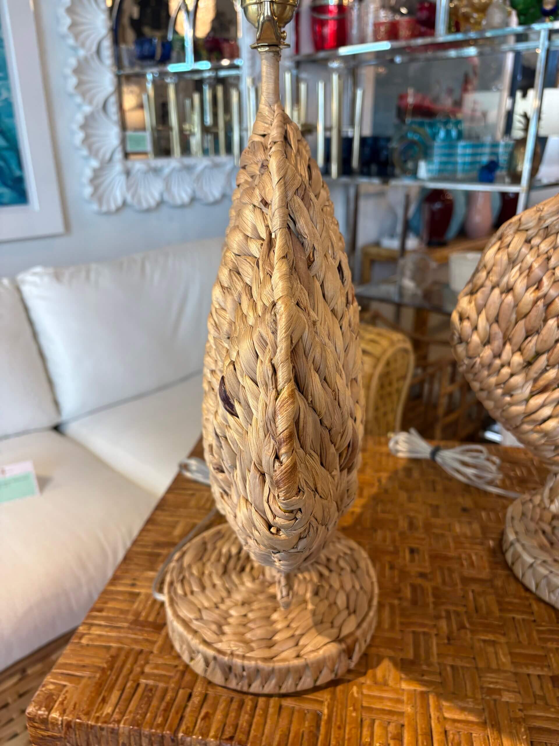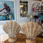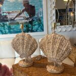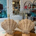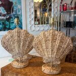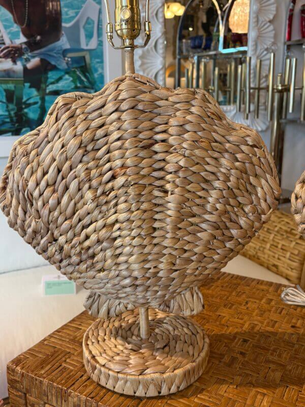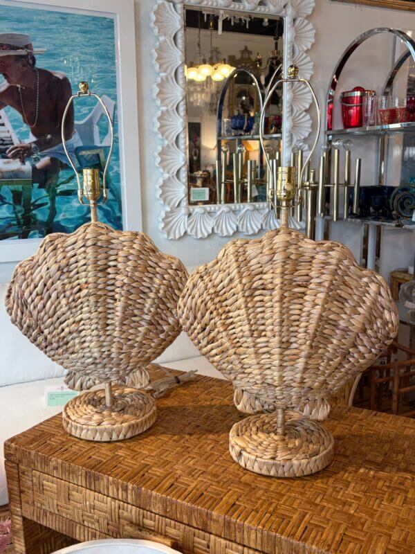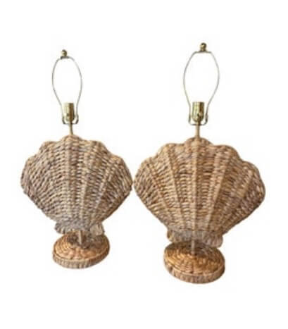 Pair of Woven Grass Scalloped Clam Shell Seashell Beach Table Lamps Newly Wired