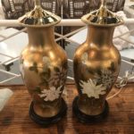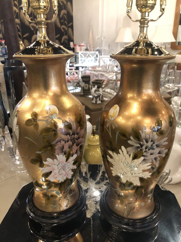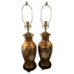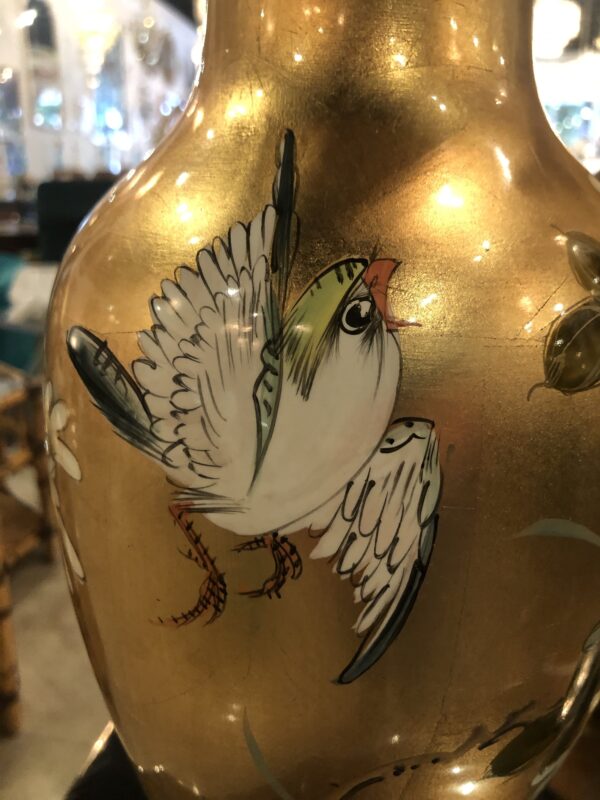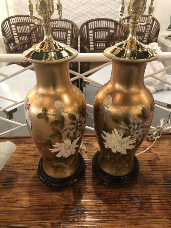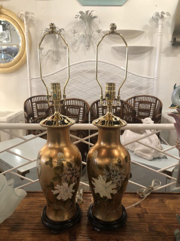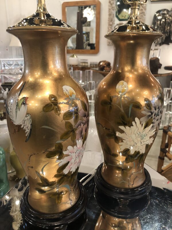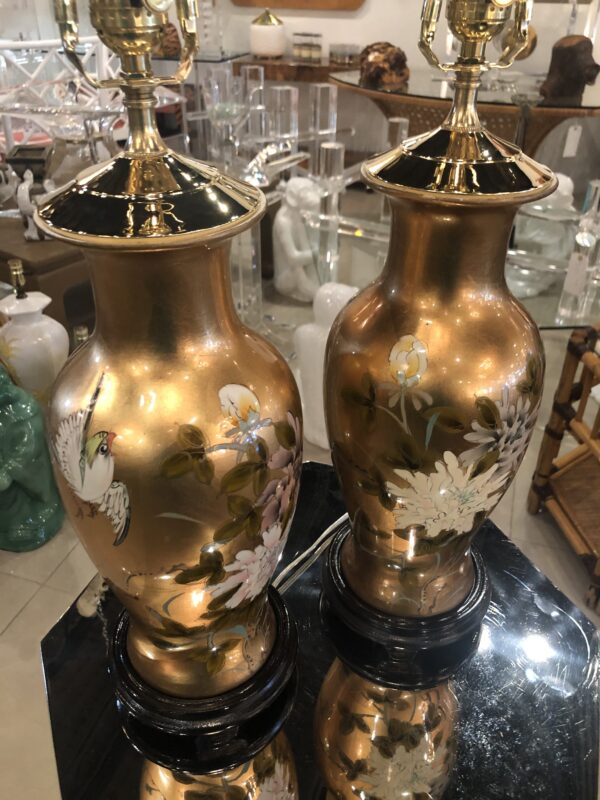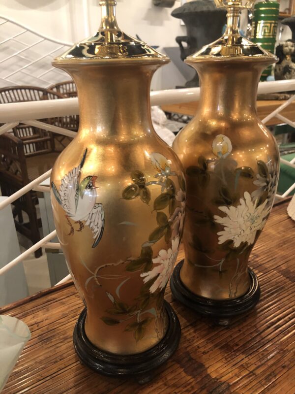 Vintage Gold Leaf Bird Floral Chinoiserie Table Lamps A Pair Newly Restored