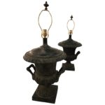 Vintage Pair of Black Oversized French Table Lamp Urns