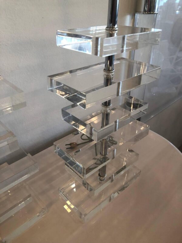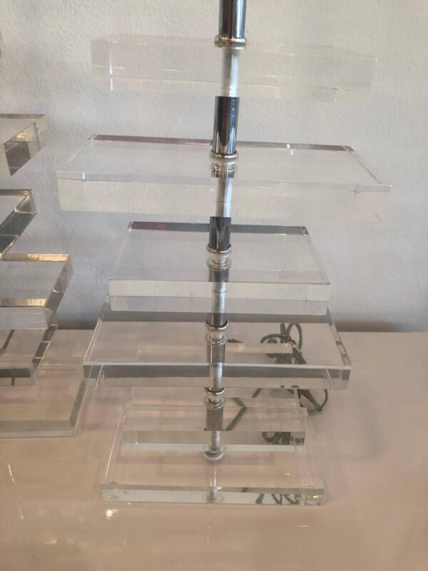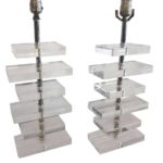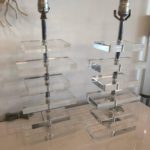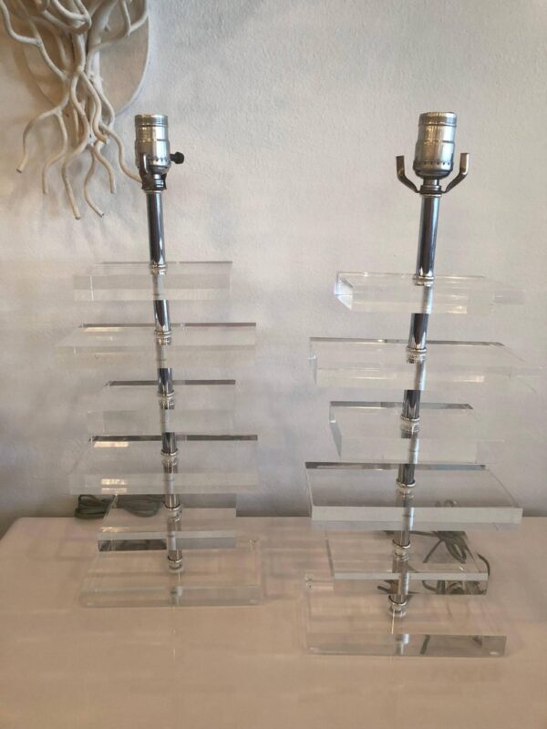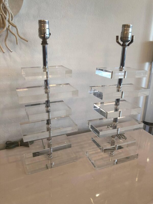 Vintage Pair of Stacked Lucite and Chrome Table Lamps Signed Marla