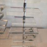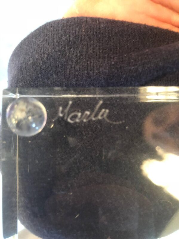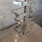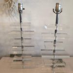Vintage pair of stacked lucite and chrome lamps, signed Marla. These will be newly wired.