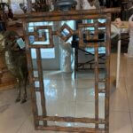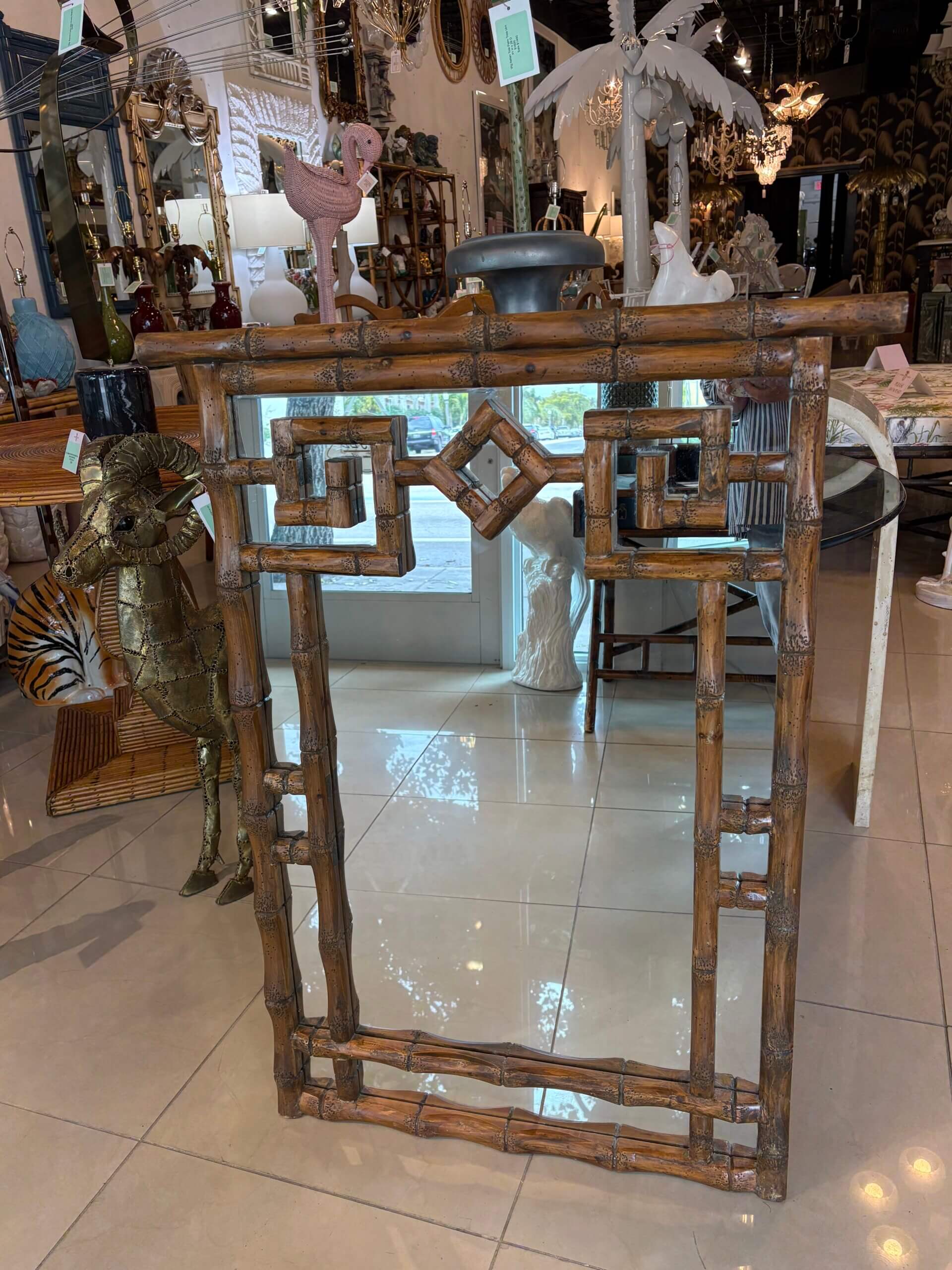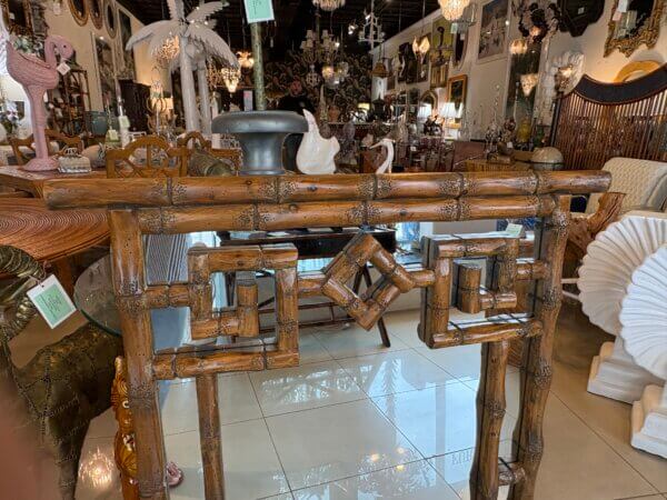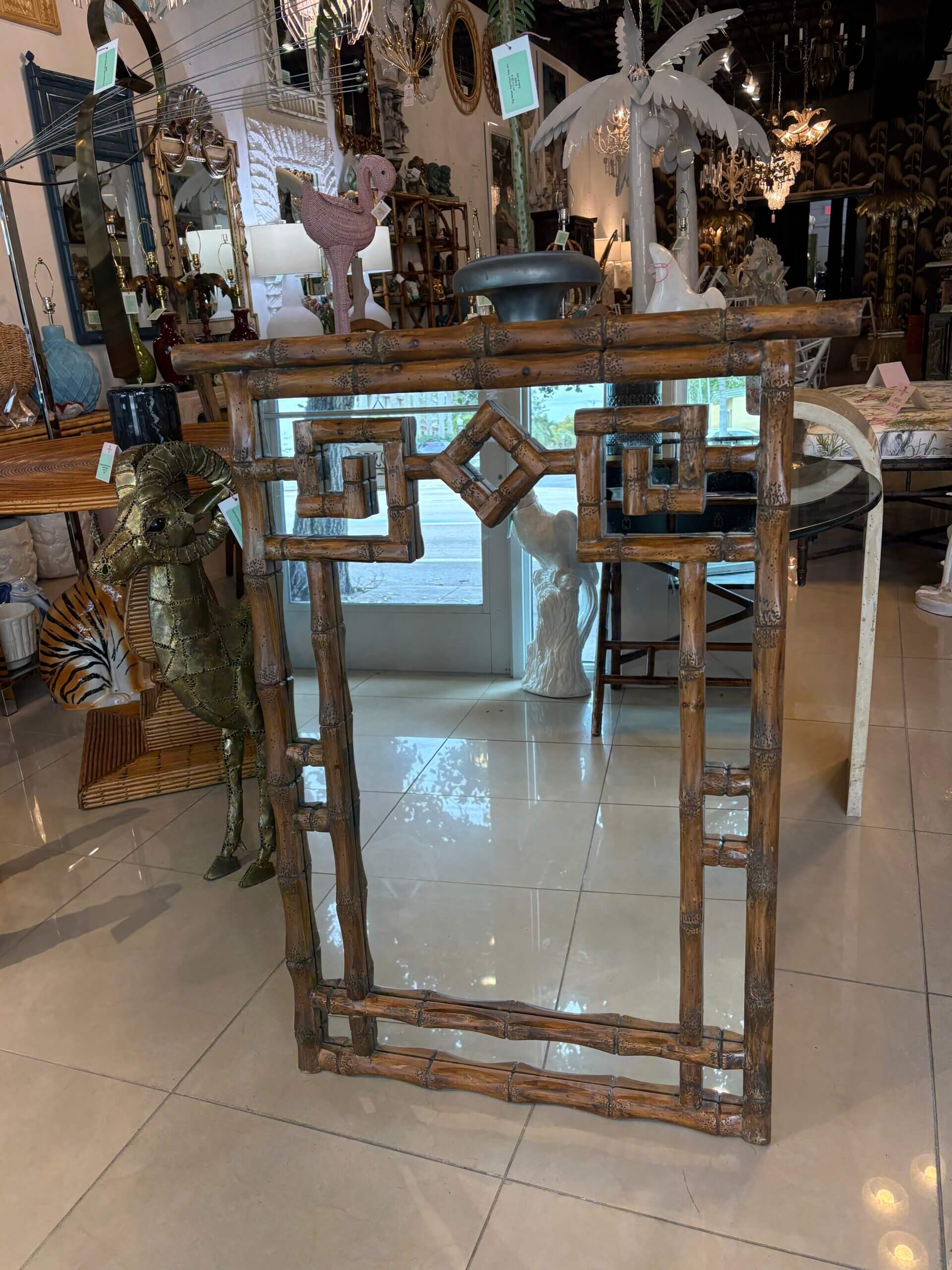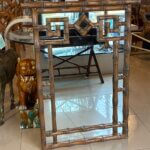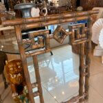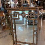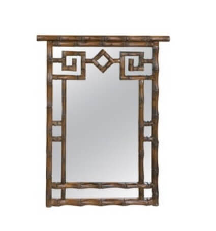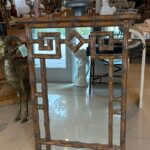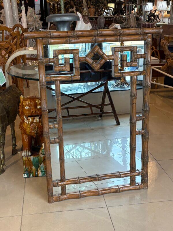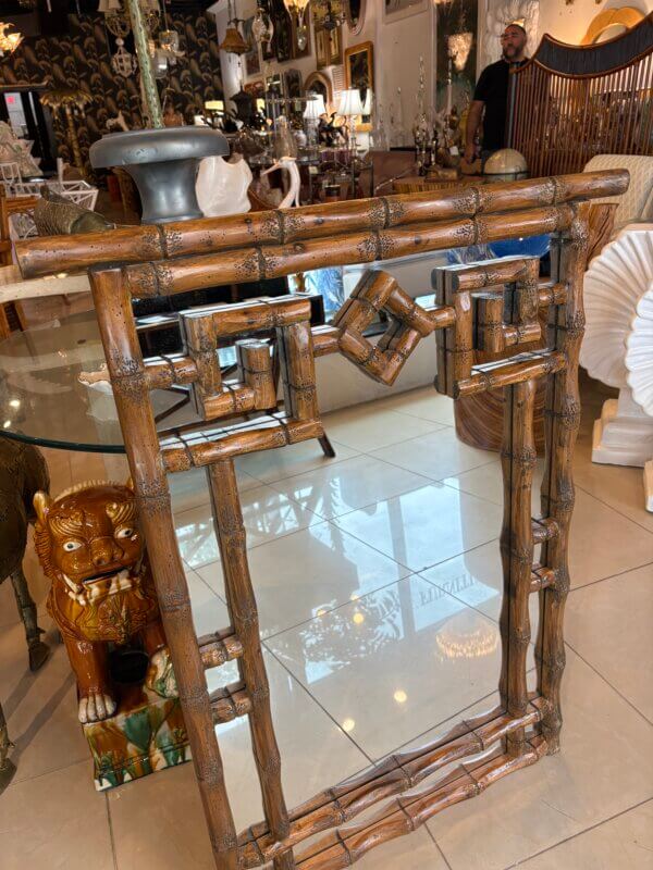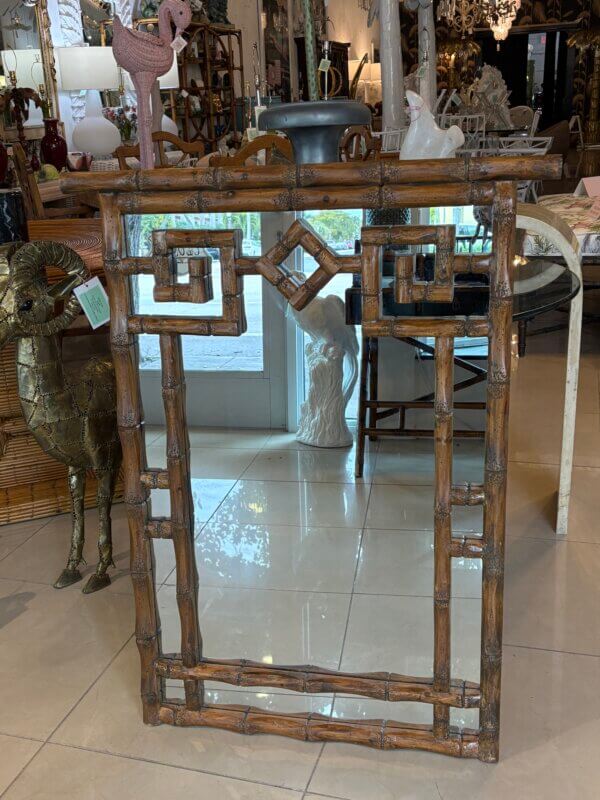 Vintage Palm Beach Coastal Faux Bamboo Pagoda Greek Key Wall Mirror
