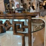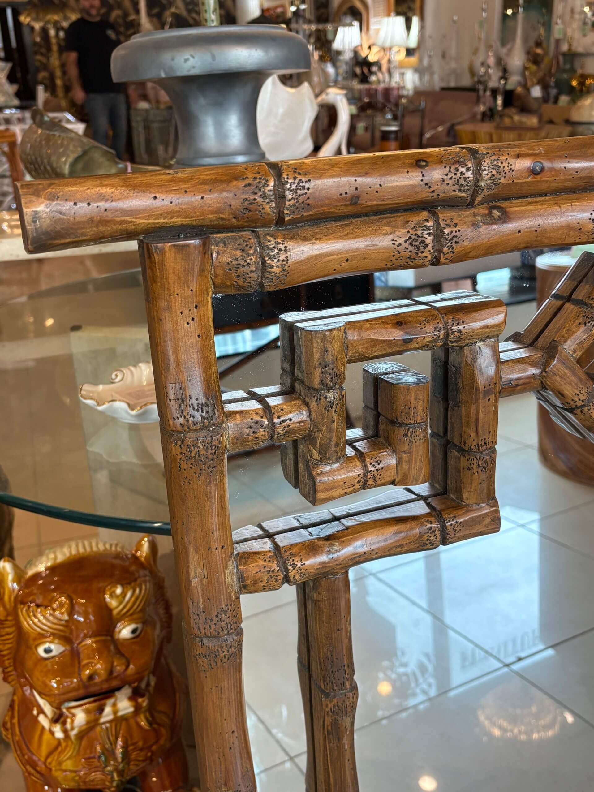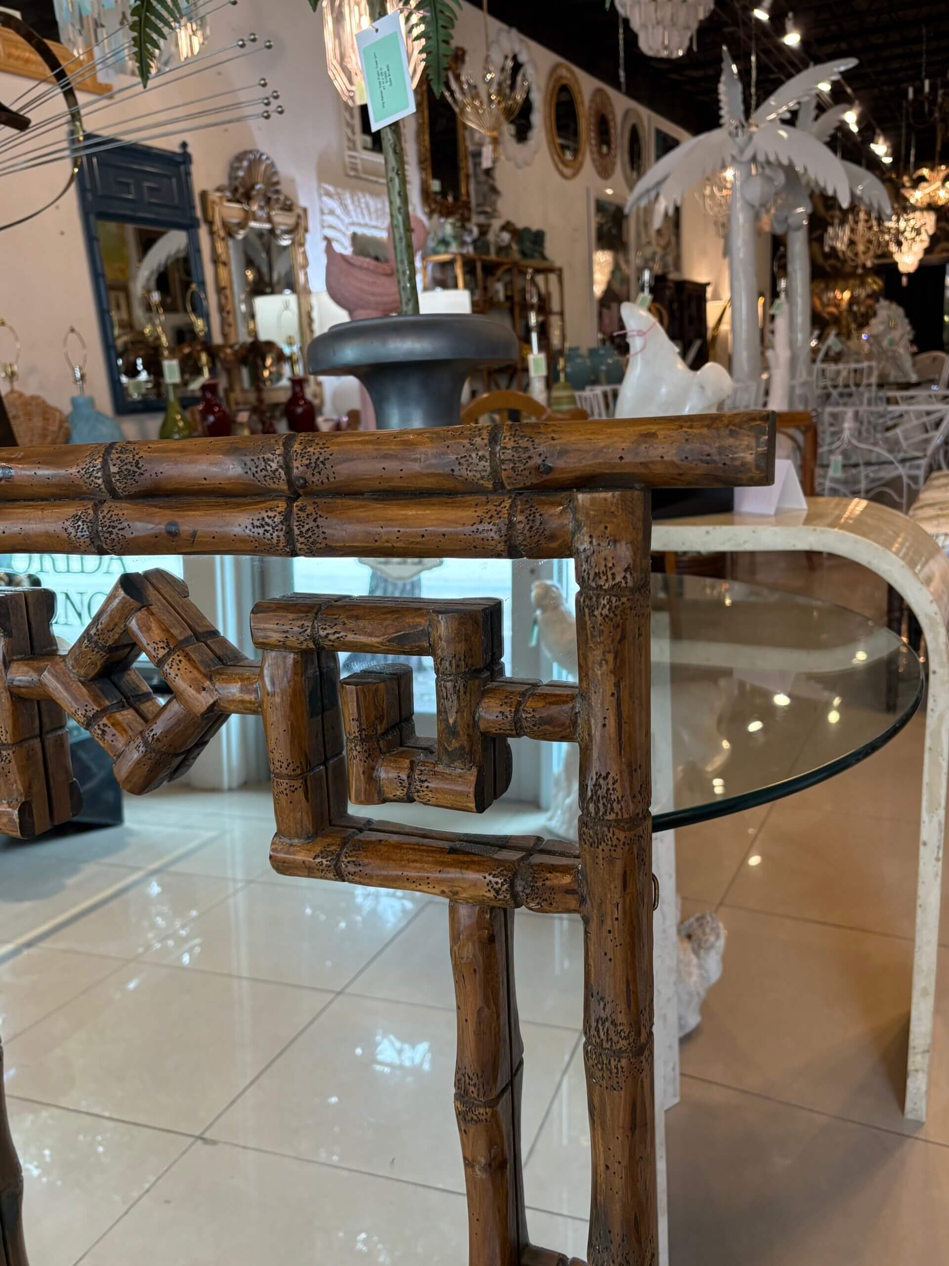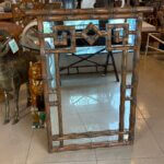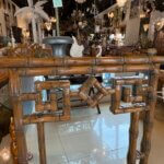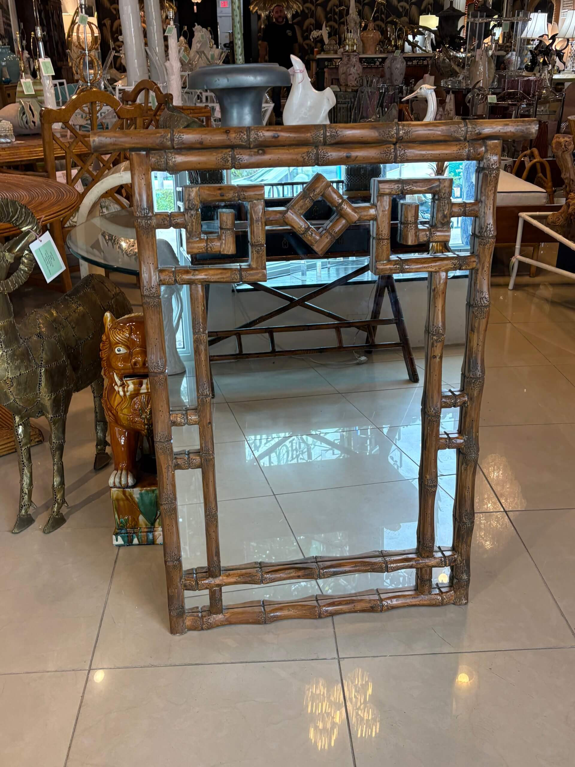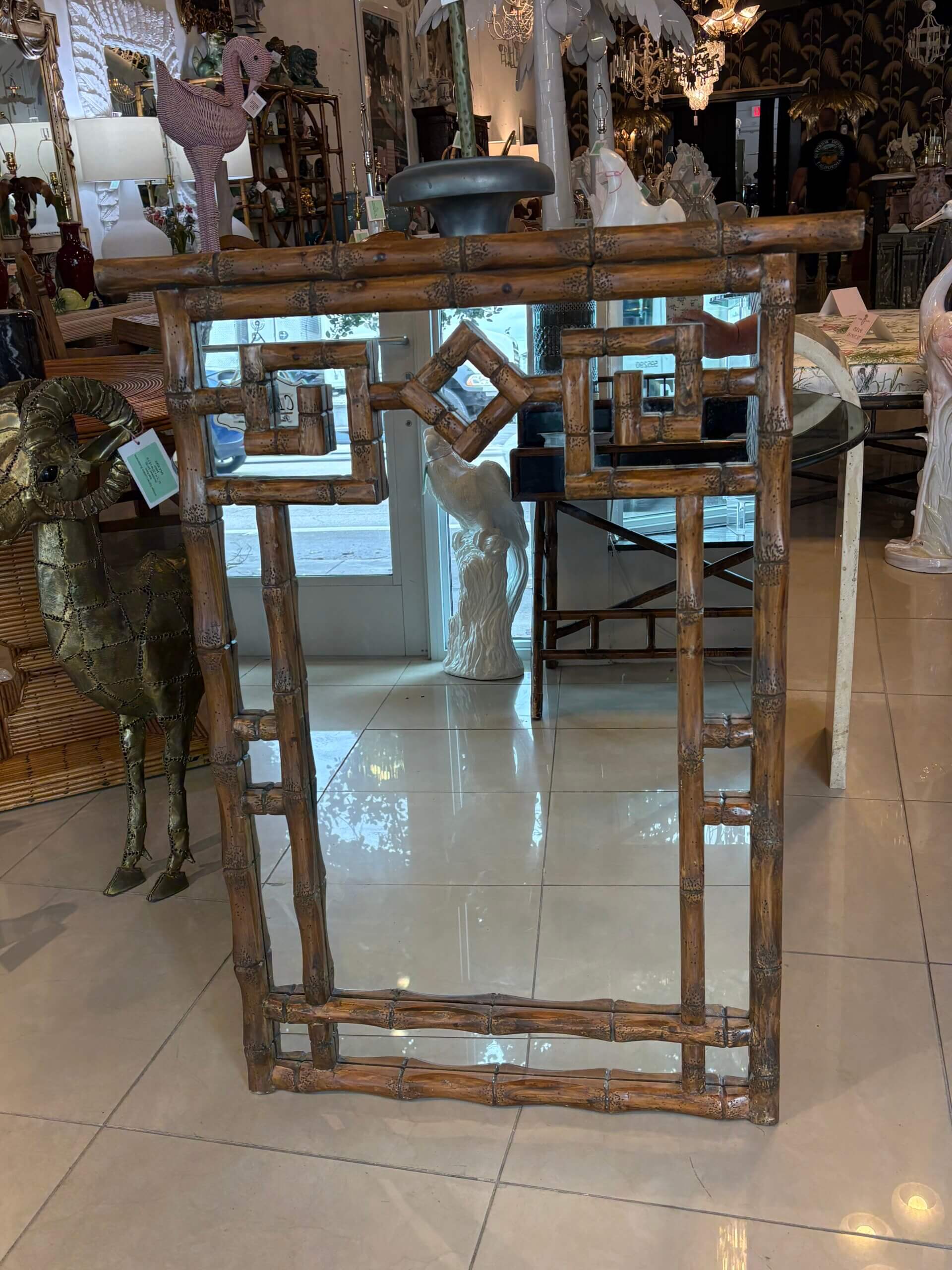 Vintage Palm Beach Coastal Faux Bamboo Pagoda Greek Key Wall Mirror