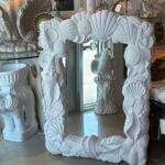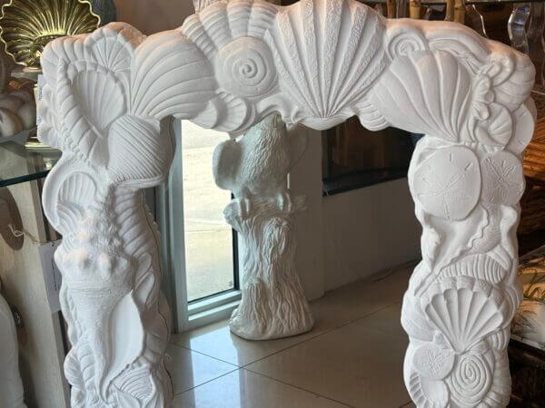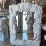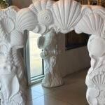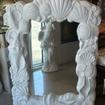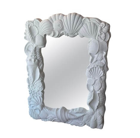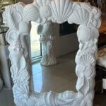 Vintage Palm Beach Plaster Seashell Shell Wall Mirror Newly Lacquered Flat White