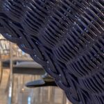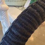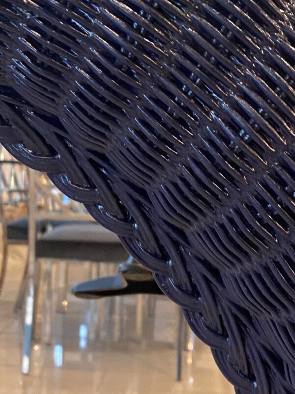 Vintage Braided Wicker Navy Blue Lacquered Round Wall Mirror