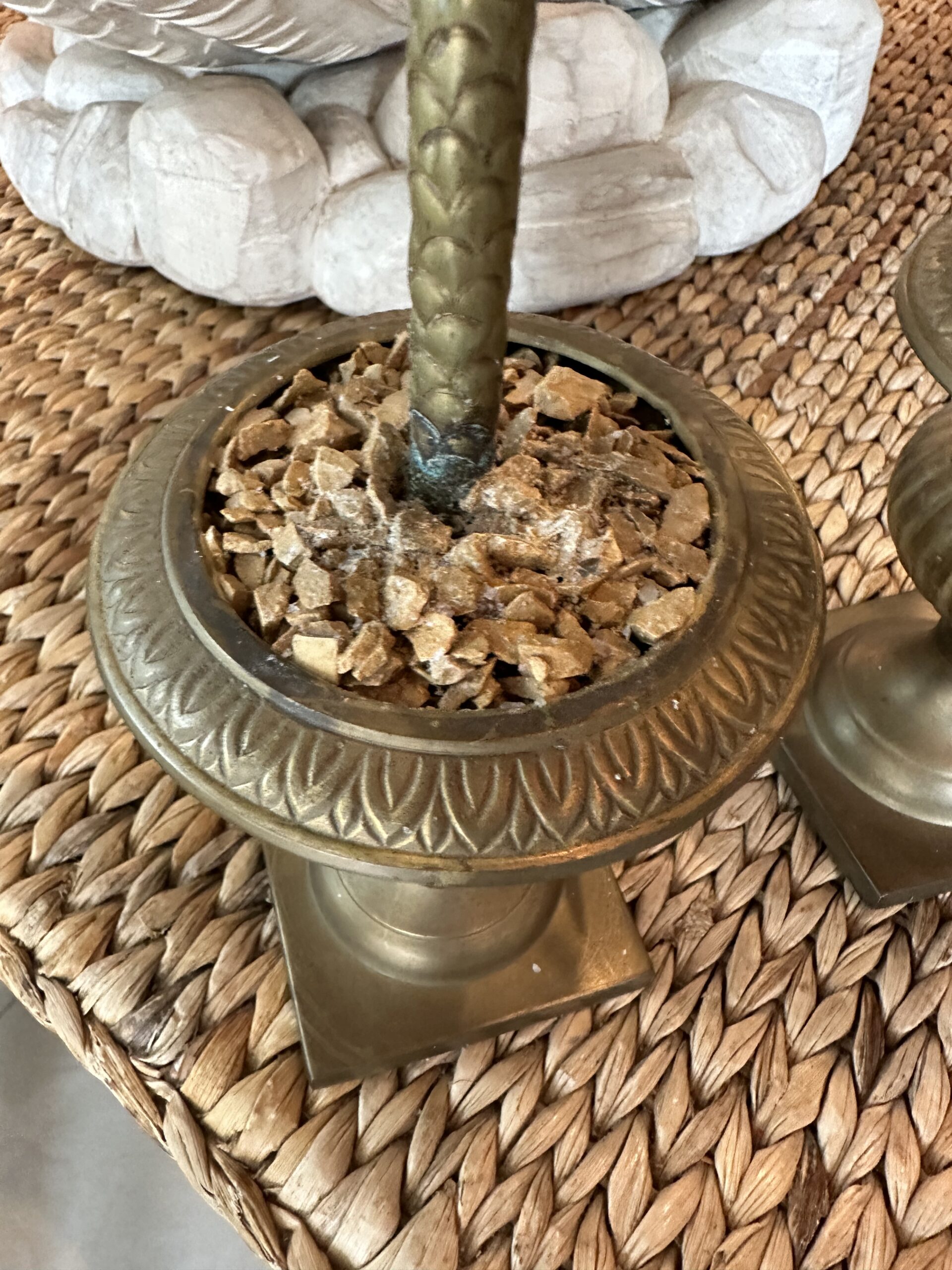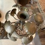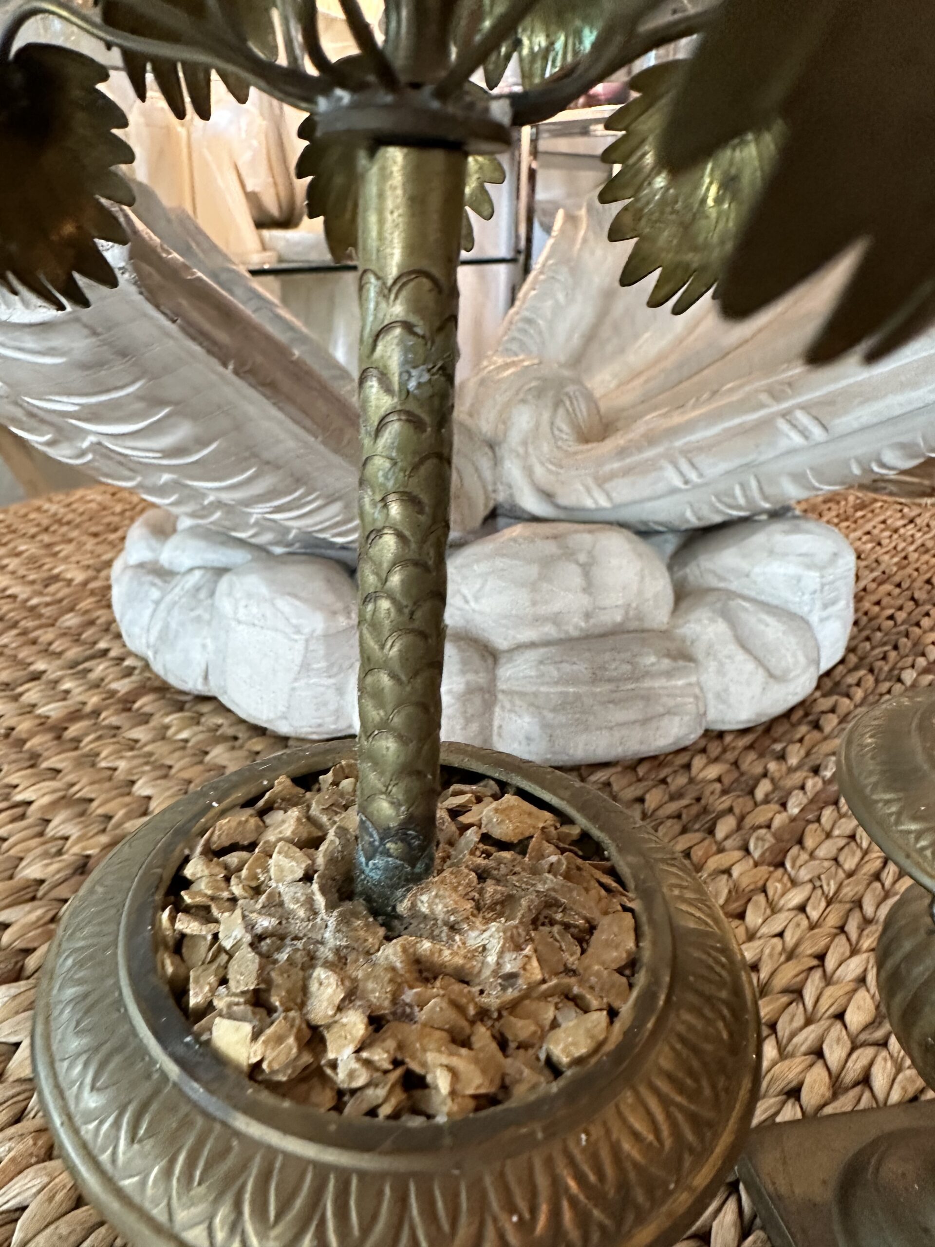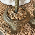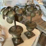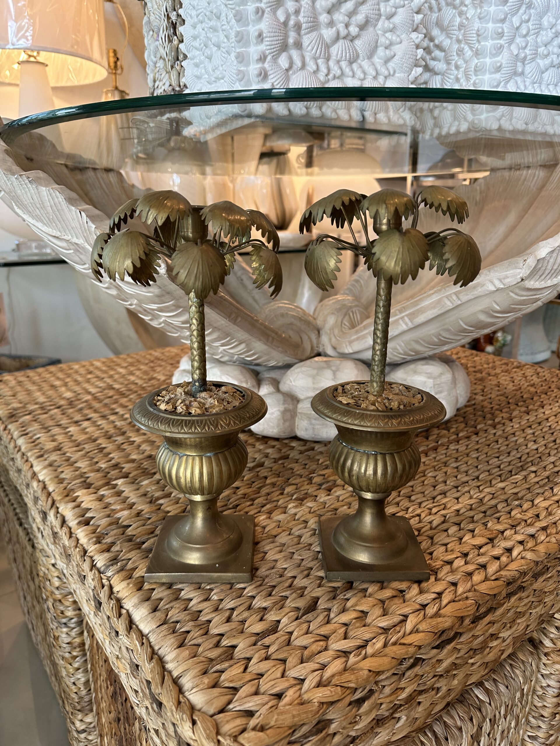 Vintage Tropical Pair of Brass Urn Palm Tree Leaf Leaves Candle Stick Holders