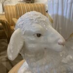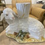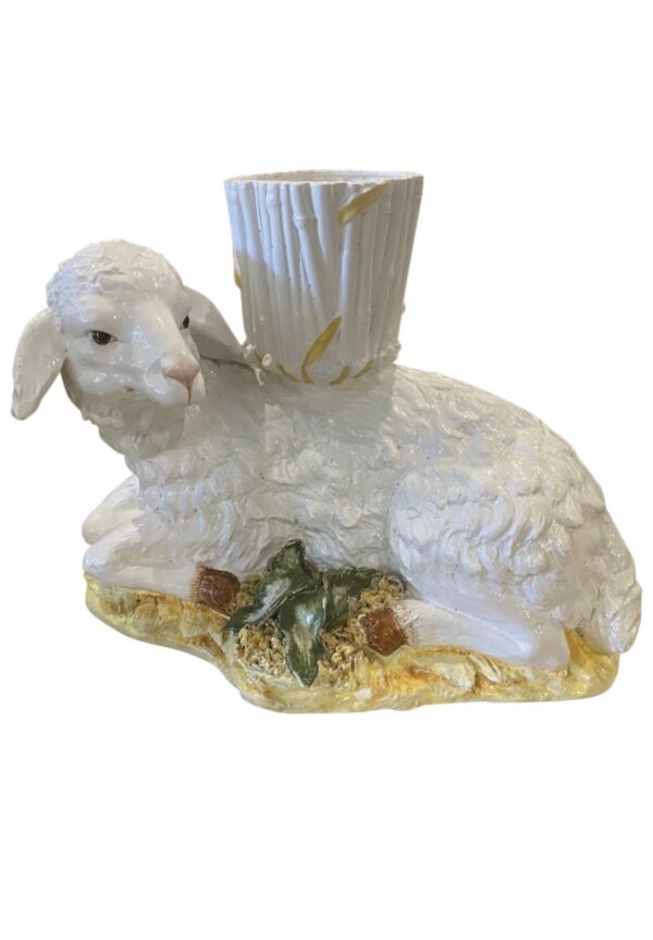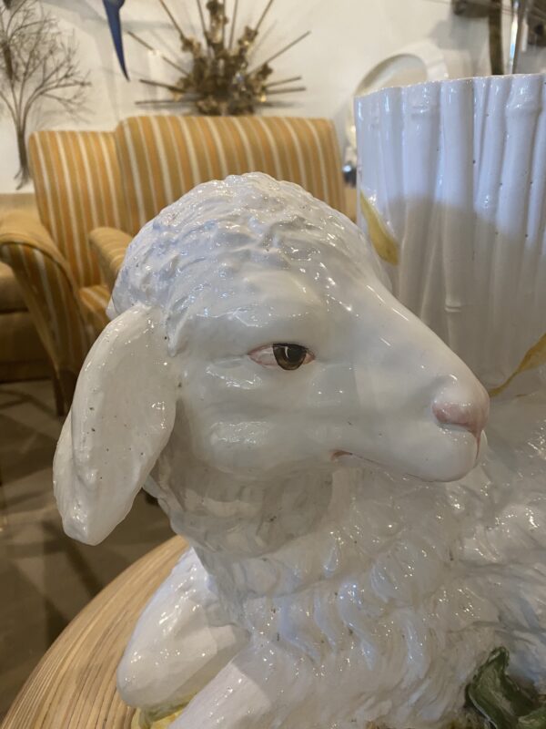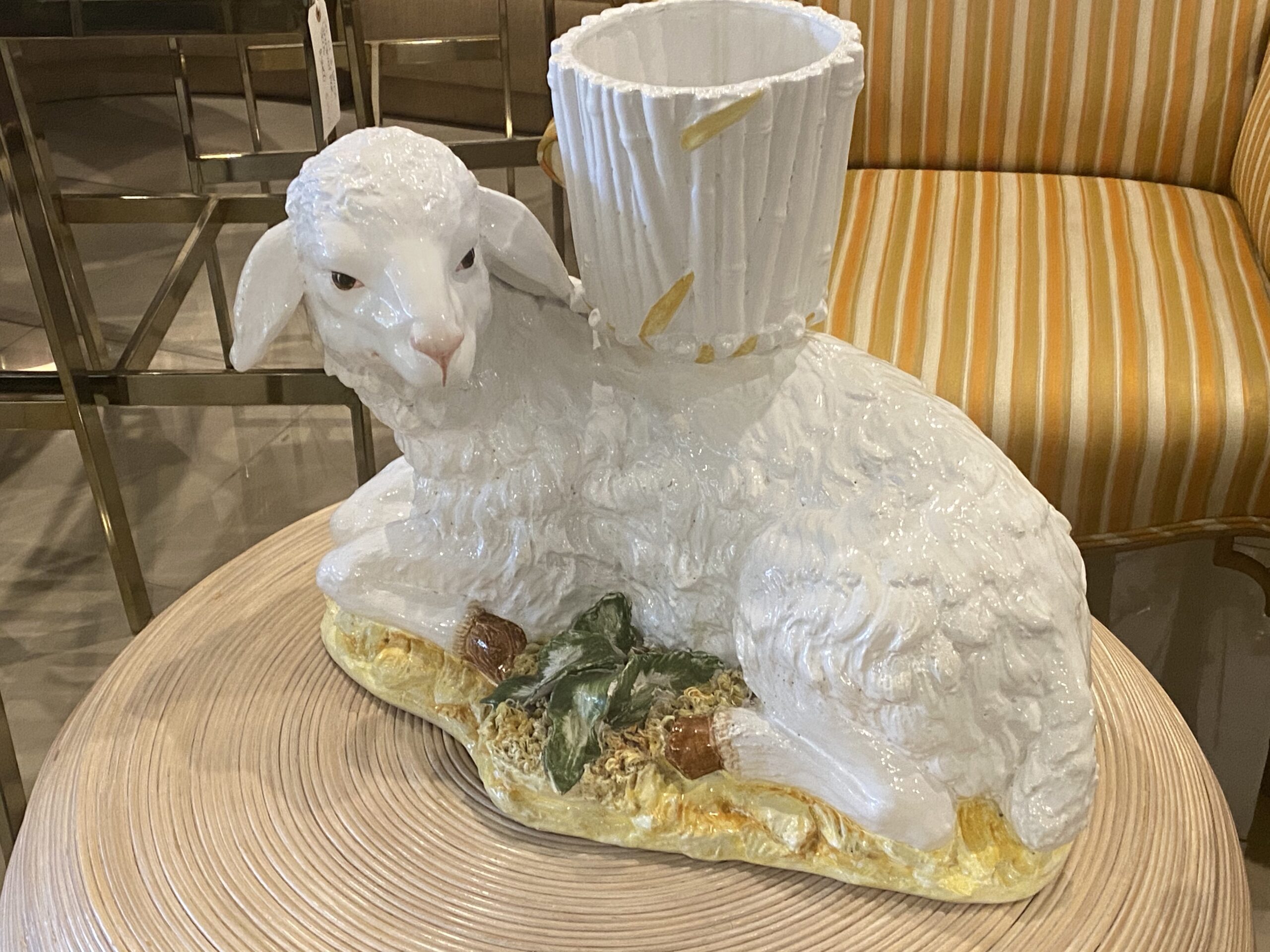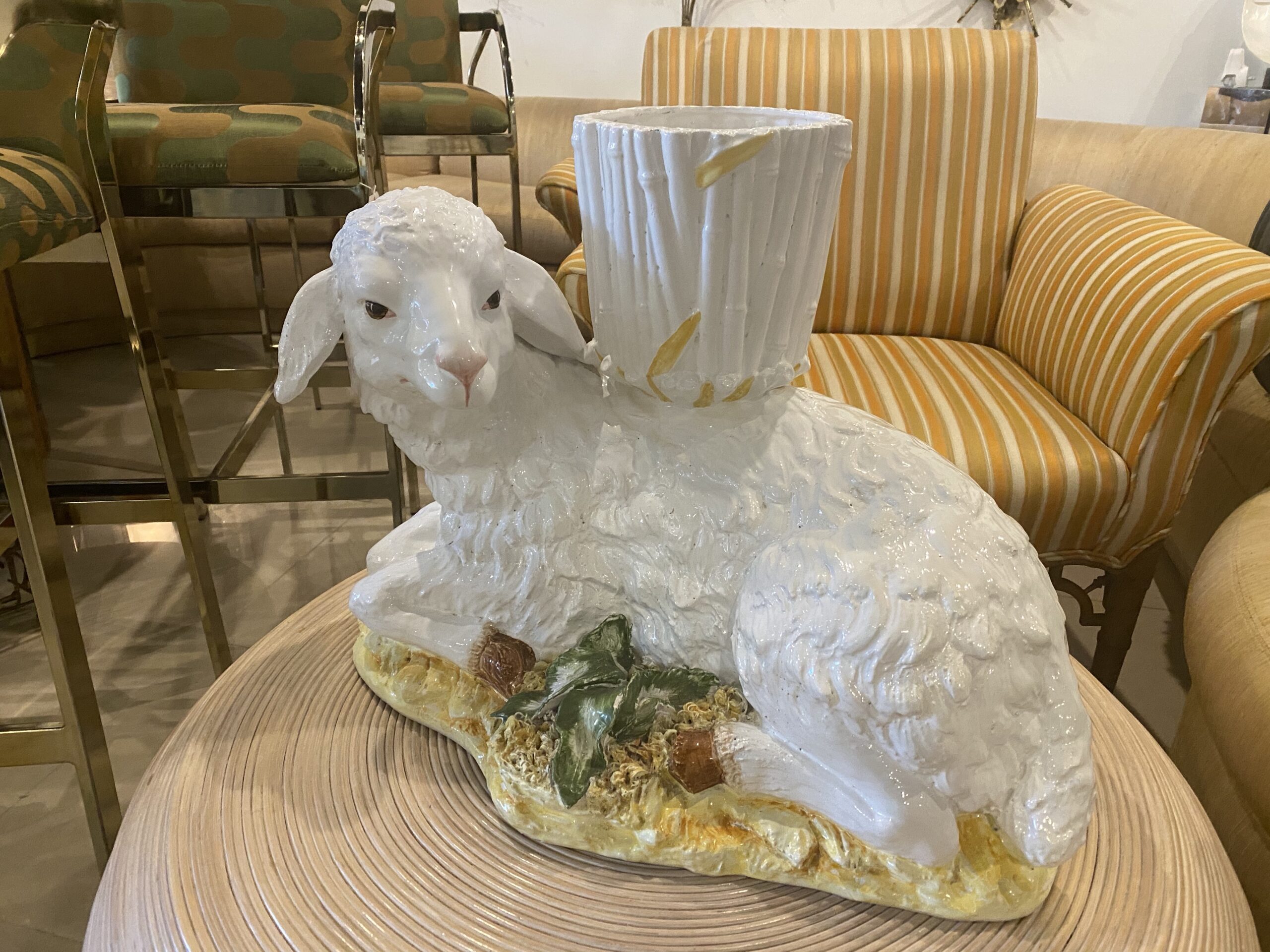 Large vintage lamb sheep ceramic faux bamboo planter pot. Stamped Made in Italy. No chips or breaks.