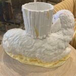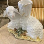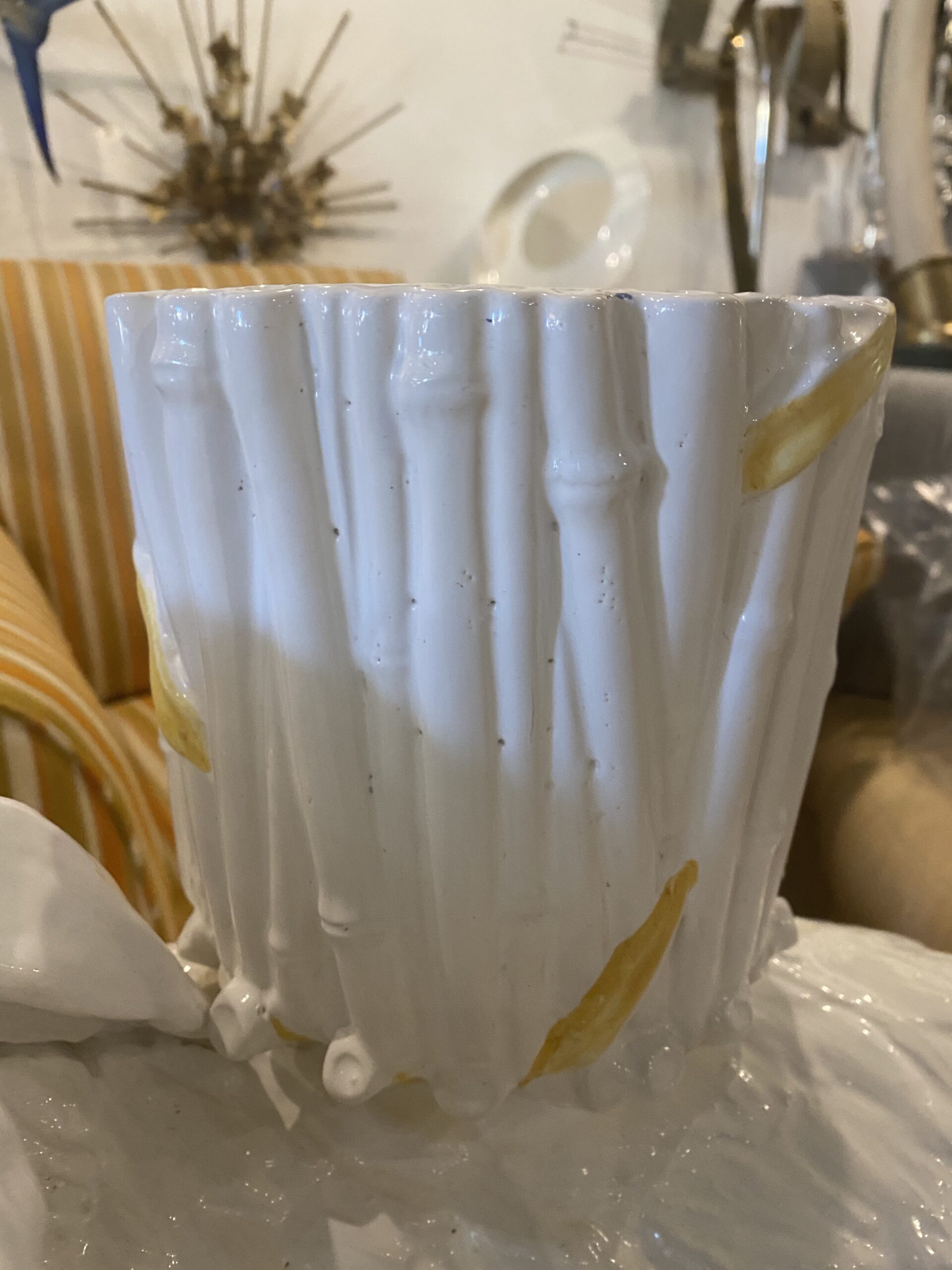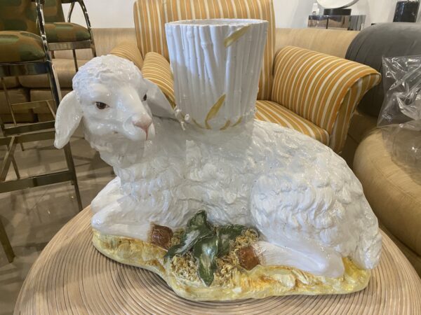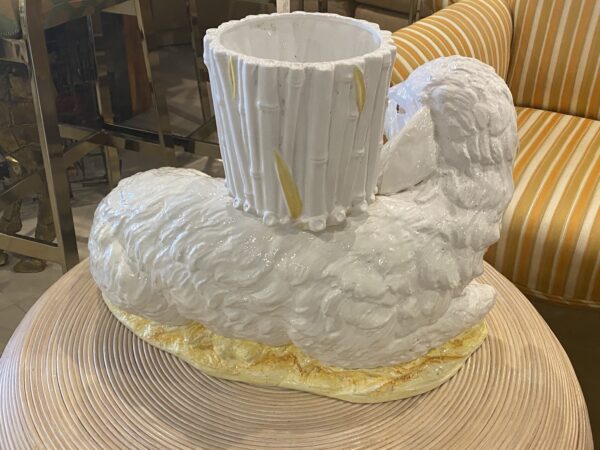 Large Vintage Lamb Sheep Italian Planter Faux Bamboo Pot Ceramic