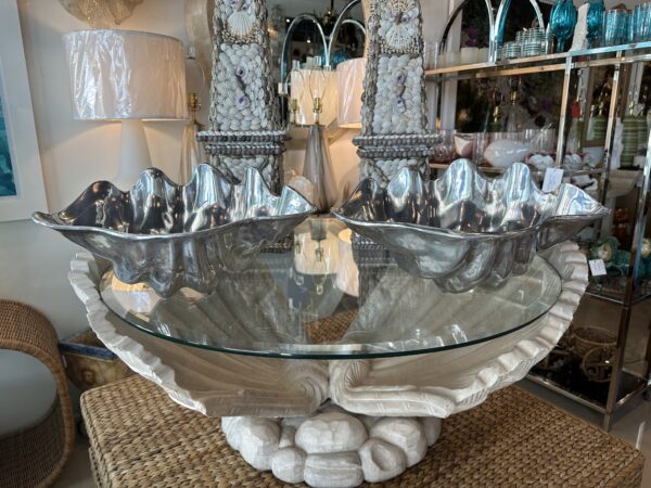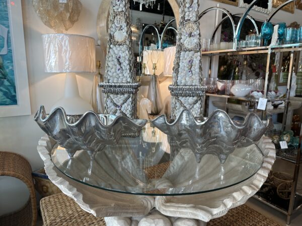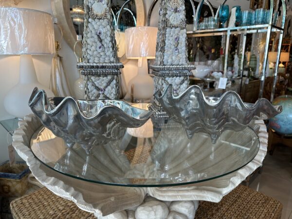 Tags: Arthur court, cache, clam shell, clamshell, ice bucket, Metal, pair, Planter, pot, scalloped, seashell, silver