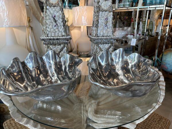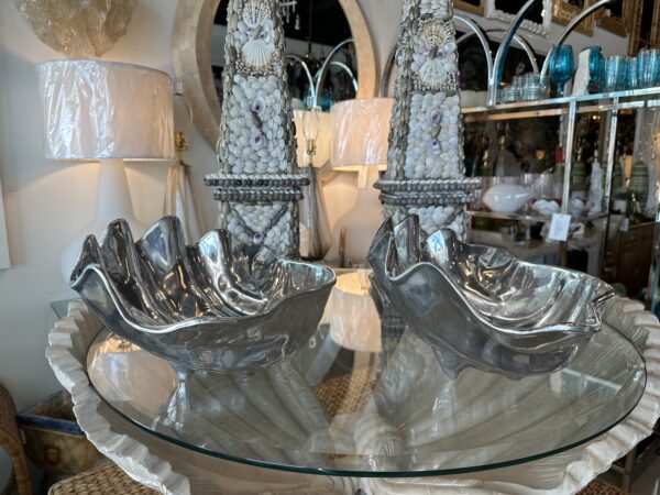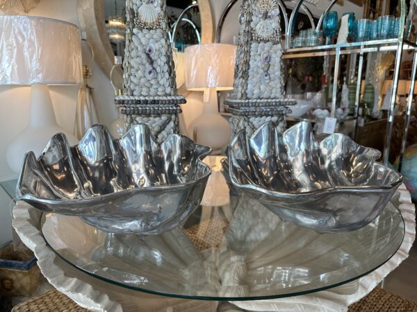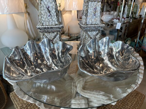 Pair Silver Metal Scalloped Clam Shell Vessel Bowl Planter Arthur Court Style