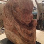 Stone Rock Carved Monkey Mother and Baby Gorilla Statue Signed LEW Siegel