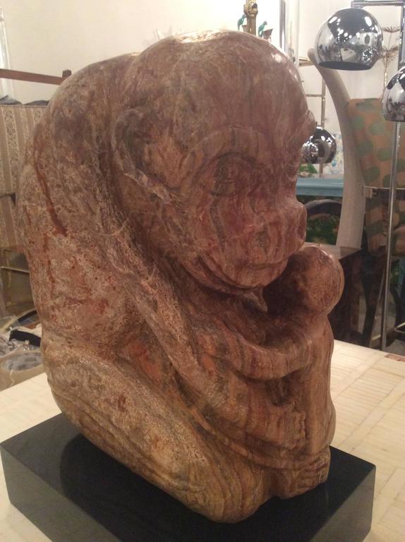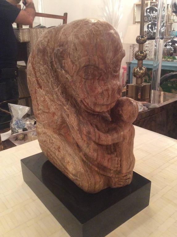 Beautiful vintage signed LEW Siegel carved stone rock marble mama gorilla monkey and baby. This is extremely heavy!