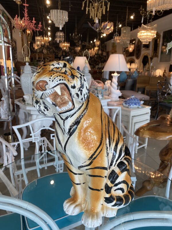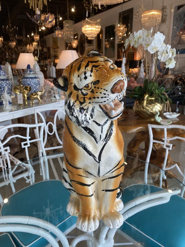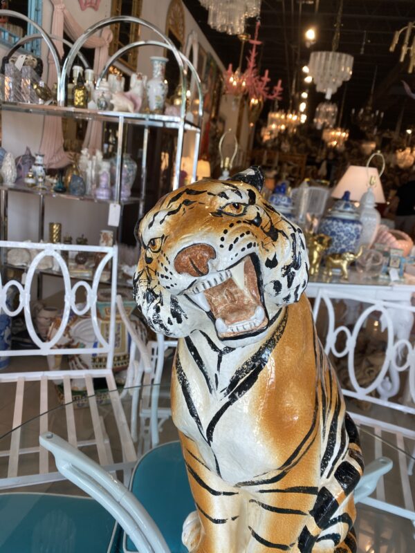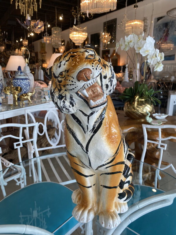 Lovely large vintage Italian tiger statue. Hand Painted ceramic. No chips or breaks.