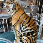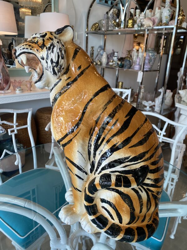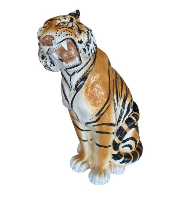 Vintage Large Italian Ceramic Sitting Tiger Statue