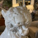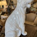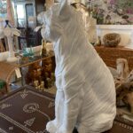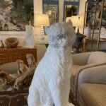 Vintage Modern Plaster White Lacquered Large Sitting Tiger Cat Statue Italian