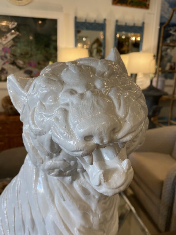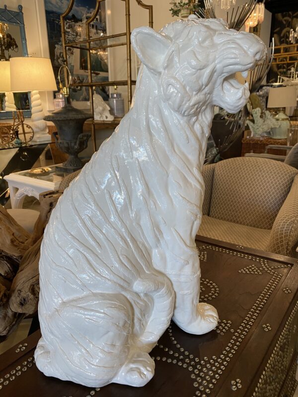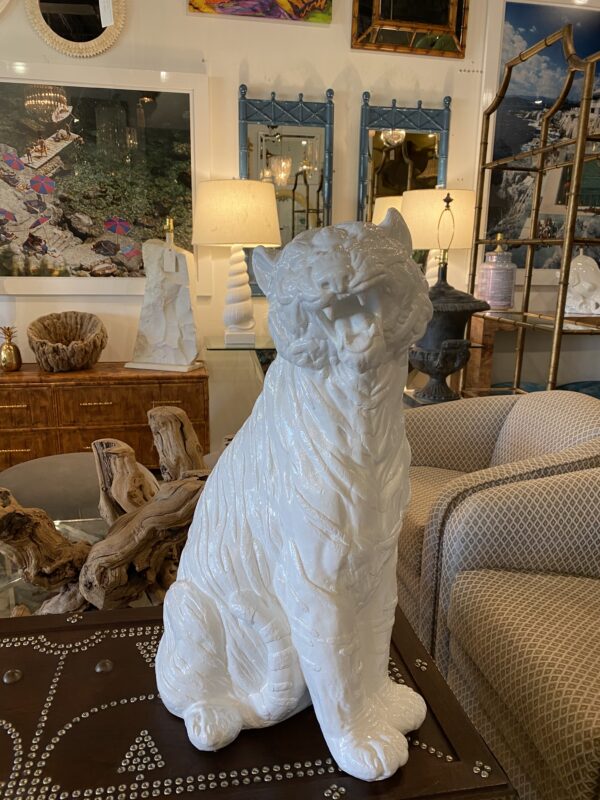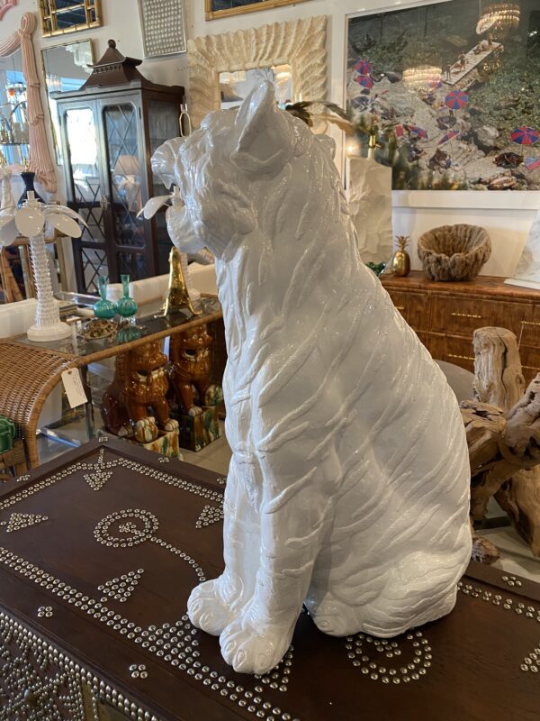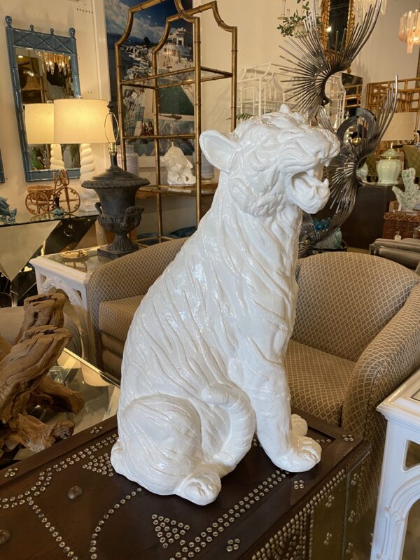 Lovely vintage plaster lacquered white gloss tiger statue. No chips or breaks.