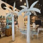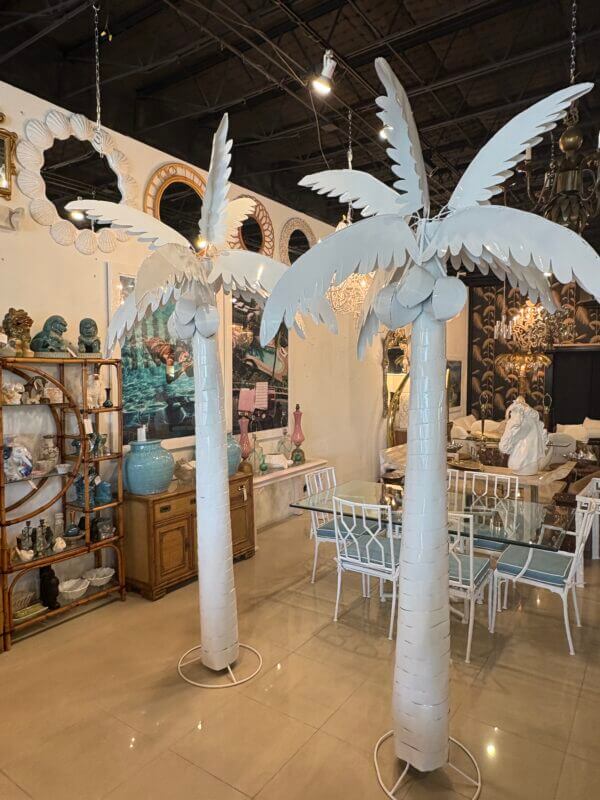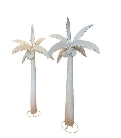 Vintage Large Pair Metal White Palm Trees Palm Beach Coastal Patio Indoor