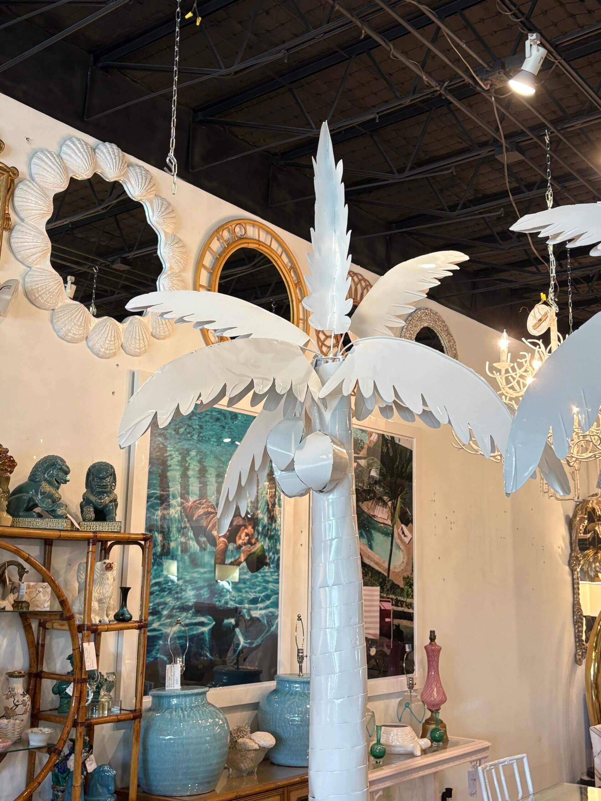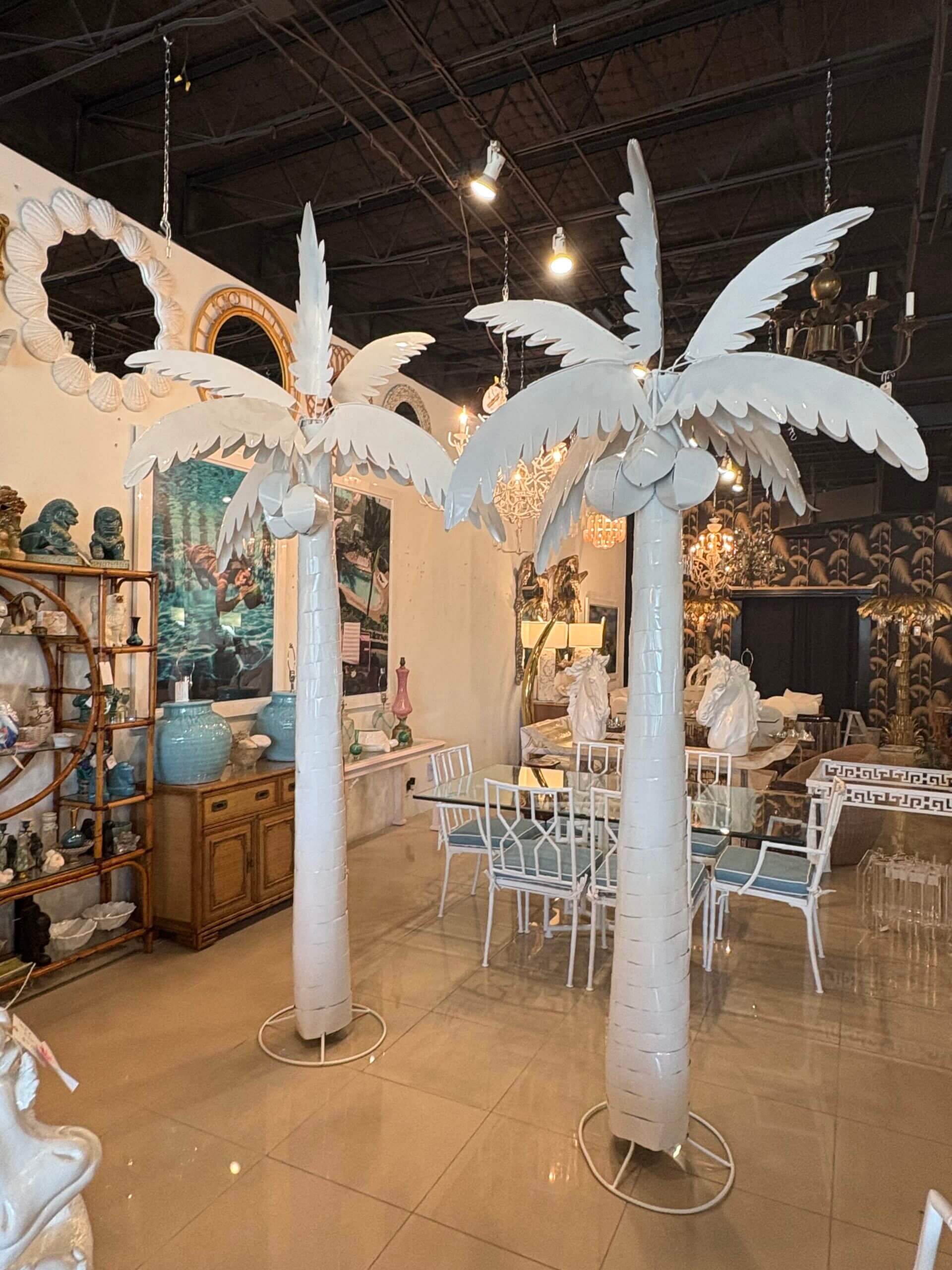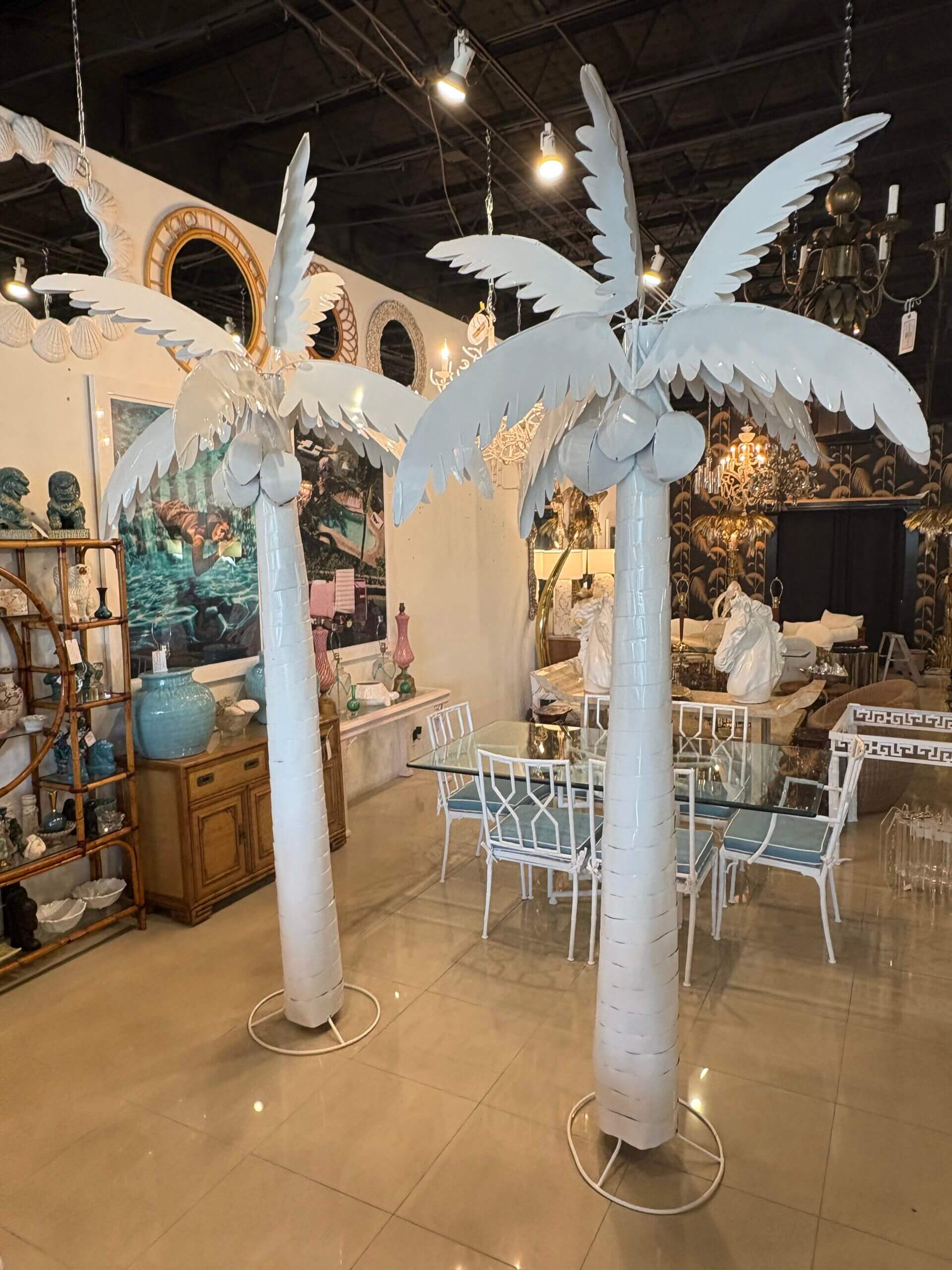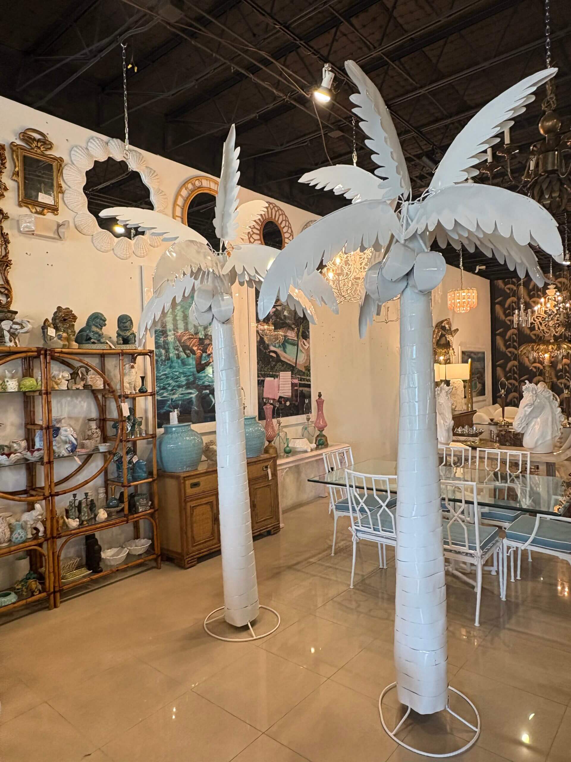 Vintage Large Pair Metal White Palm Trees Palm Beach Coastal Patio Indoor