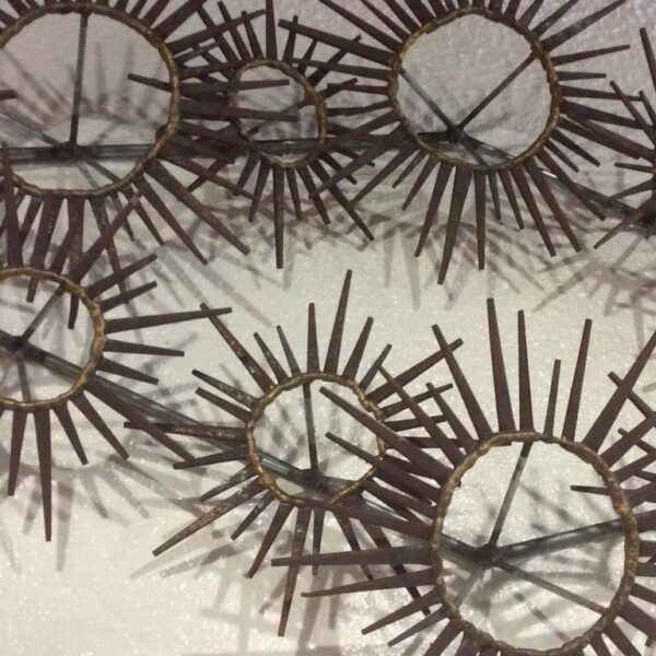 Amazing vintage Brutalist nail sunburst wall art. In the style of Silas Seandel, Curtis Jere.