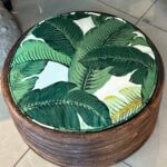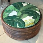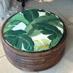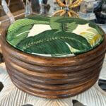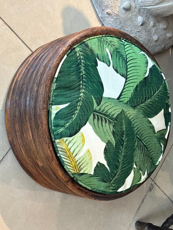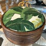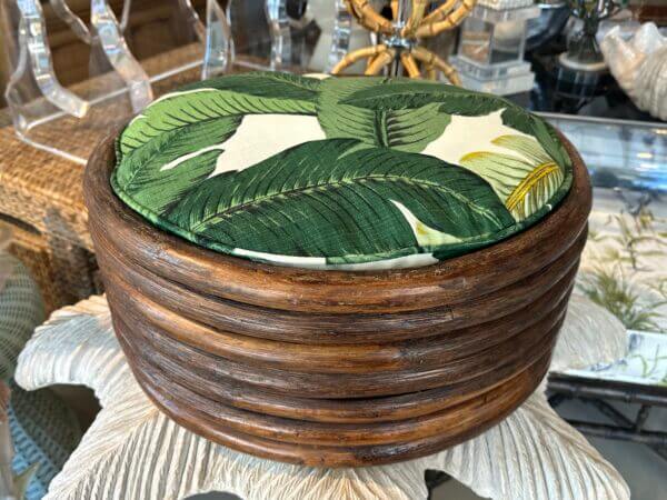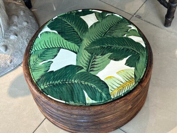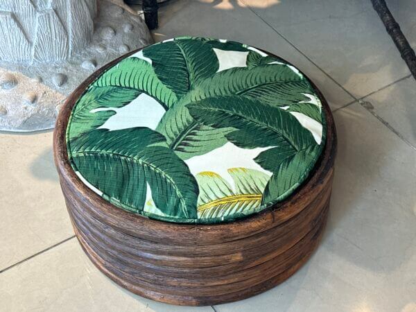 Vintage Round Rattan Tropical Palm Leaf Palm Beach Dog Pet Bed New Upholstery