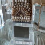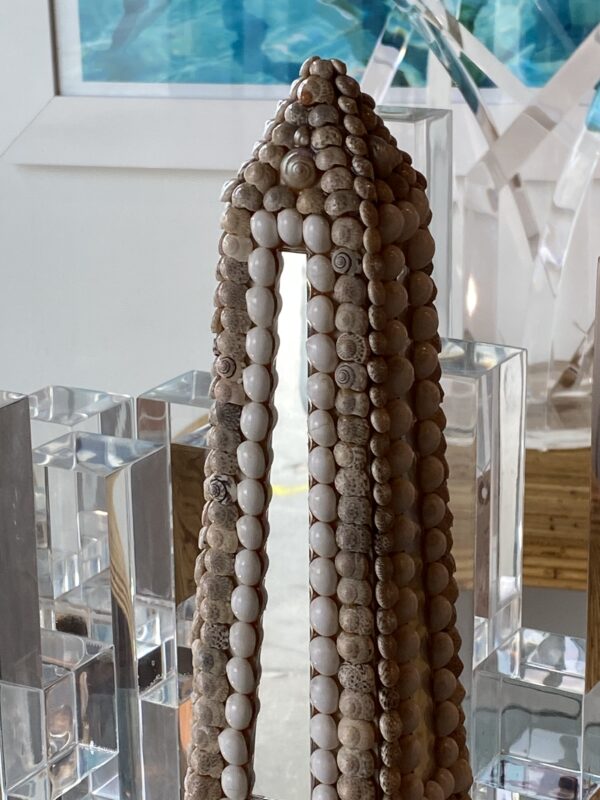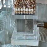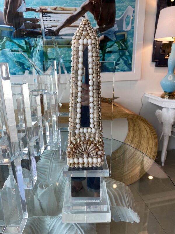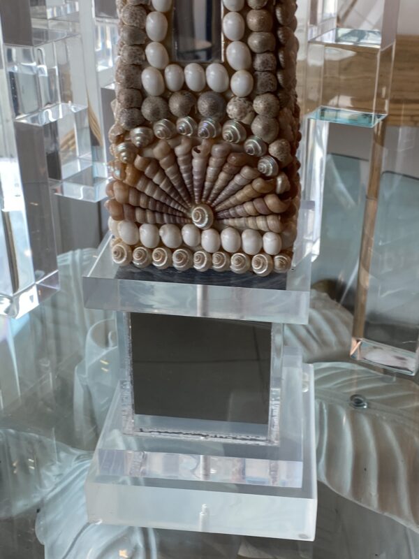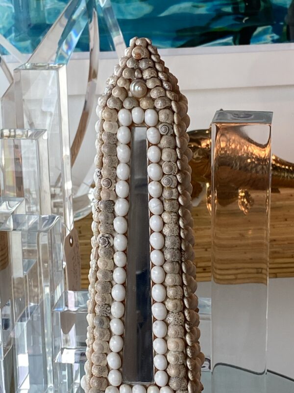 Lovely vintage seashell, lucite and mirror obelisk.