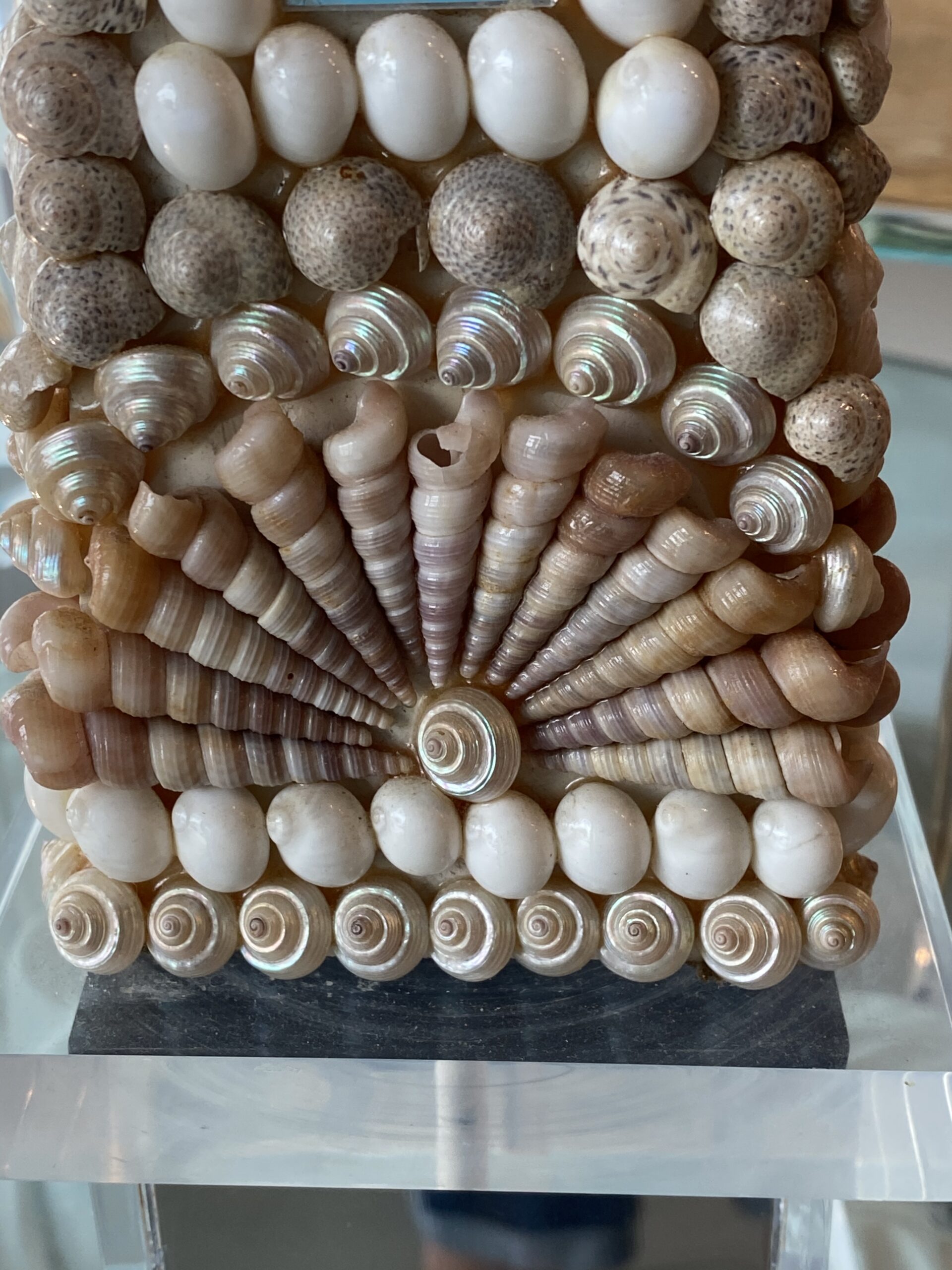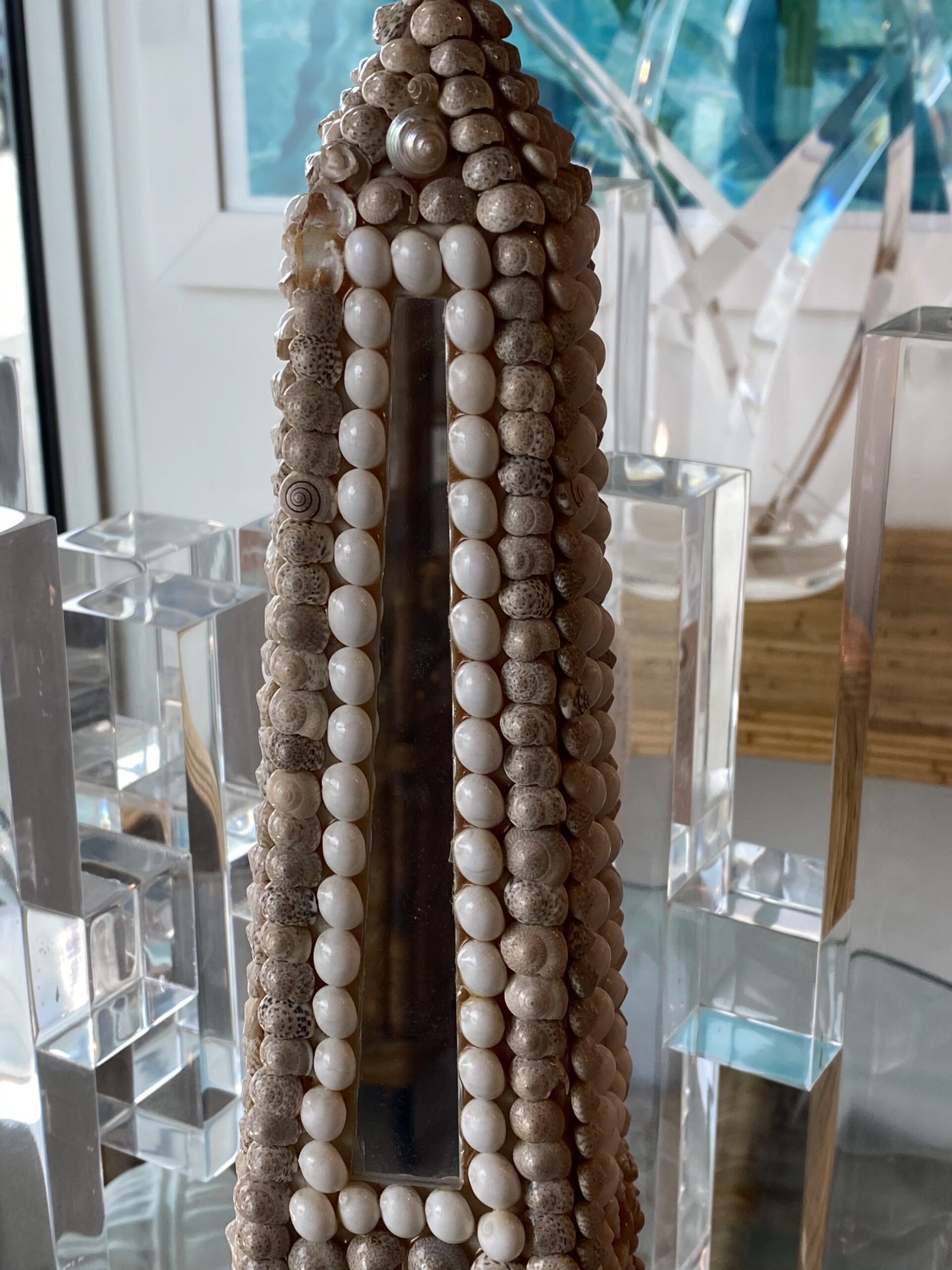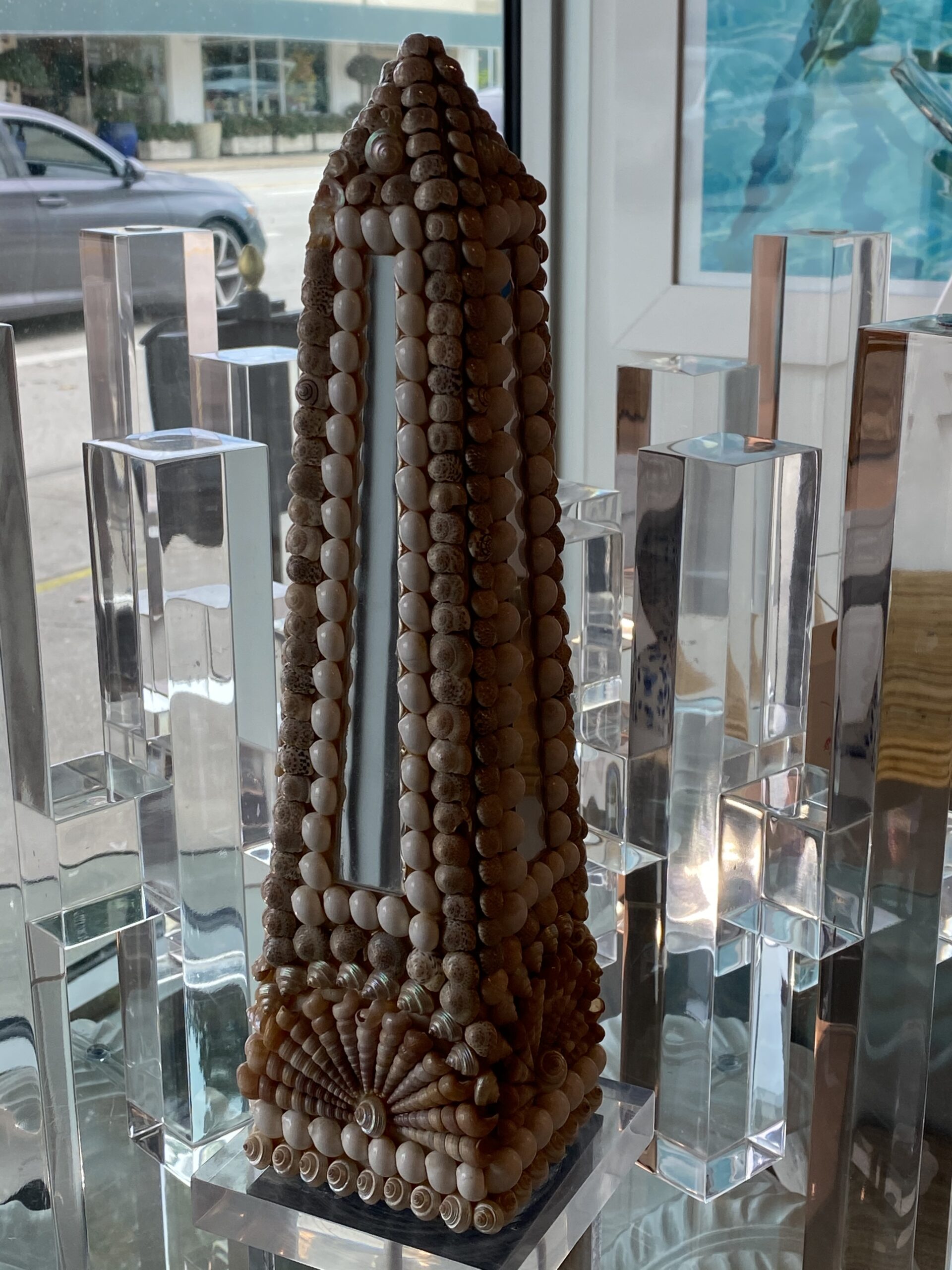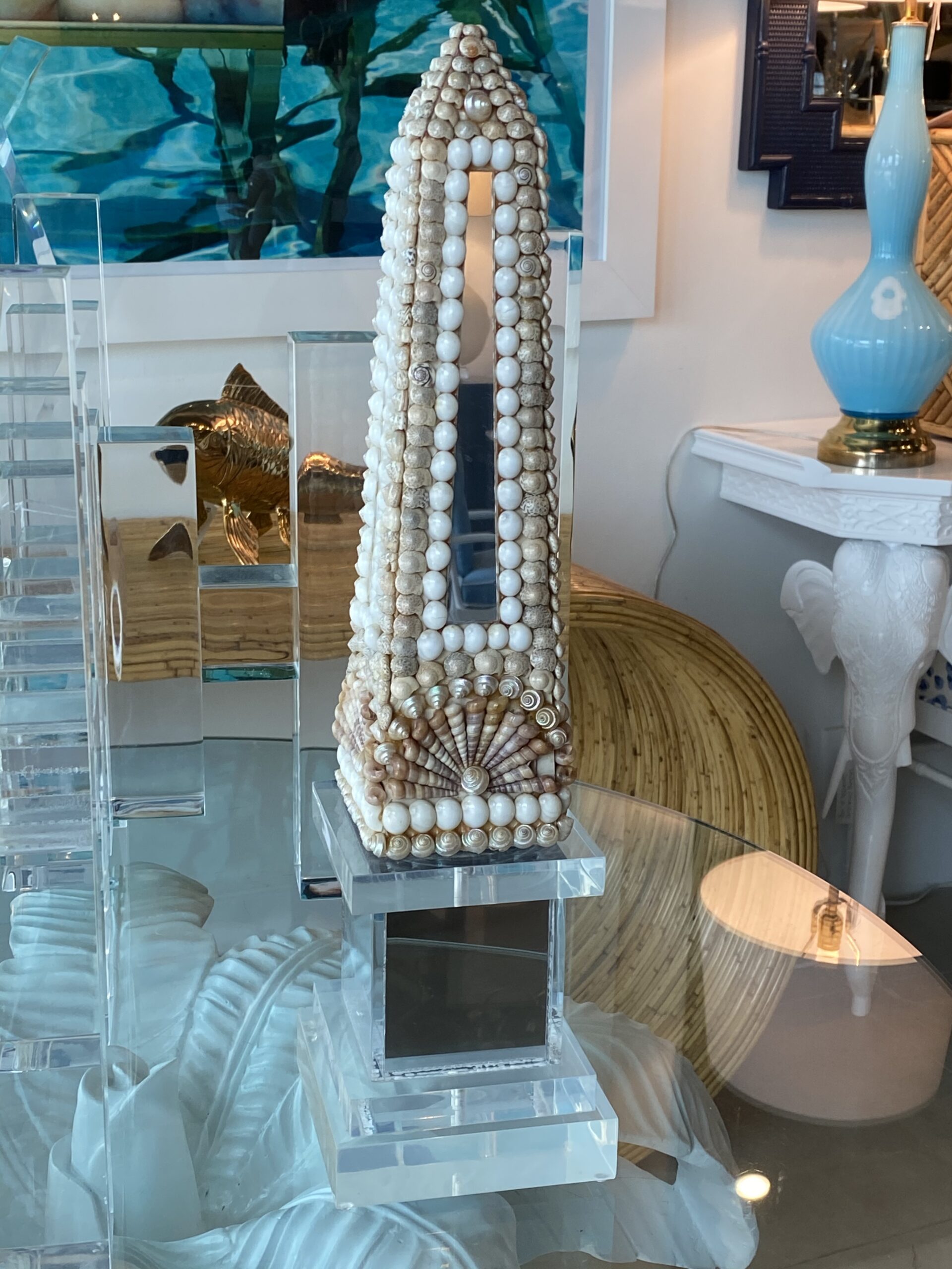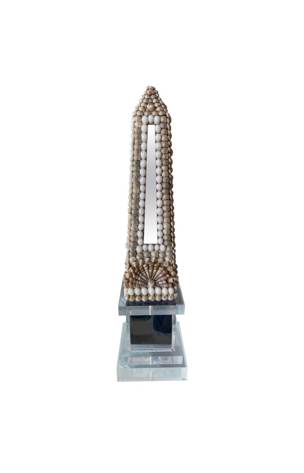 Lovely vintage seashell, lucite and mirror obelisk.