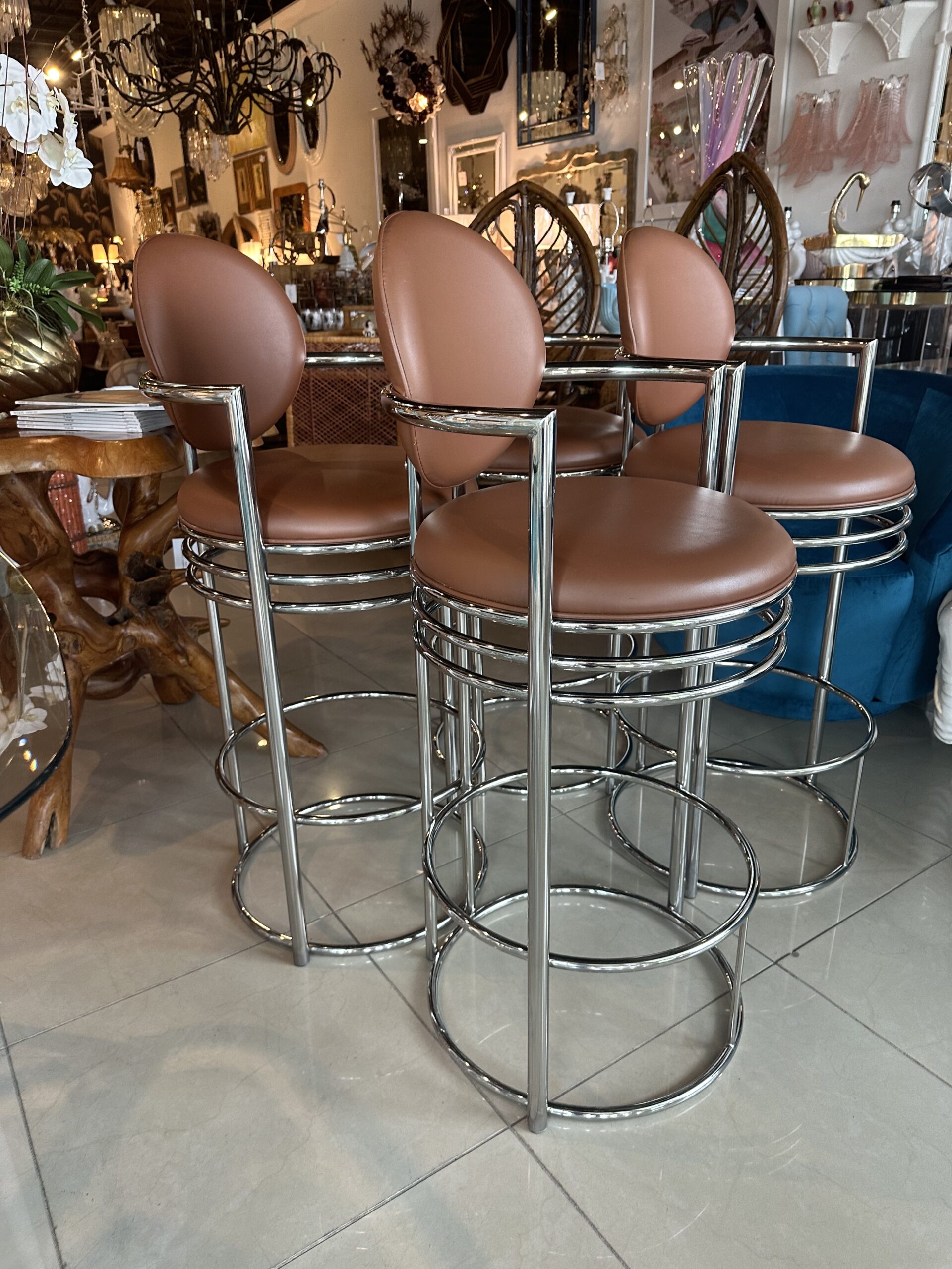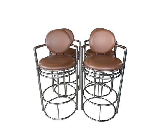 Vintage Set of 4 DIA Design Institute America Chrome Arm Barstools Stools