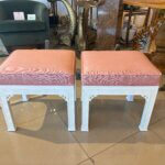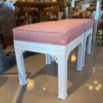 Vtg Kindel Pair of Benches Ottomans Fretwork Upholstered Lacquered Chinoiserie