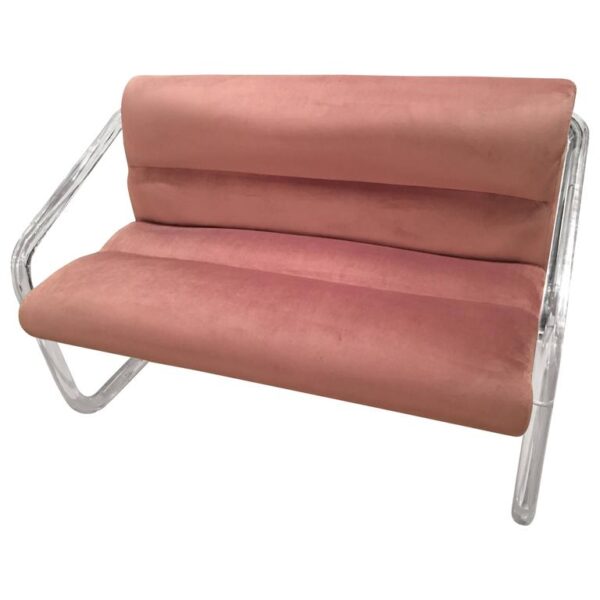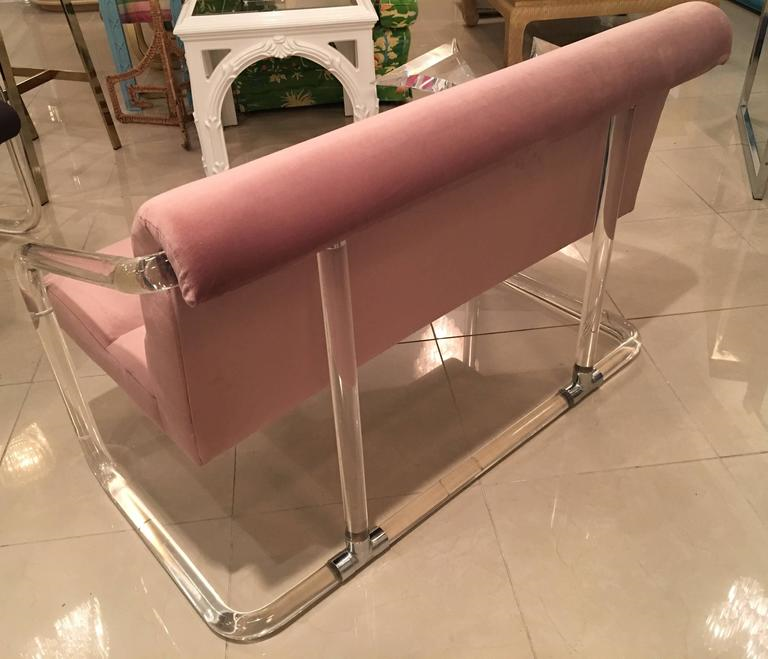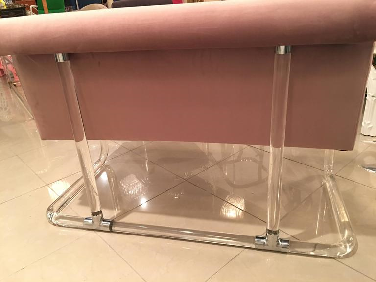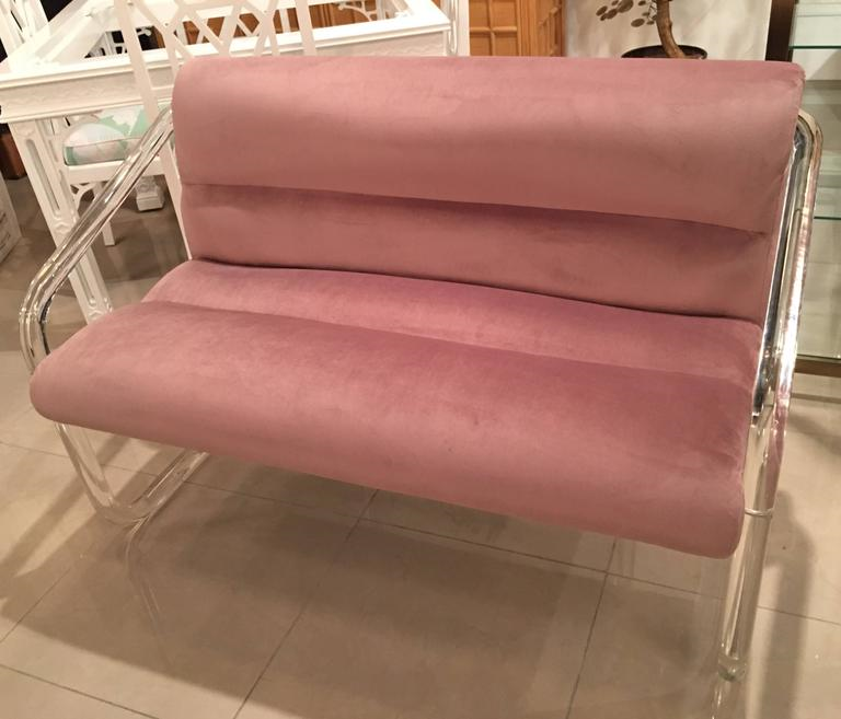 Lion in Frost, Newly Upholstered Lavender Velvet, Lucite and Chrome Settee Bench