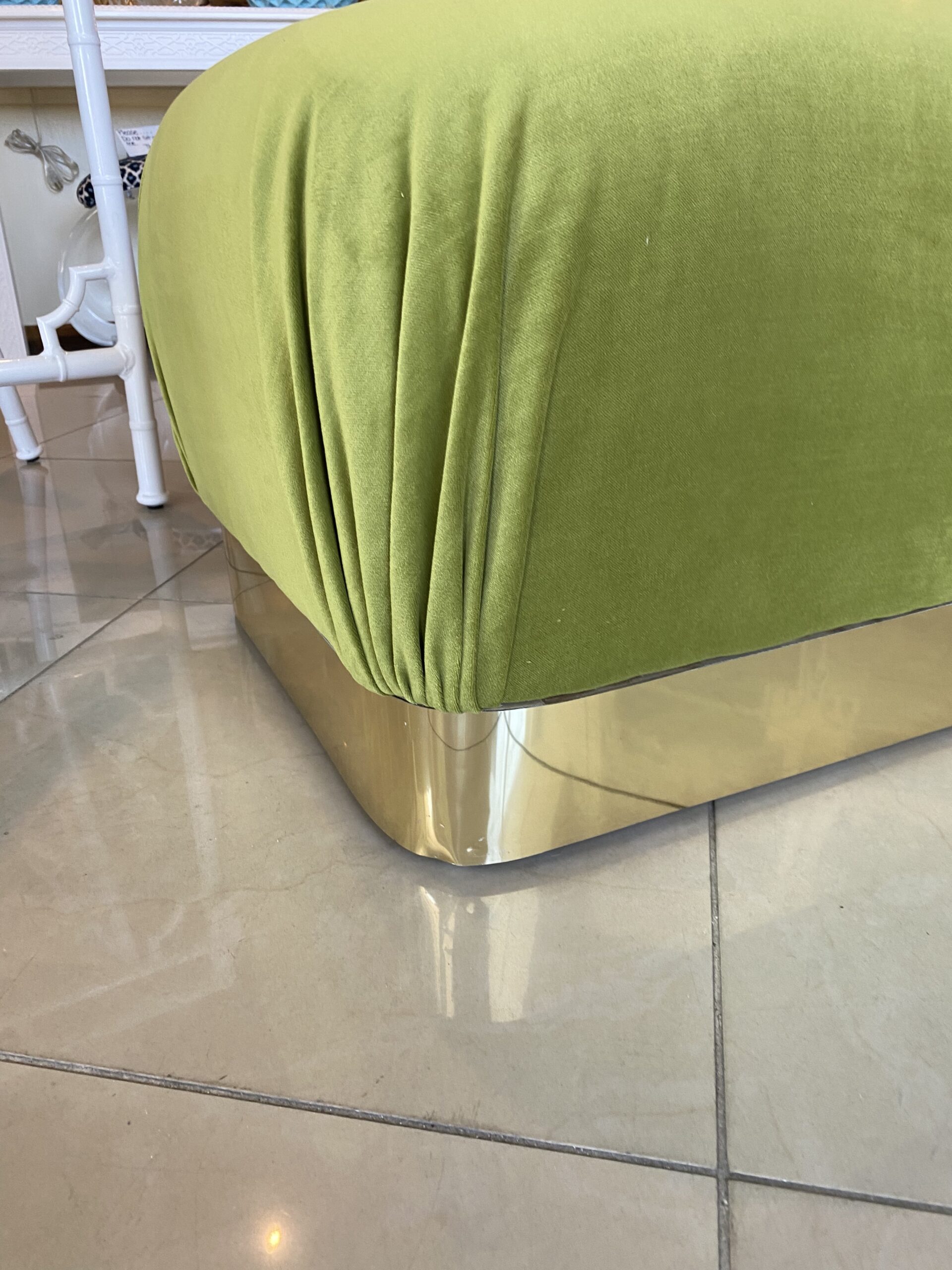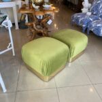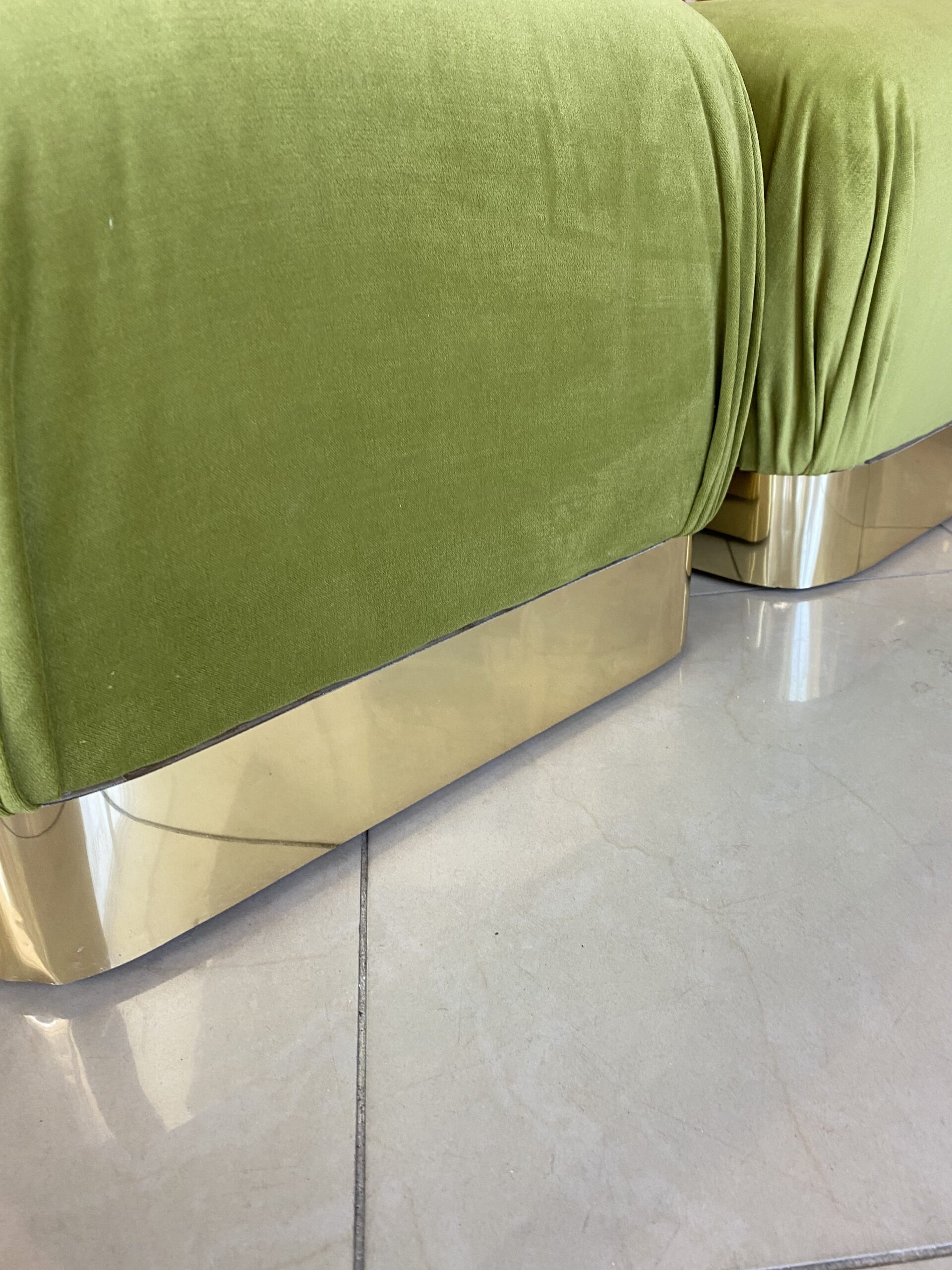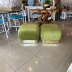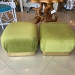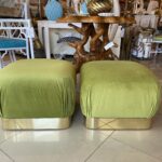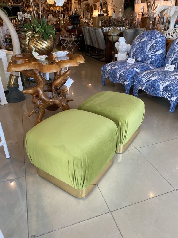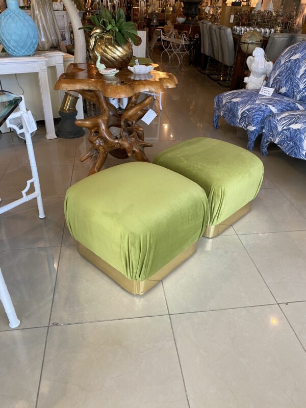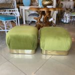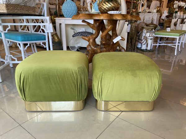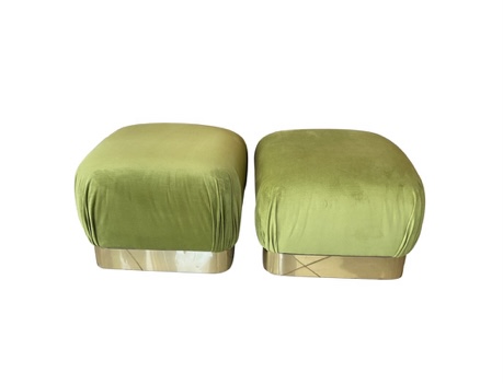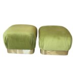 Vintage Pair Upholstered Green Velvet Brass Benches Poufs Karl Springer